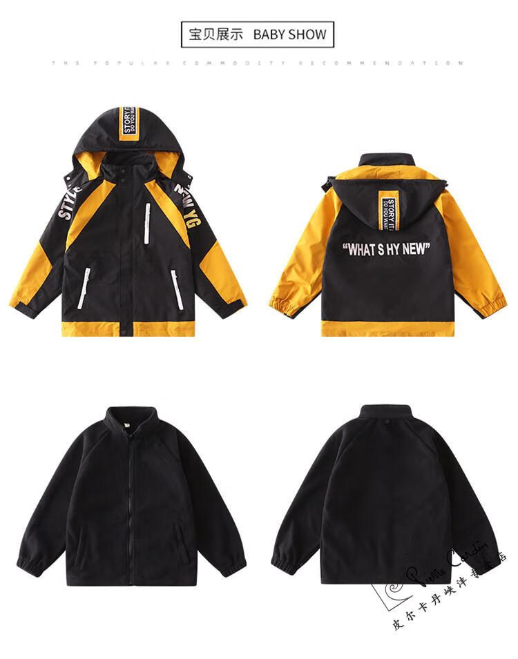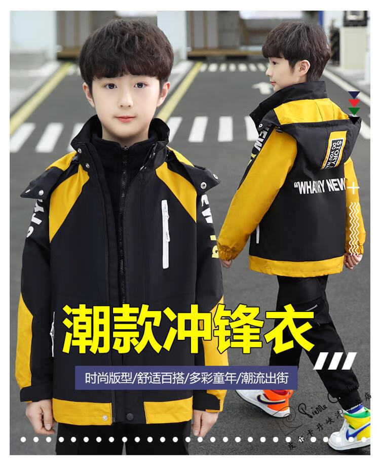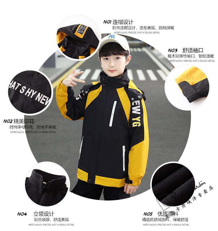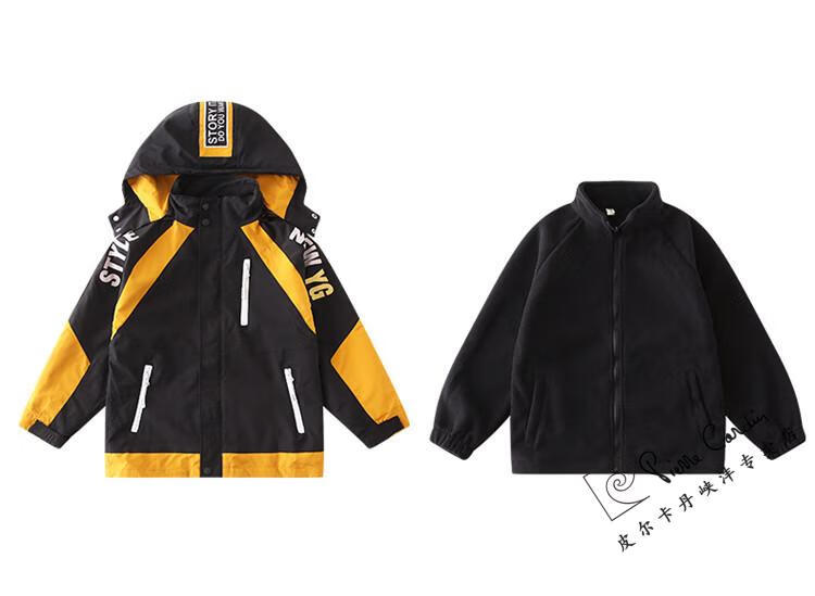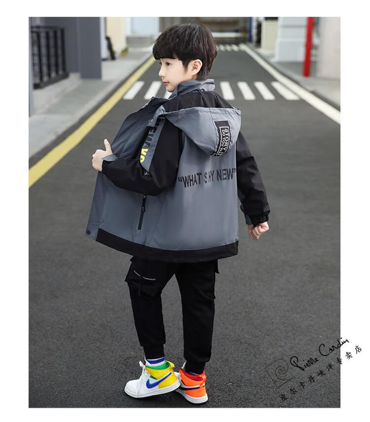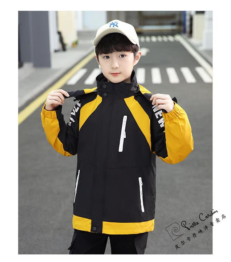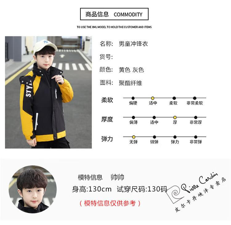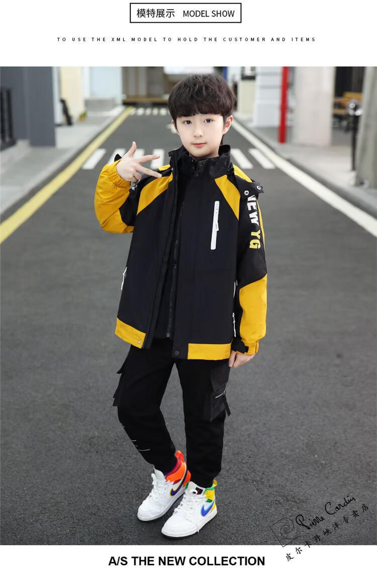 Pierre Cardin Boys Autumn and Winter Three-in-One Jacket for Medium and Large Children Detachable Jacket Thickened and Warm Winter Color Block Top Handsome Gray Cotton Thickened 160cm