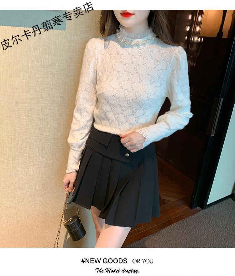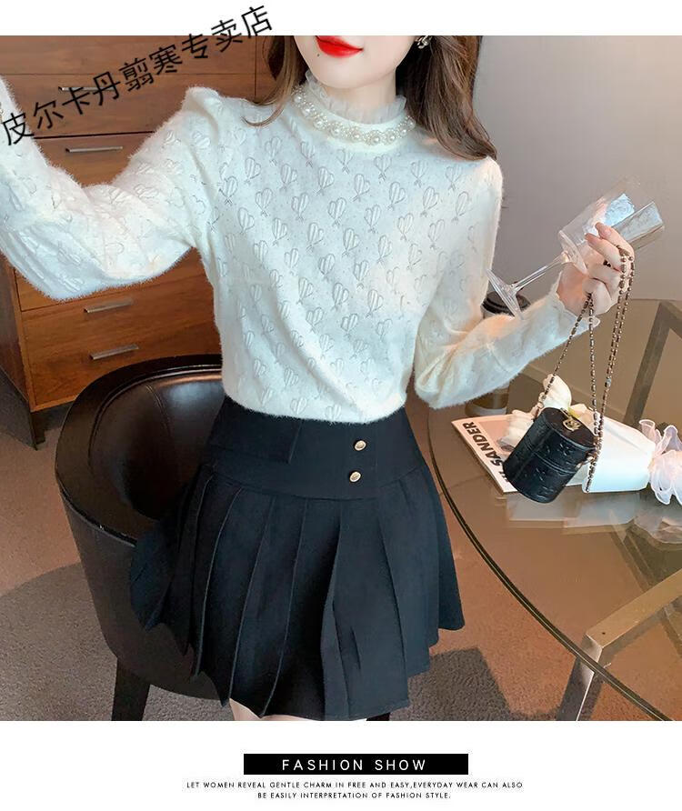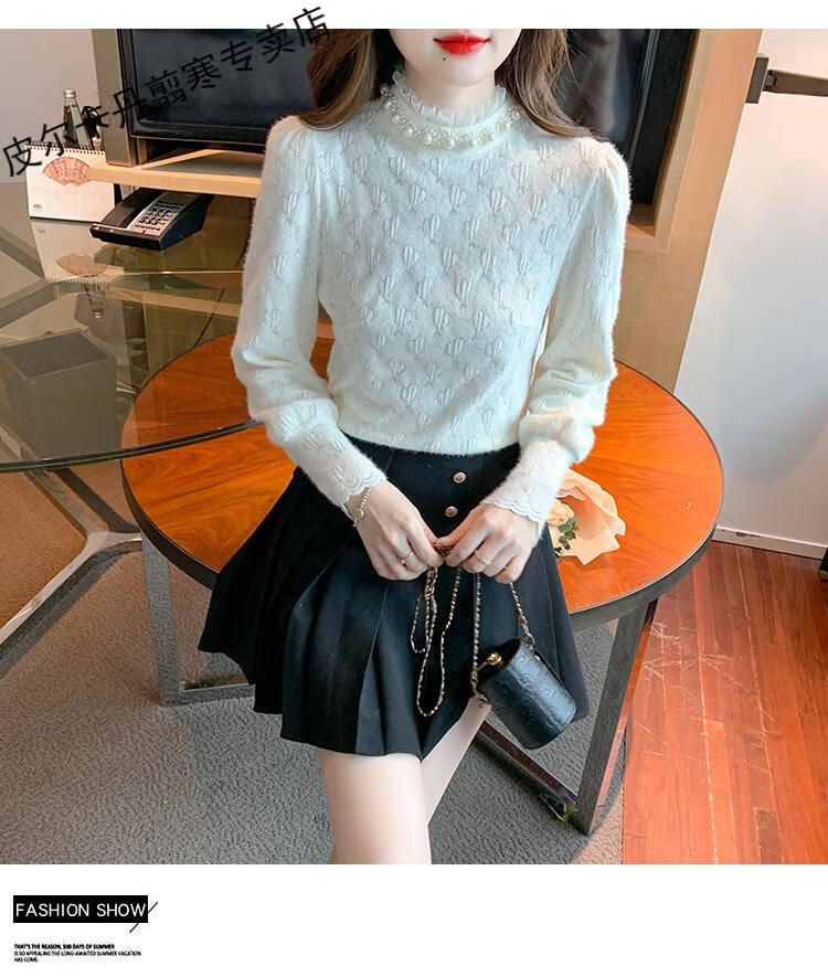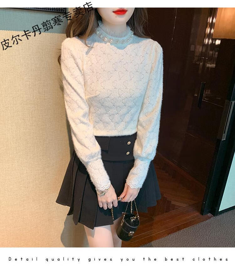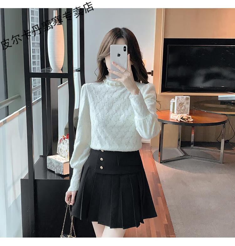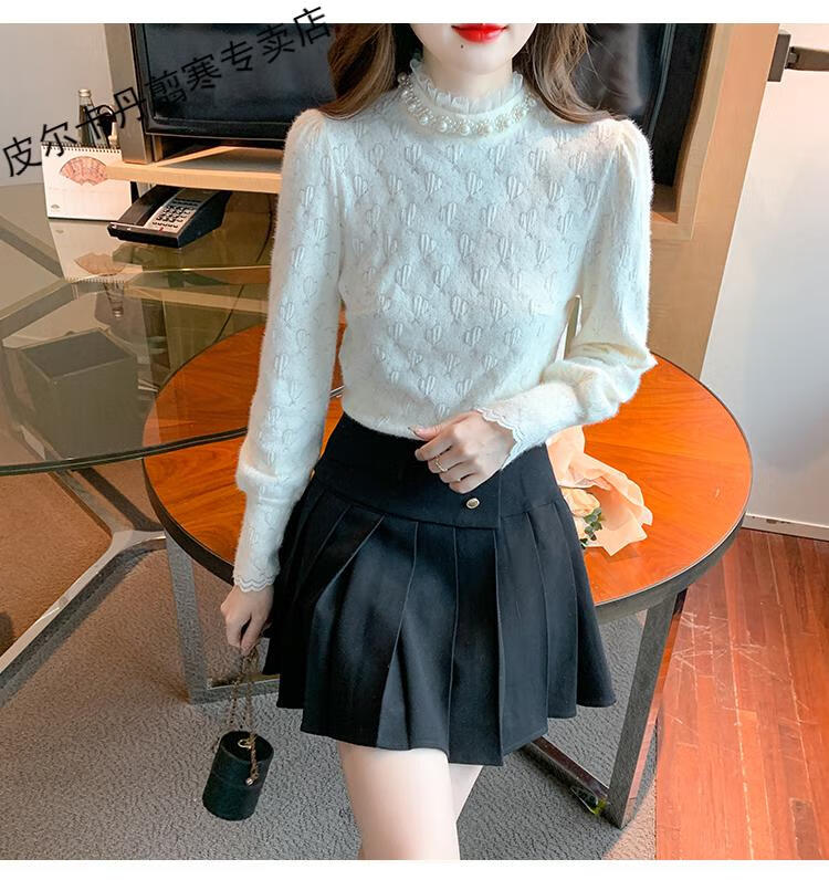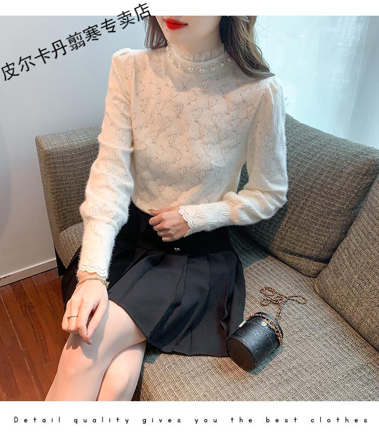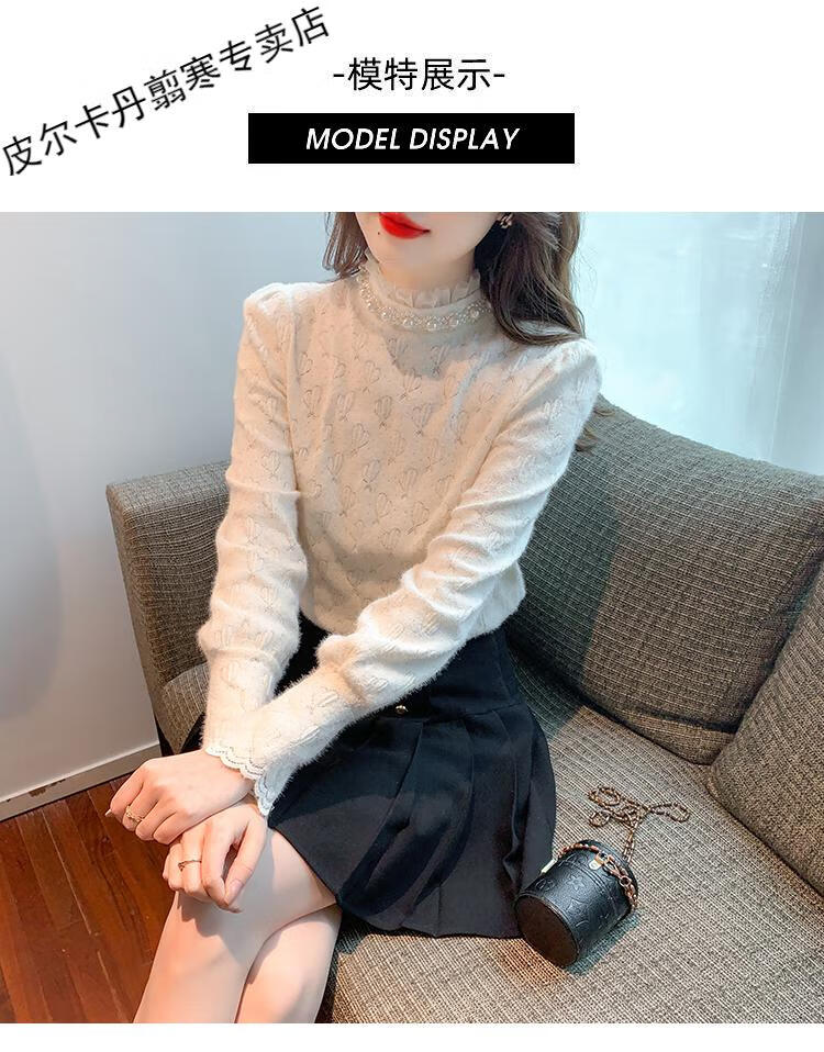Pierre Cardin Half Turtle Collar Velvet Lace Bottoming Shirt Women's Autumn 2025 Autumn and Winter New Slim Inner Top Western Style Small Shirt Apricot Regular S 80-95Jin Jin is equal to 0.5 kg