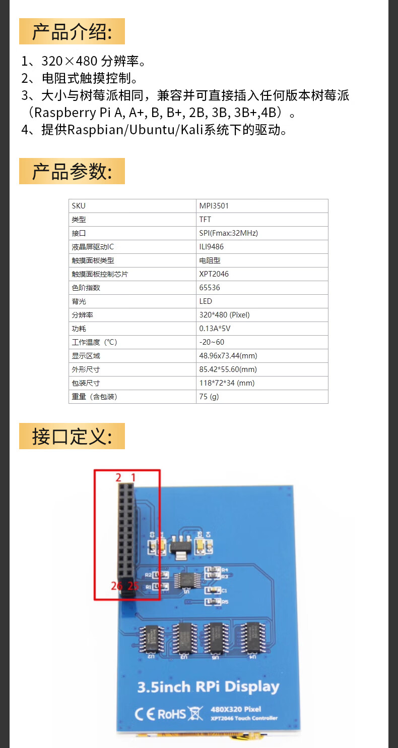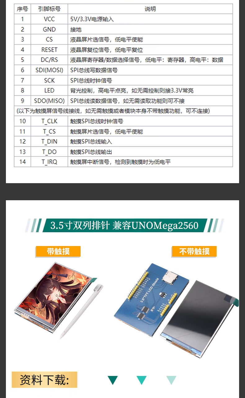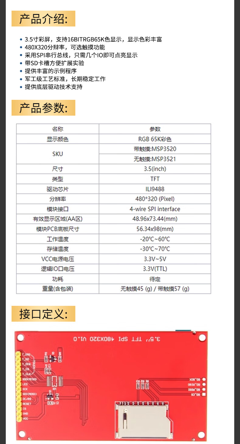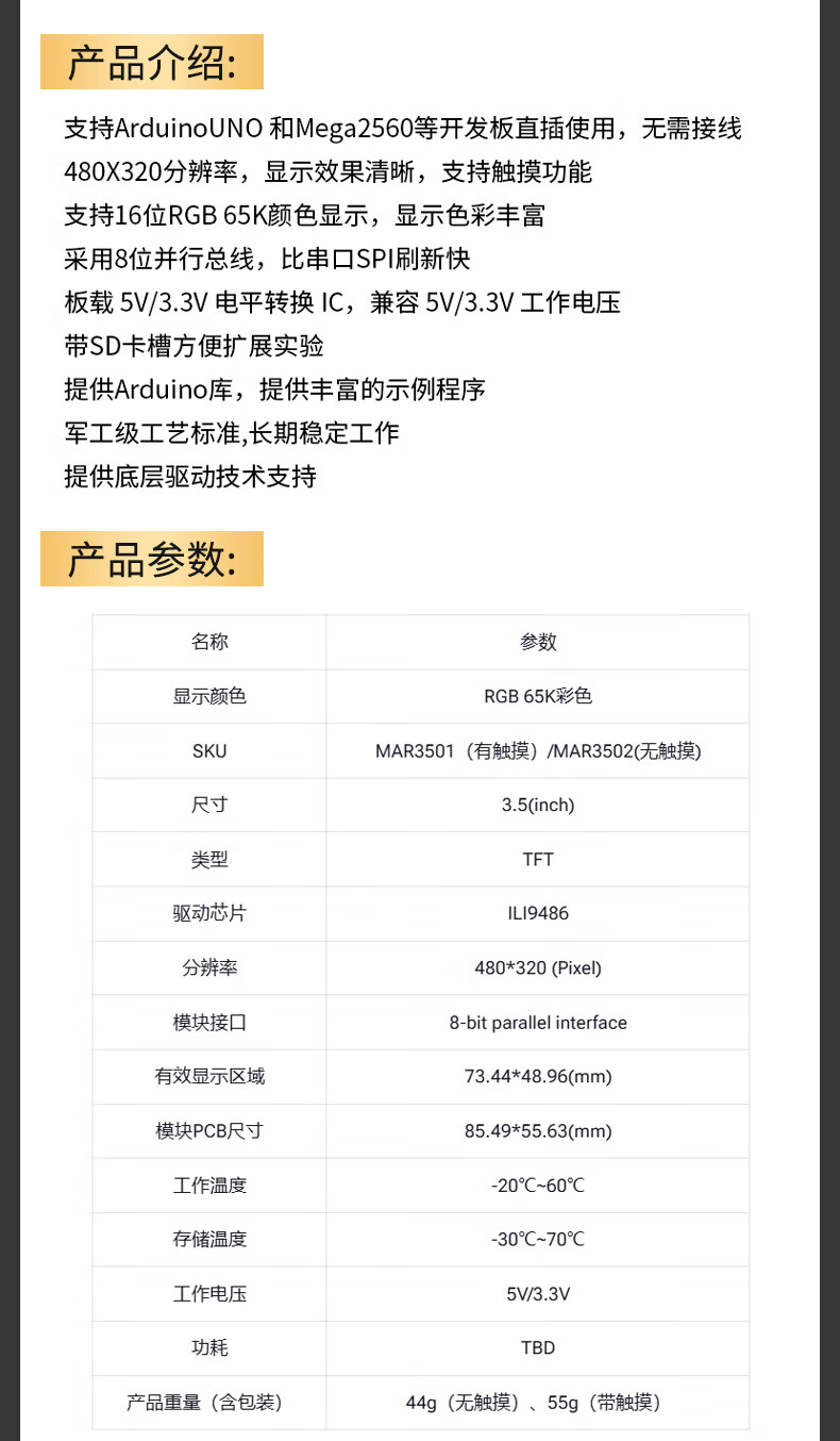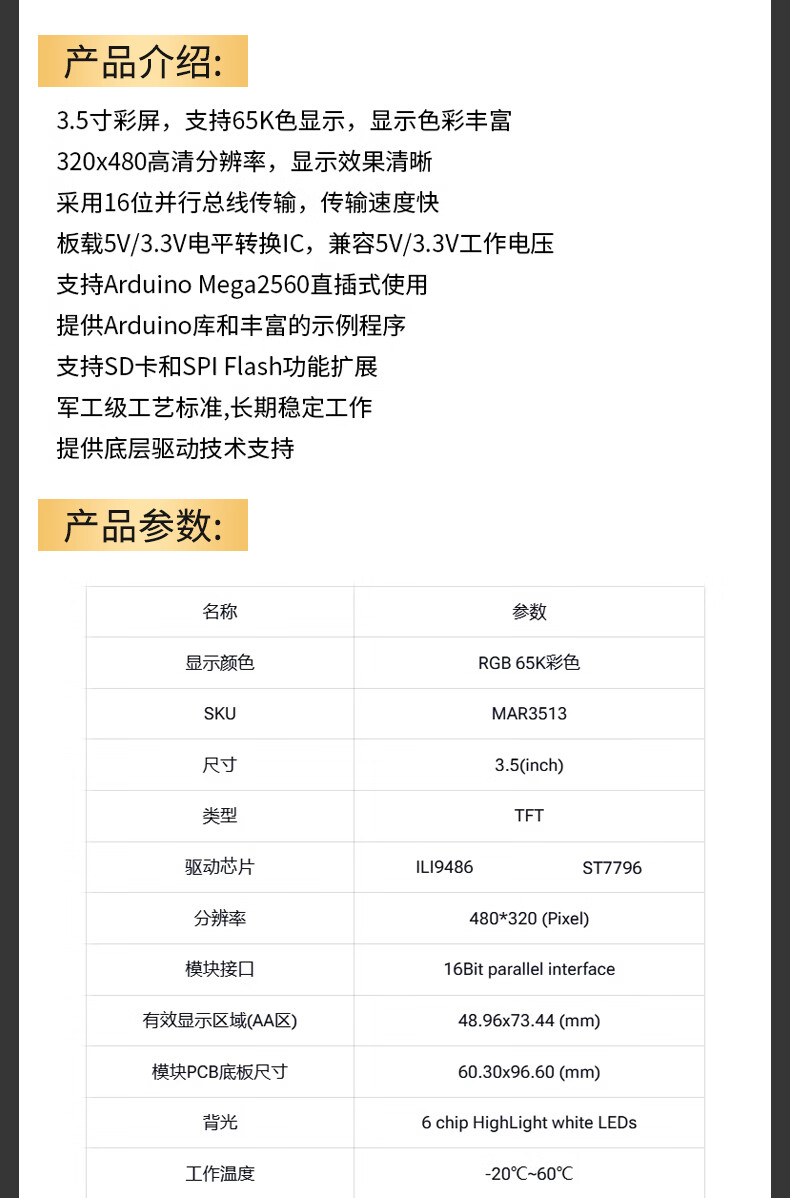 New color TFT LCD module 1.8/2.0/2.4/2.8/3.2/3.5-inch touch screen display module SPI 3.5-inch high-definition ILI9486 driver compatible with Mega256