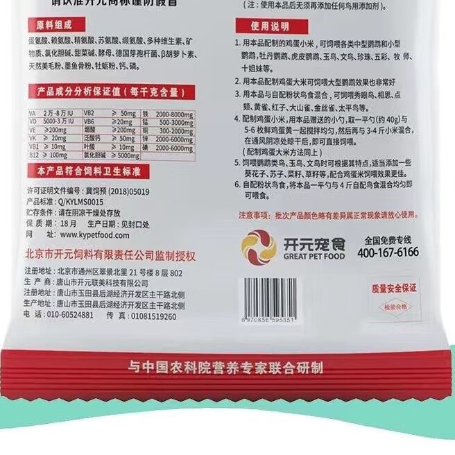 Kaiyuan premix parrot millet feed to increase reproduction rate, universal, bright coat color, universal Kaiyuan premix 500g, 5 packs