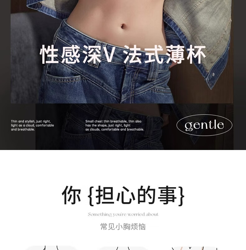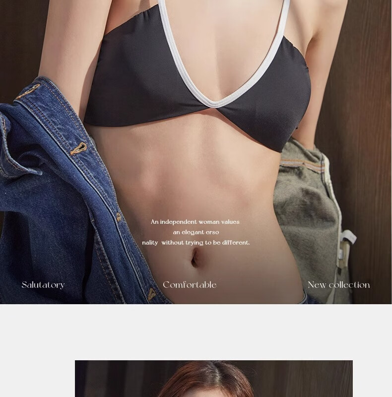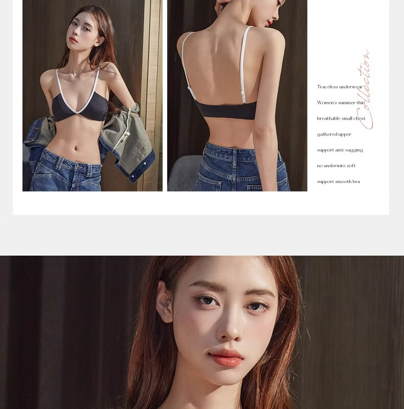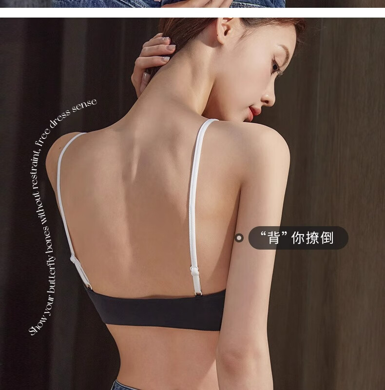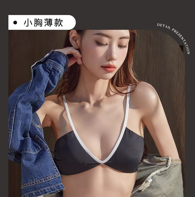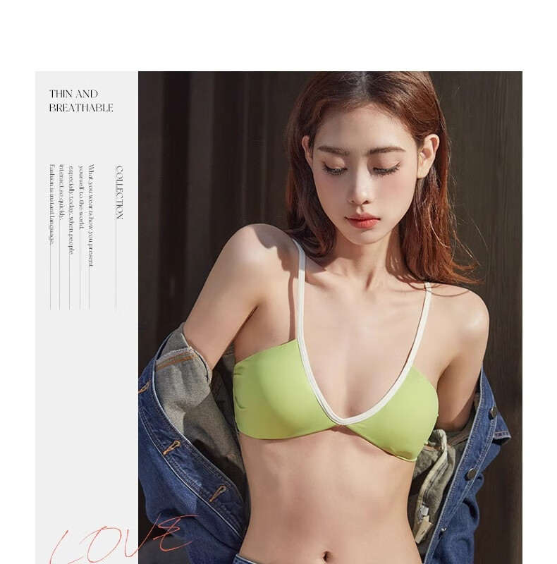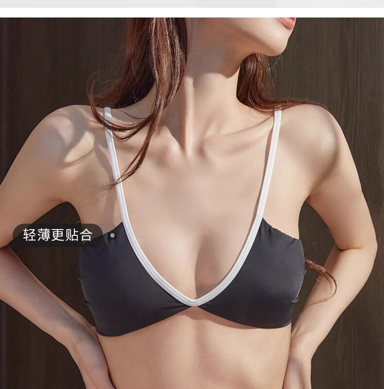 Underwear for women summer thin sexy deep V French style hot girl fashionable and comfortable seamless seamless vest style bra Khaki L 36/80AB