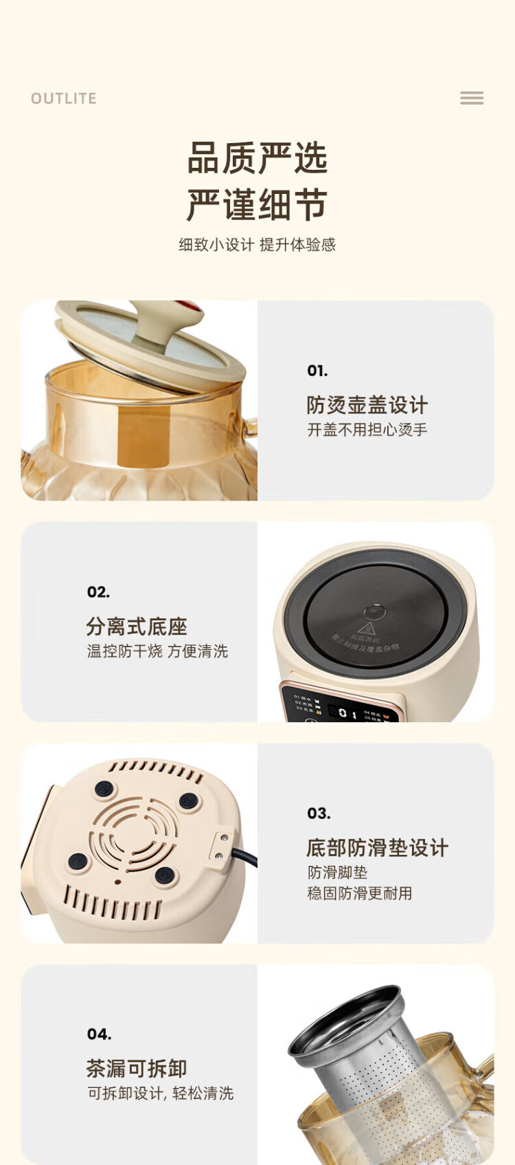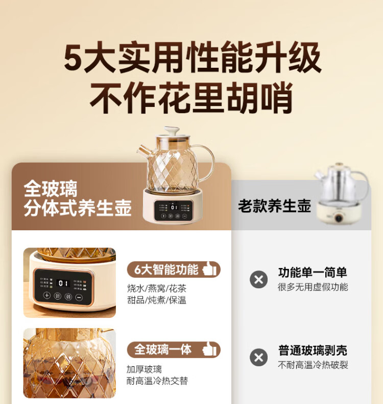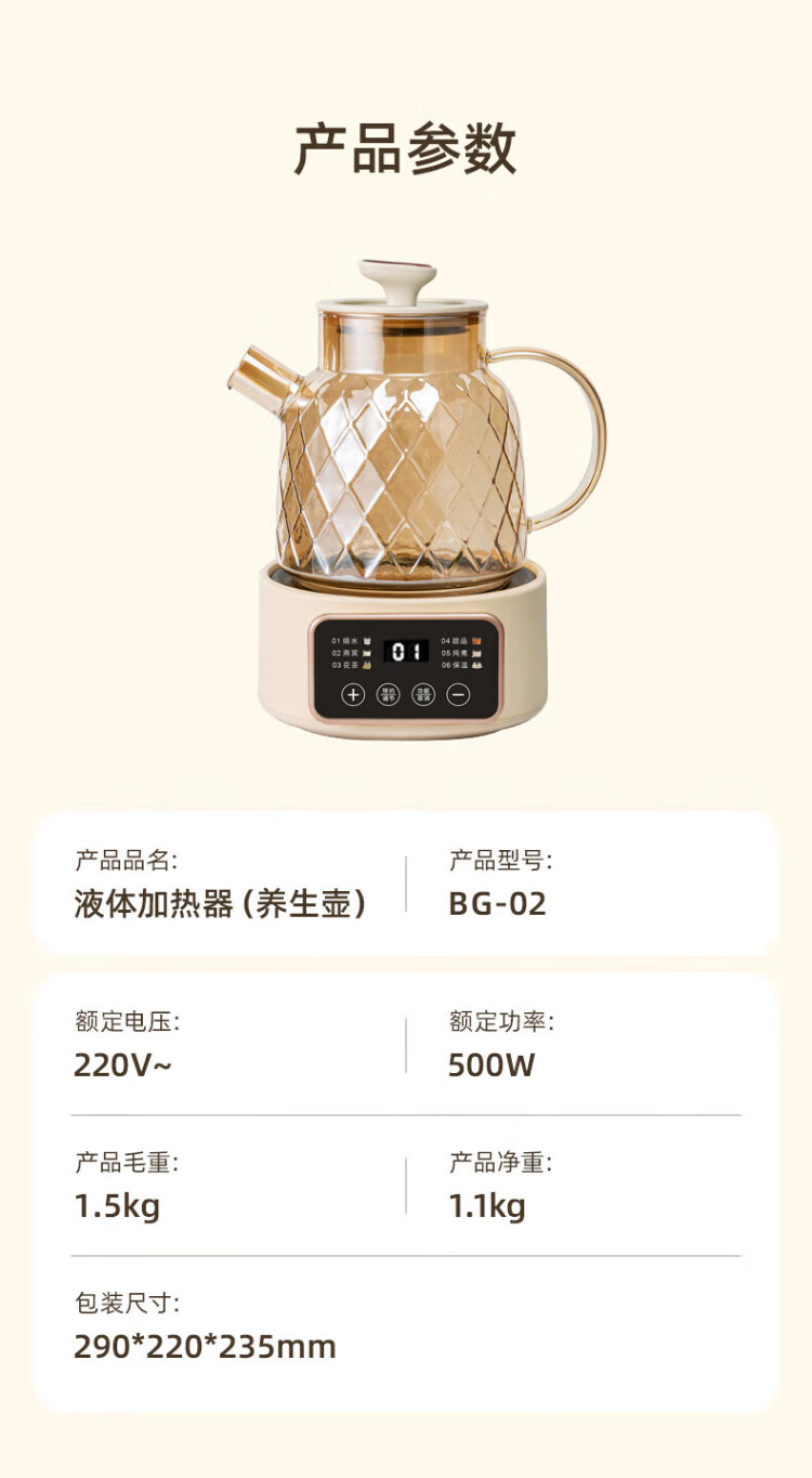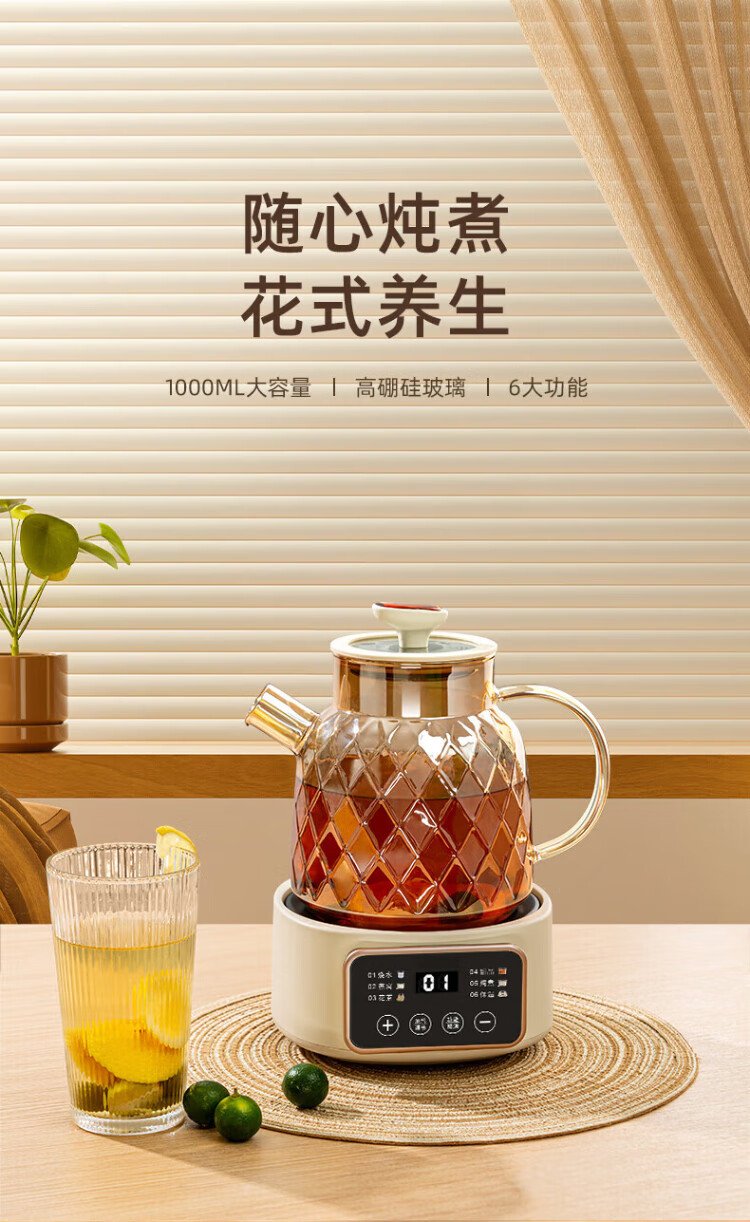 Mengduofu health pot all-glass thermostatic kettle kettle teapot mini office one-person flower teapot home boiling water for tea baby silicone-free 0 glue pure glass bottom one smart model all-glass + multi-function + appointment 1L flagship model