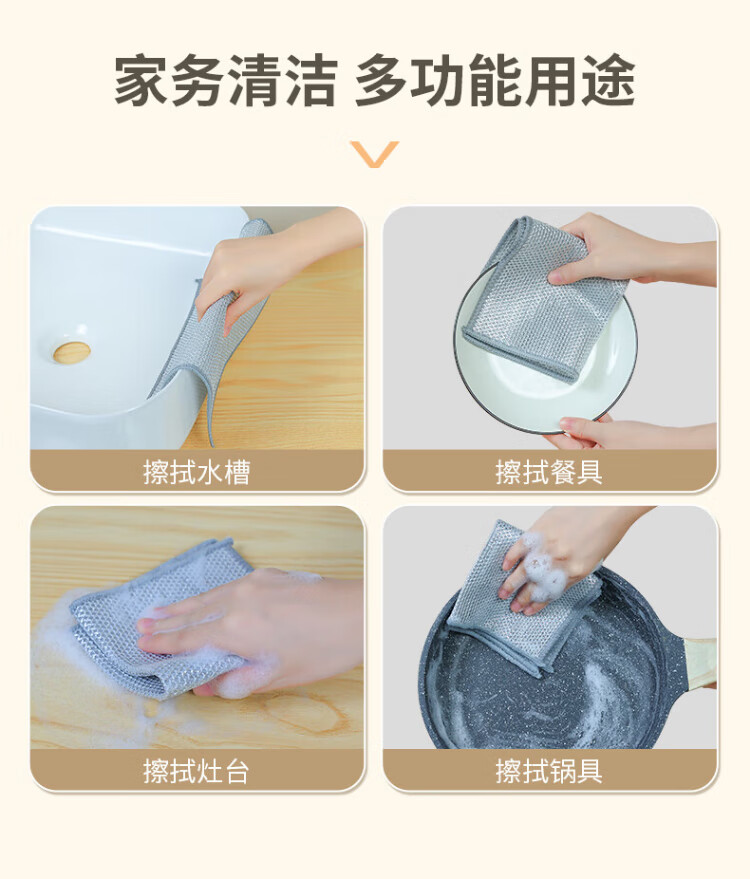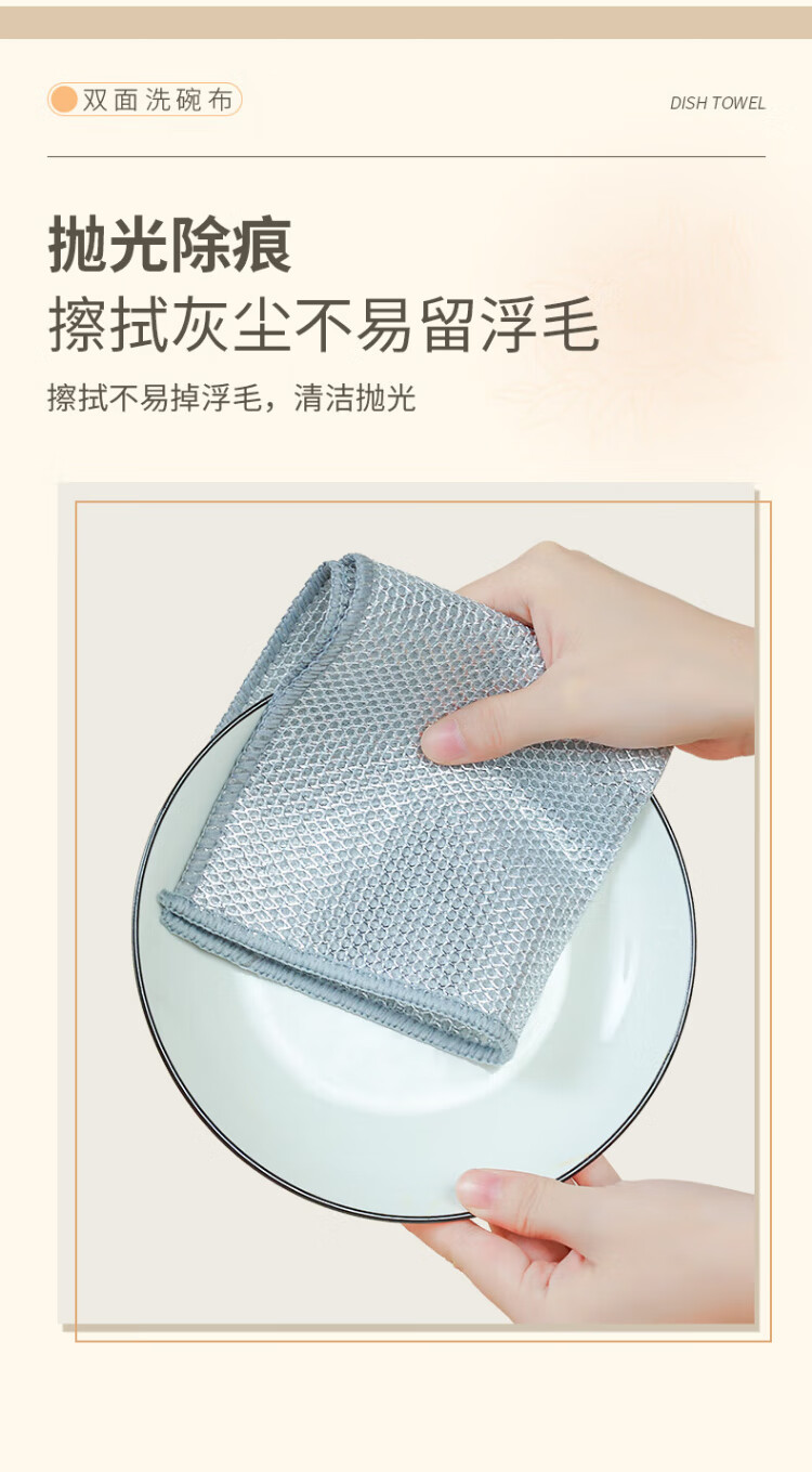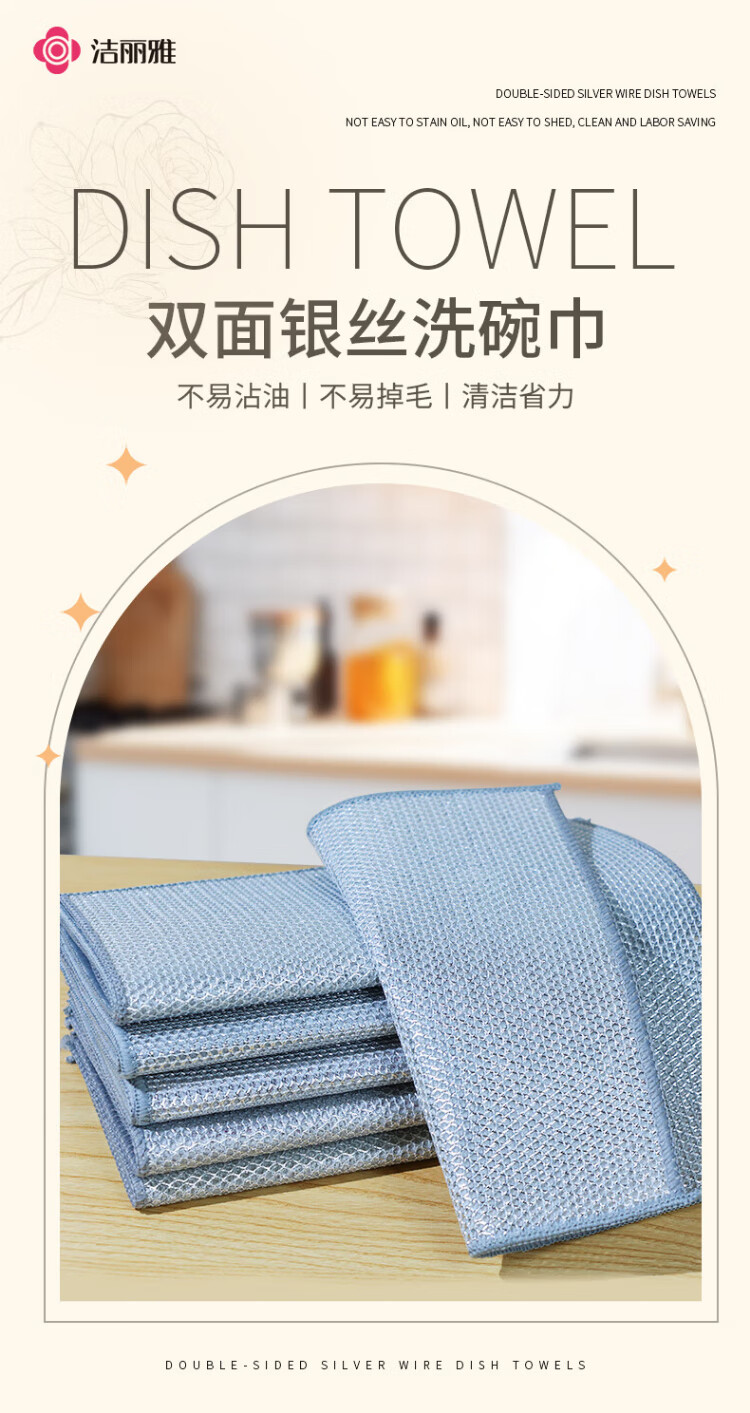 Jie Liya (grace) silver wire rag thickened three-layer mesh kitchen special brush pot strong decontamination cleaning cloth thickened three-layer 4 pack 25*25cm