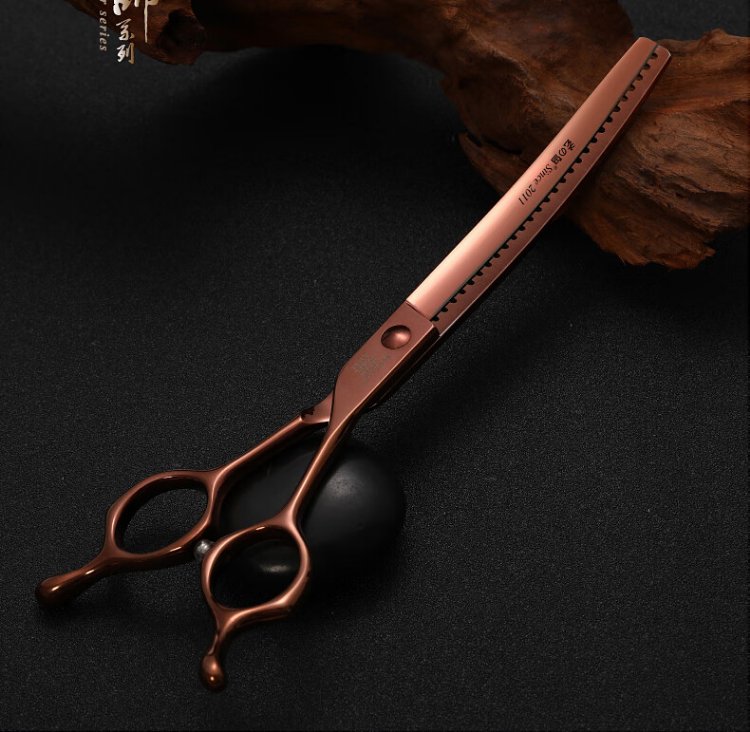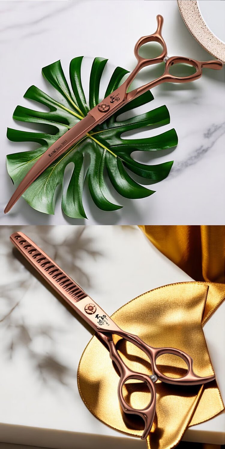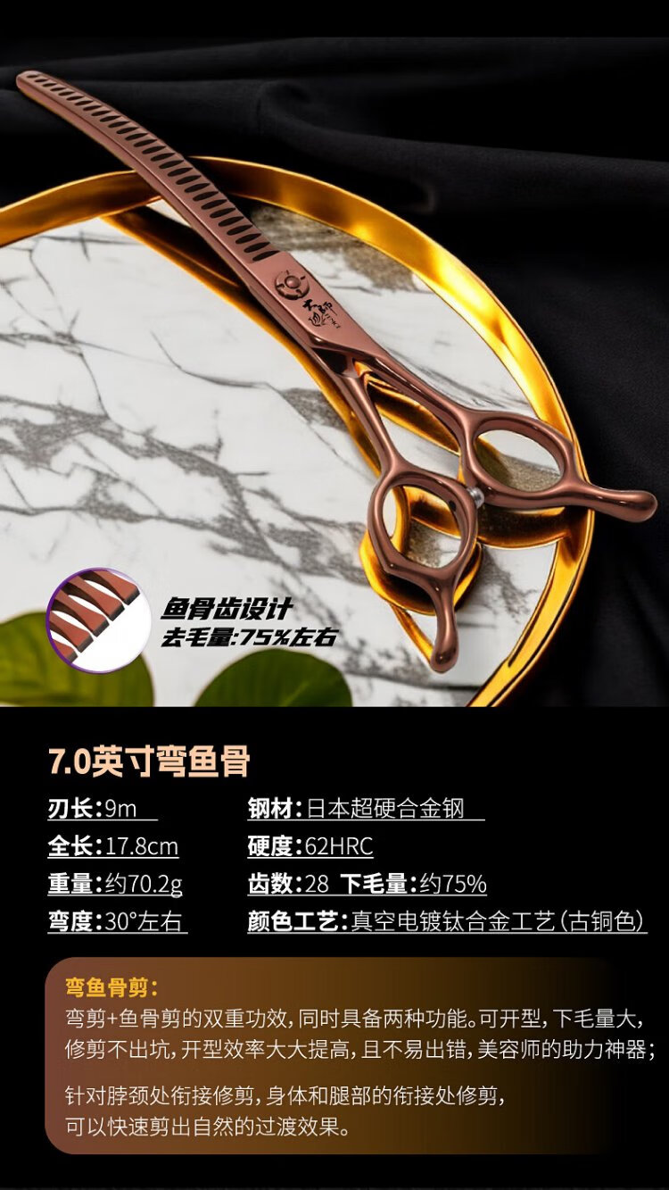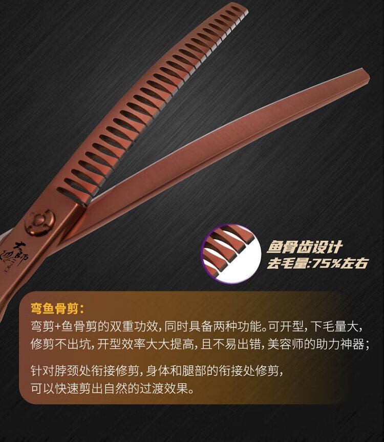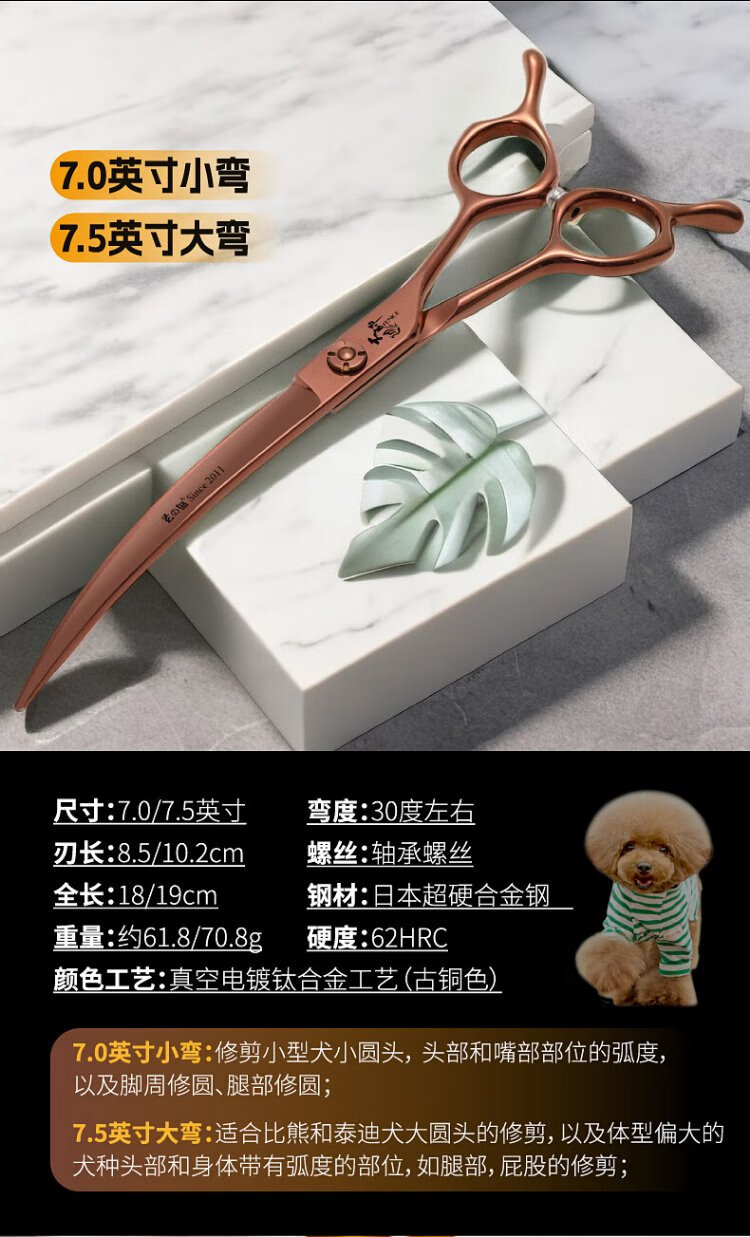 Xuanniao professional pet grooming scissors, natural scissors, curved fishbone scissors, straight scissors, curved scissors, pet shop grooming professional tools, 7.0 inches, curved fishbone scissors