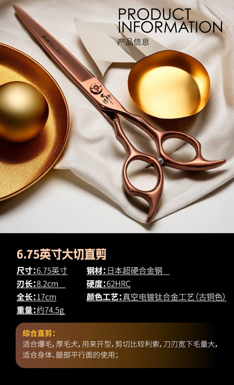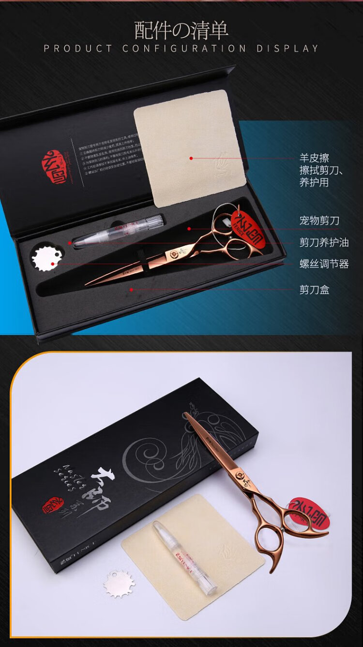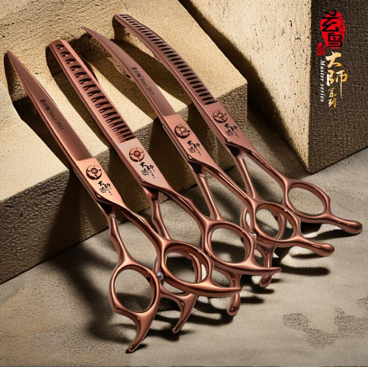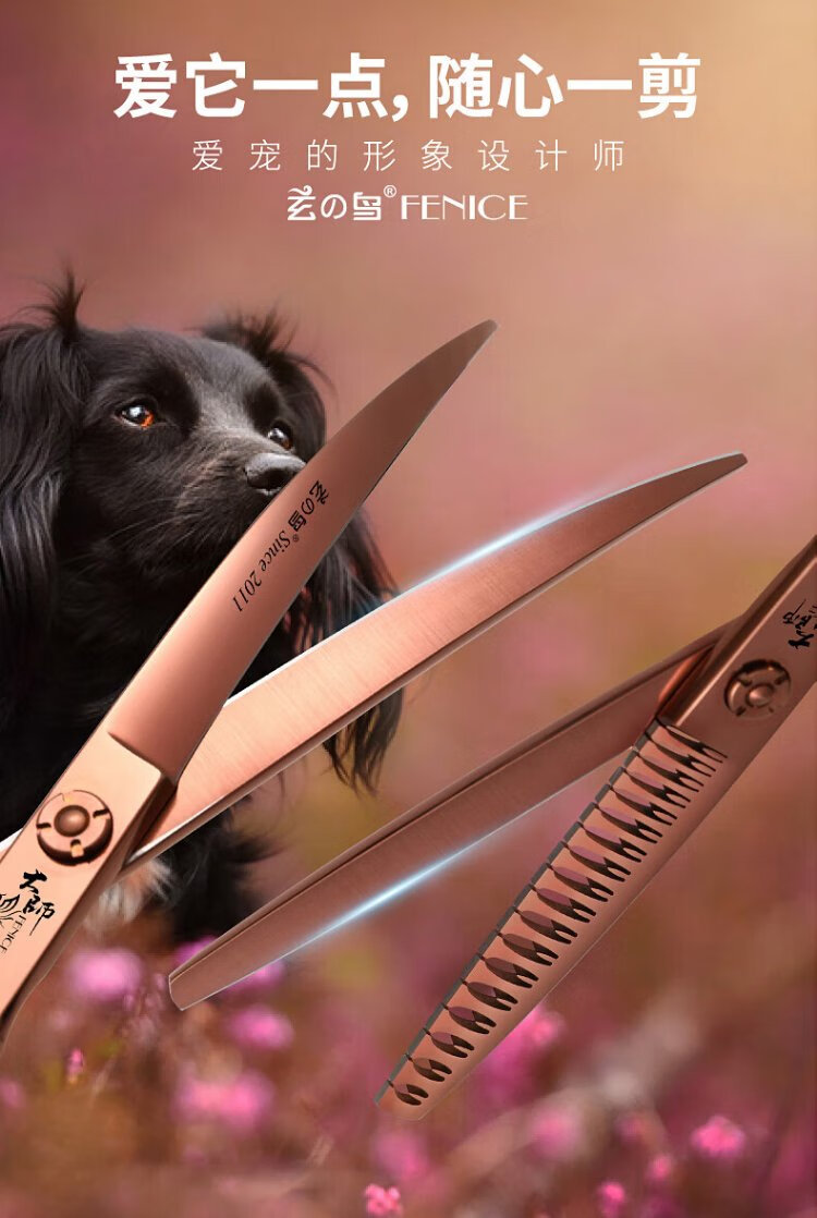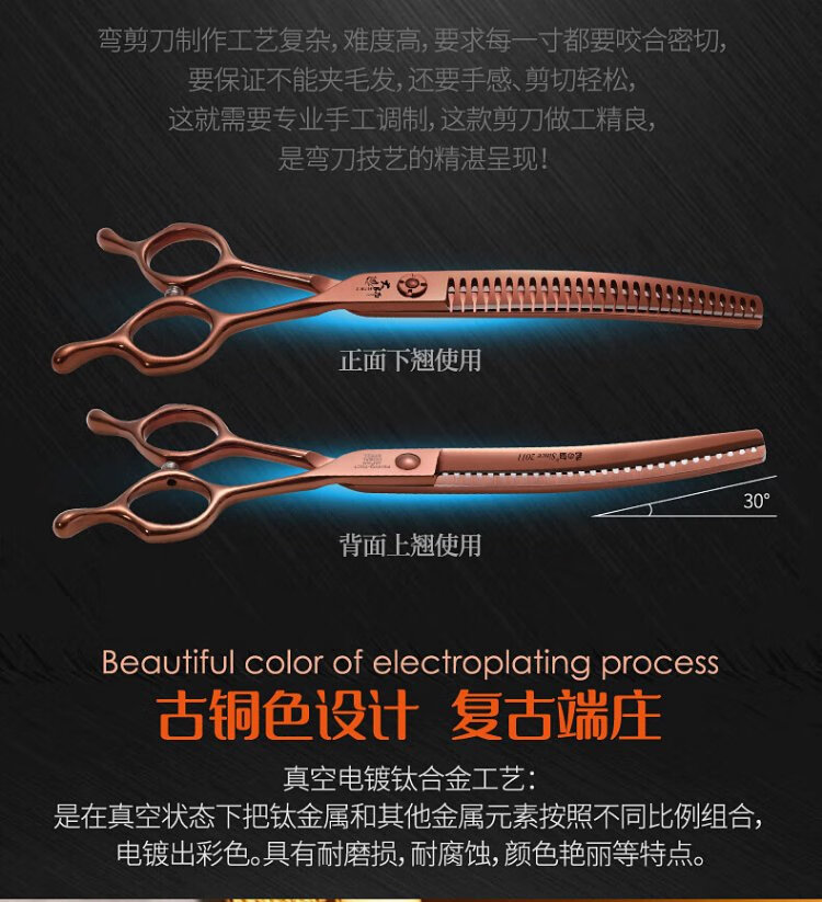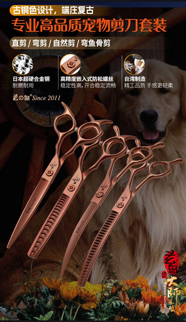 Xuanniao professional pet grooming scissors, natural scissors, curved fishbone scissors, straight scissors, curved scissors, pet shop grooming professional tools, 7.0 inches, curved fishbone scissors