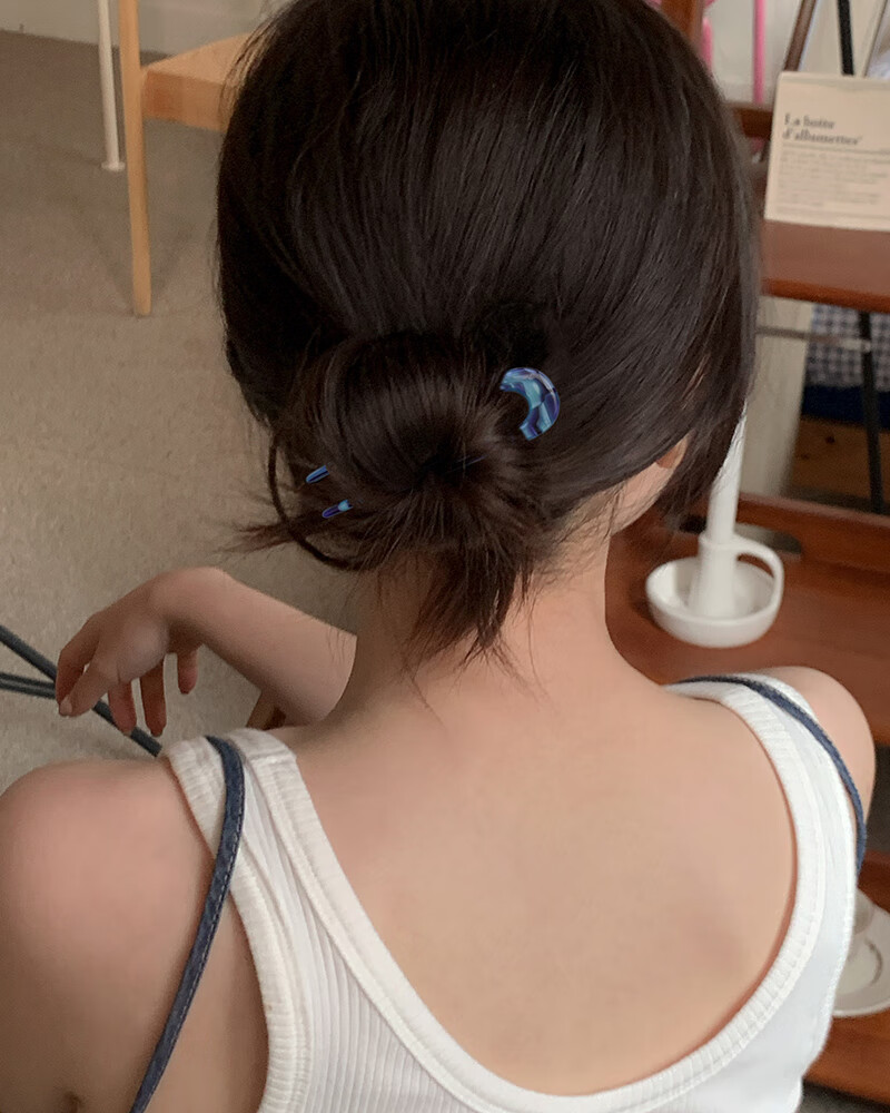 Sarah Deer Korean France gold label blogger's same style small U-shaped hairpin French princess head ball head flower bud hair plug 2, blue mermaid