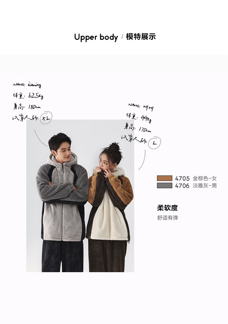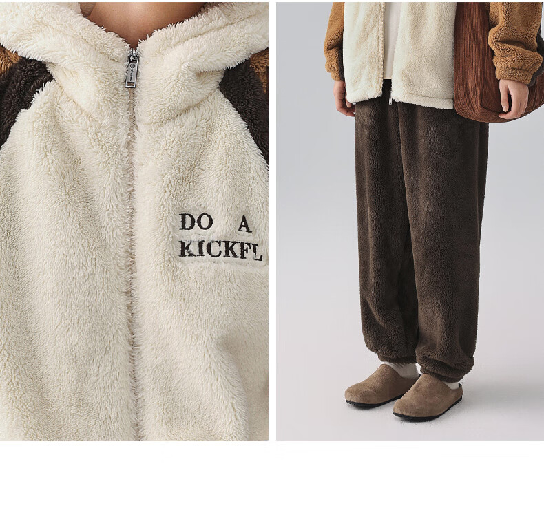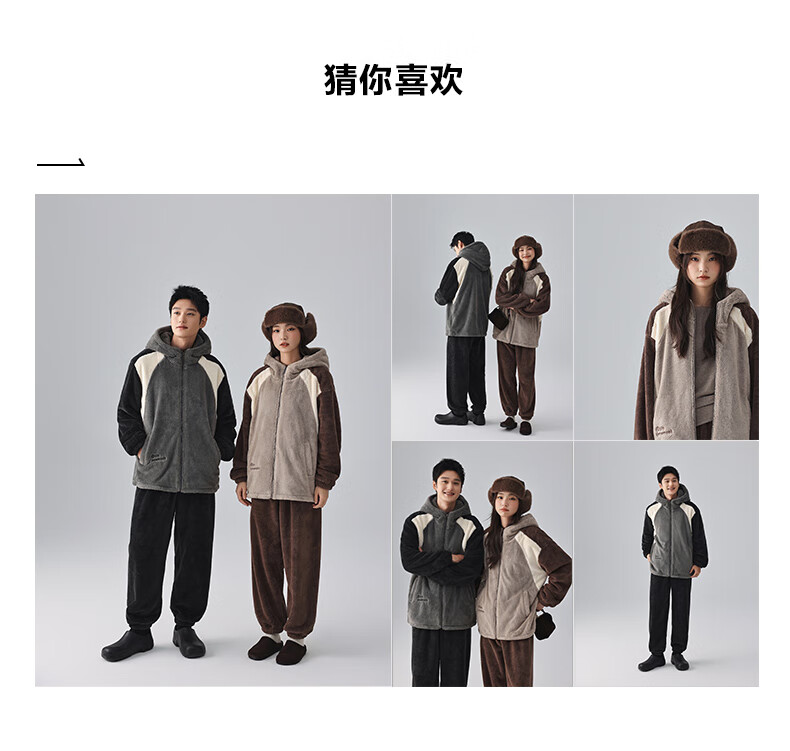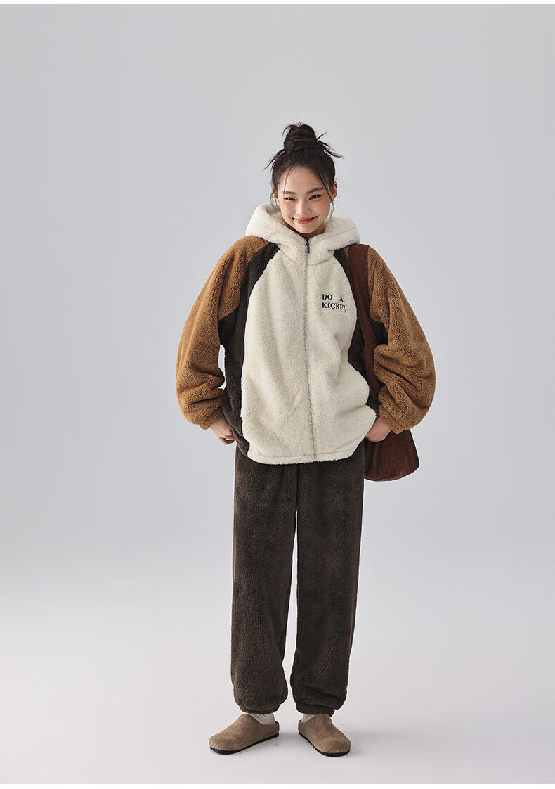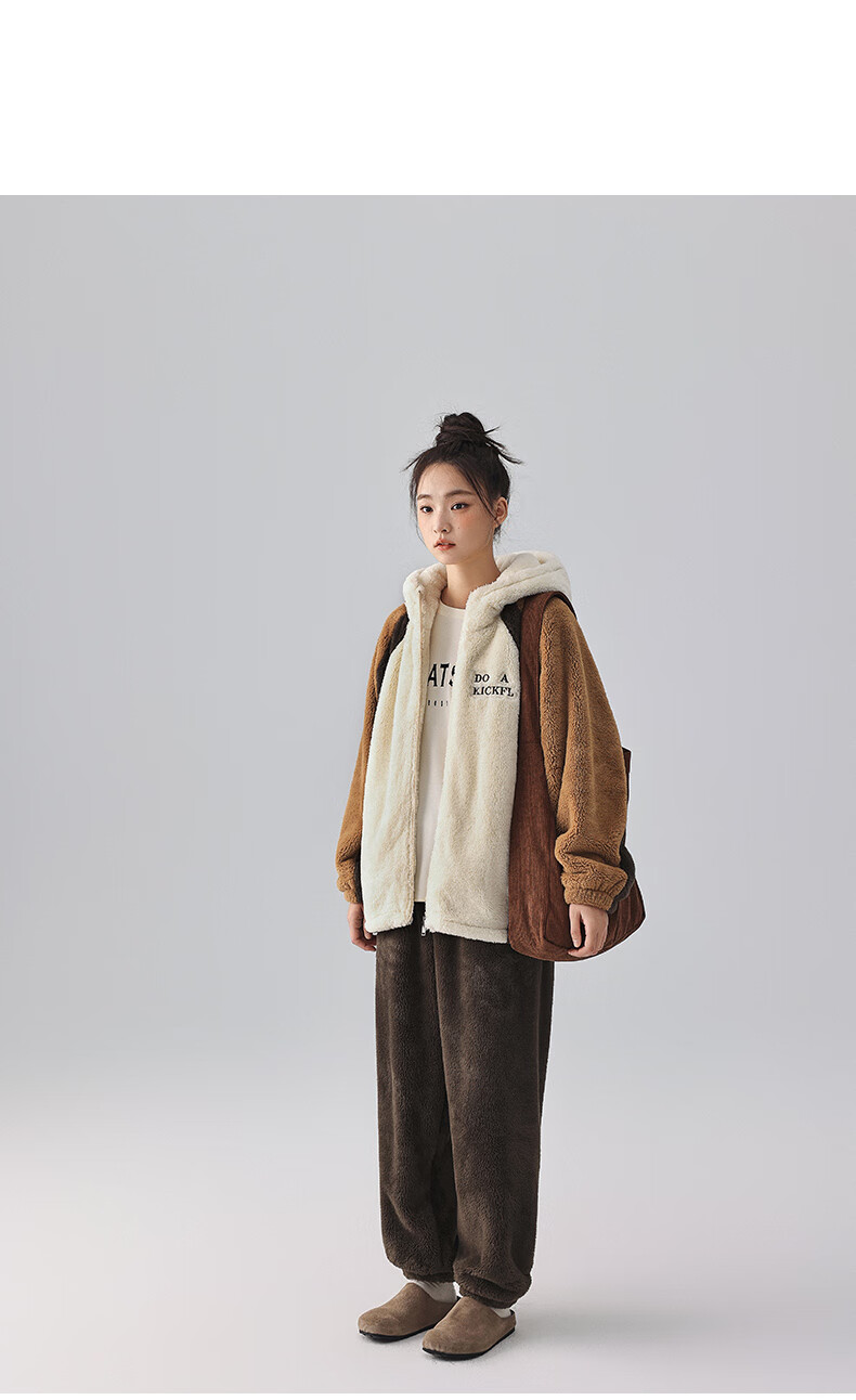 Kissing Cat Soft Velvet Hooded Wide Couple Pajamas Women's Autumn and Winter Warm Thickened Men's Suit Home Clothes 4705 Golden Brown Women's M