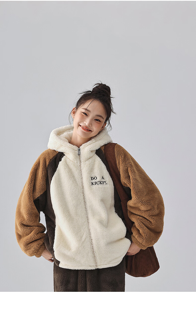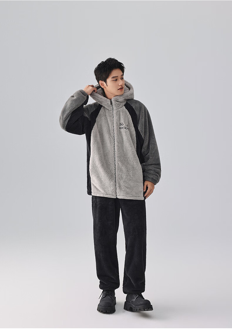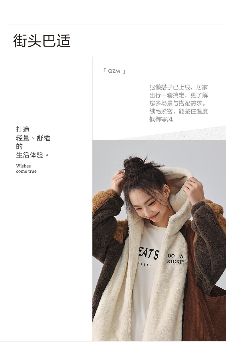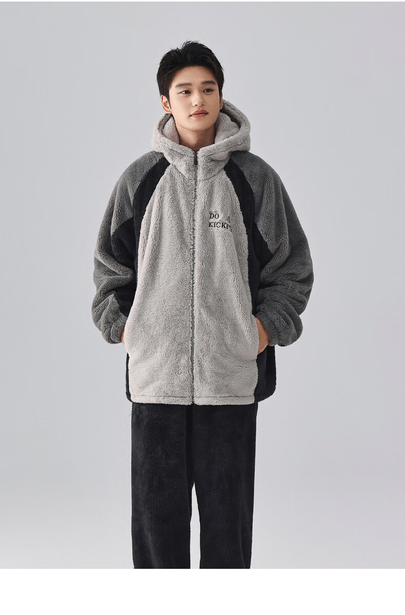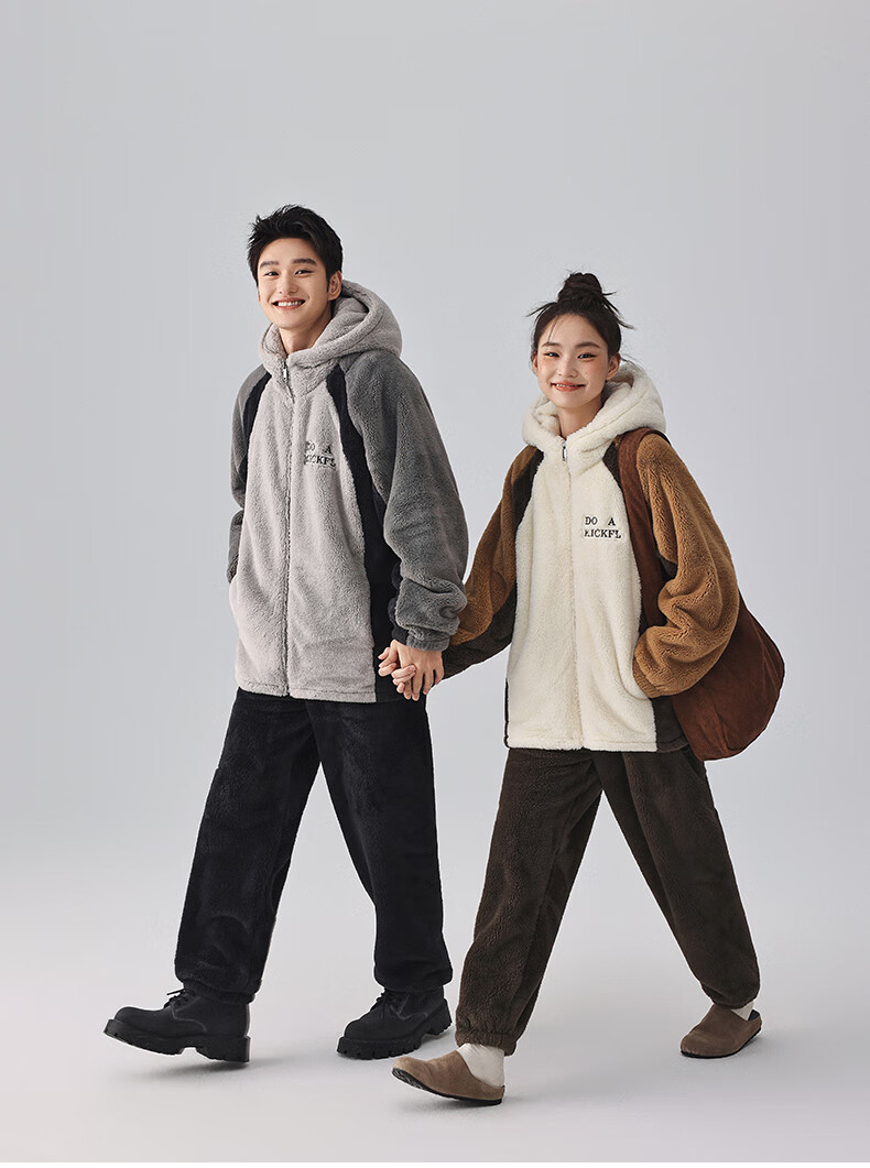 Kissing Cat Soft Velvet Hooded Wide Couple Pajamas Women's Autumn and Winter Warm Thickened Men's Suit Home Clothes 4705 Golden Brown Women's M
