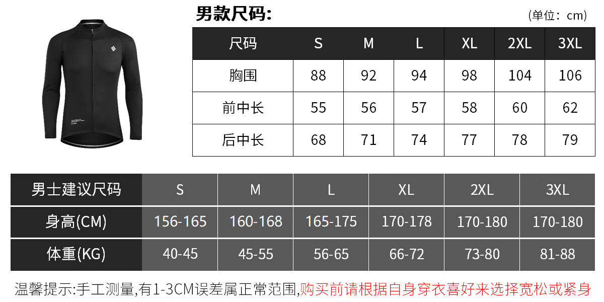 China (cm) 165 / 88-90 170 / 96-98 175 / 108-110 180 / 118-122 185 / 126-130