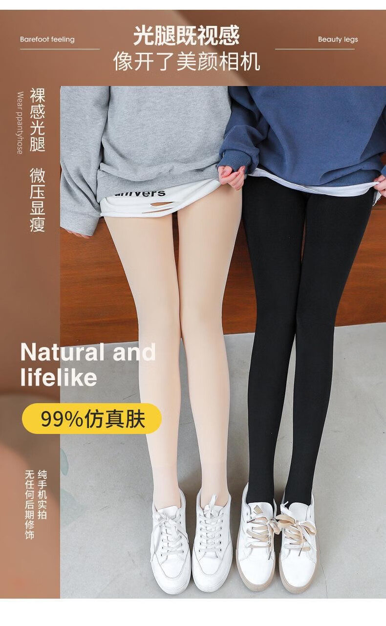 Feiyu Huayu 2023 new autumn and winter velvet thickened leggings for women, foot-stepping warm pants for outer wear, skin-colored nude photosensitive legs, foot-stepping black 50g (no velvet)