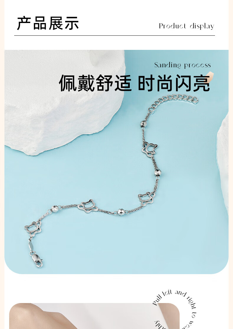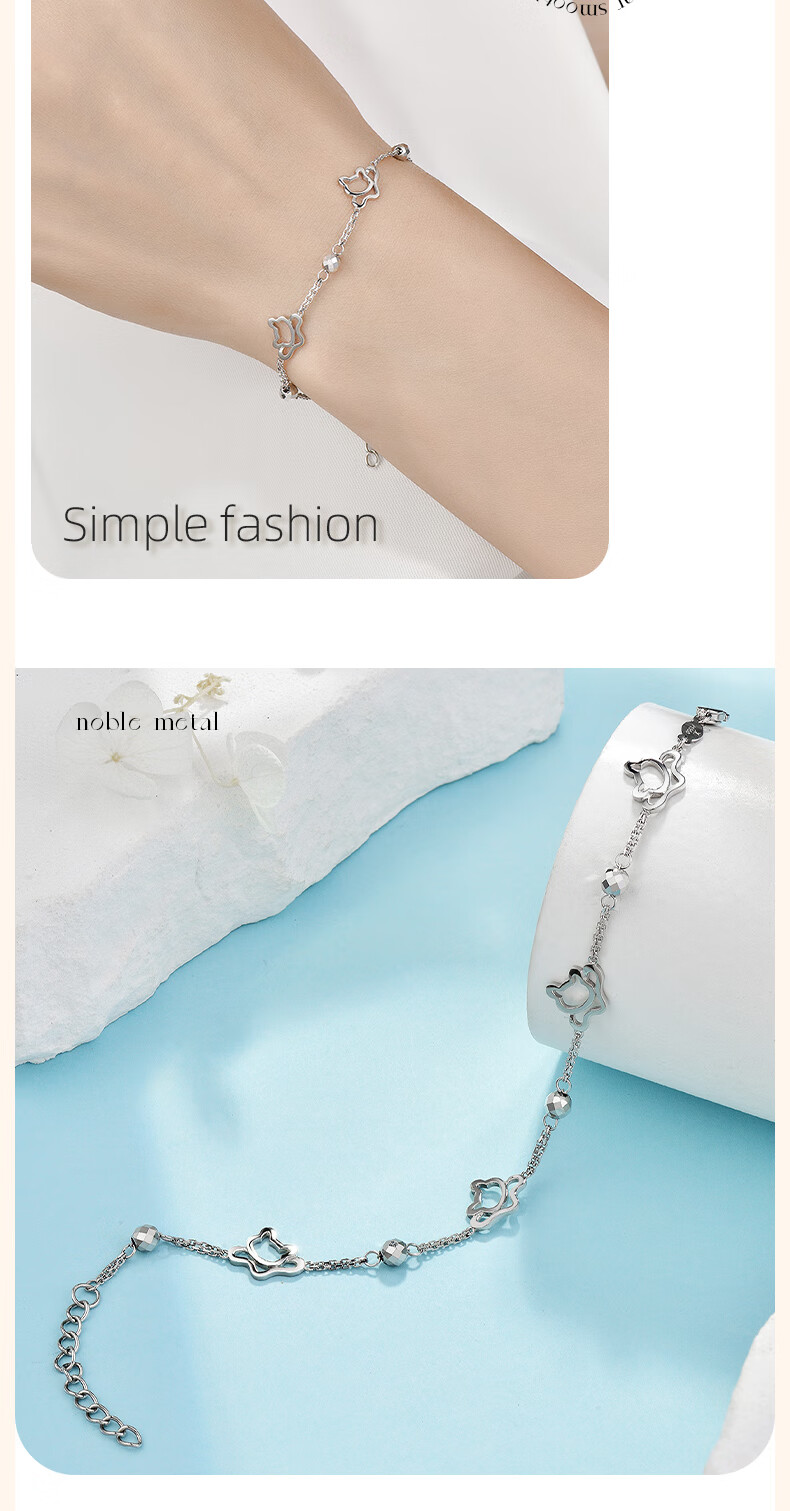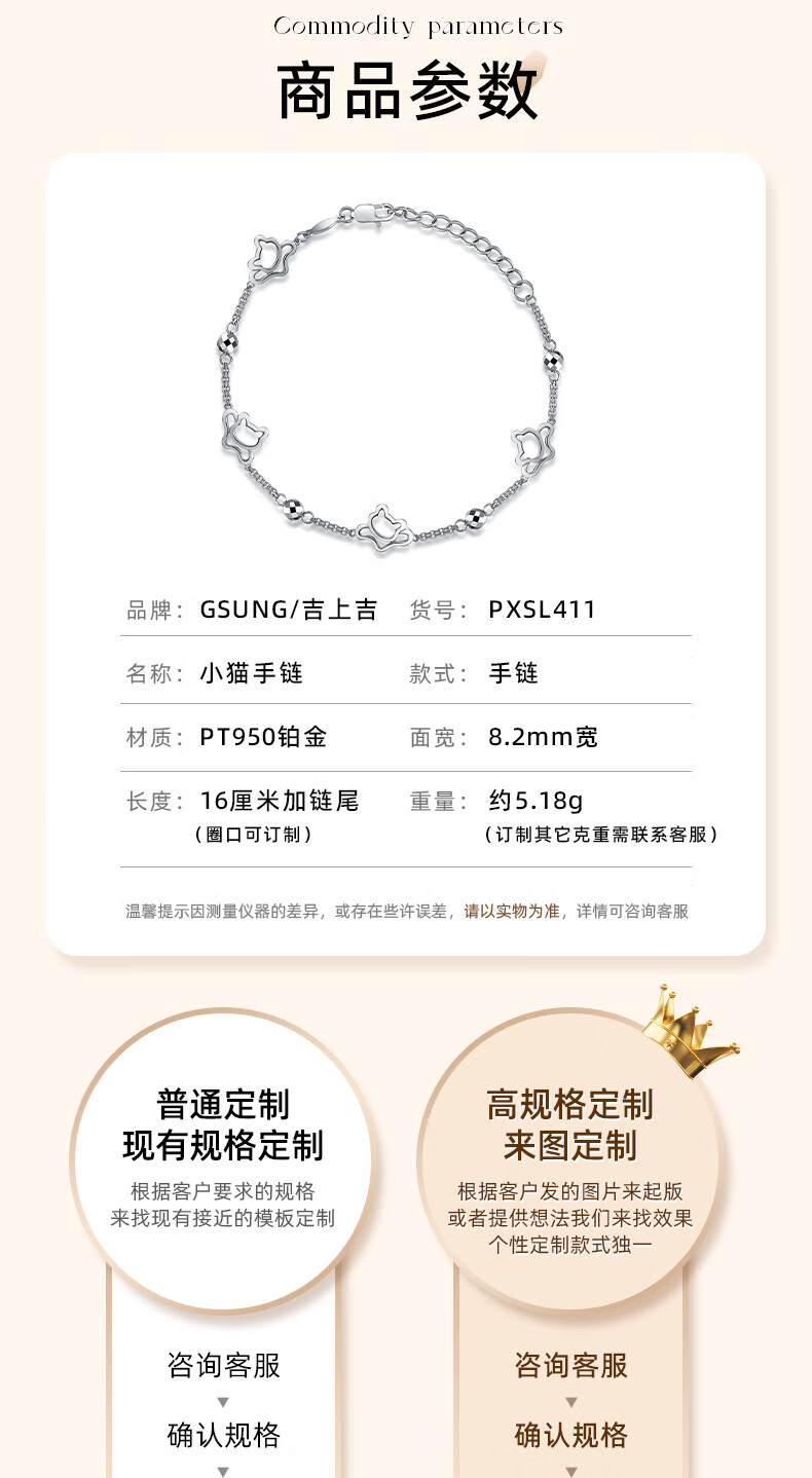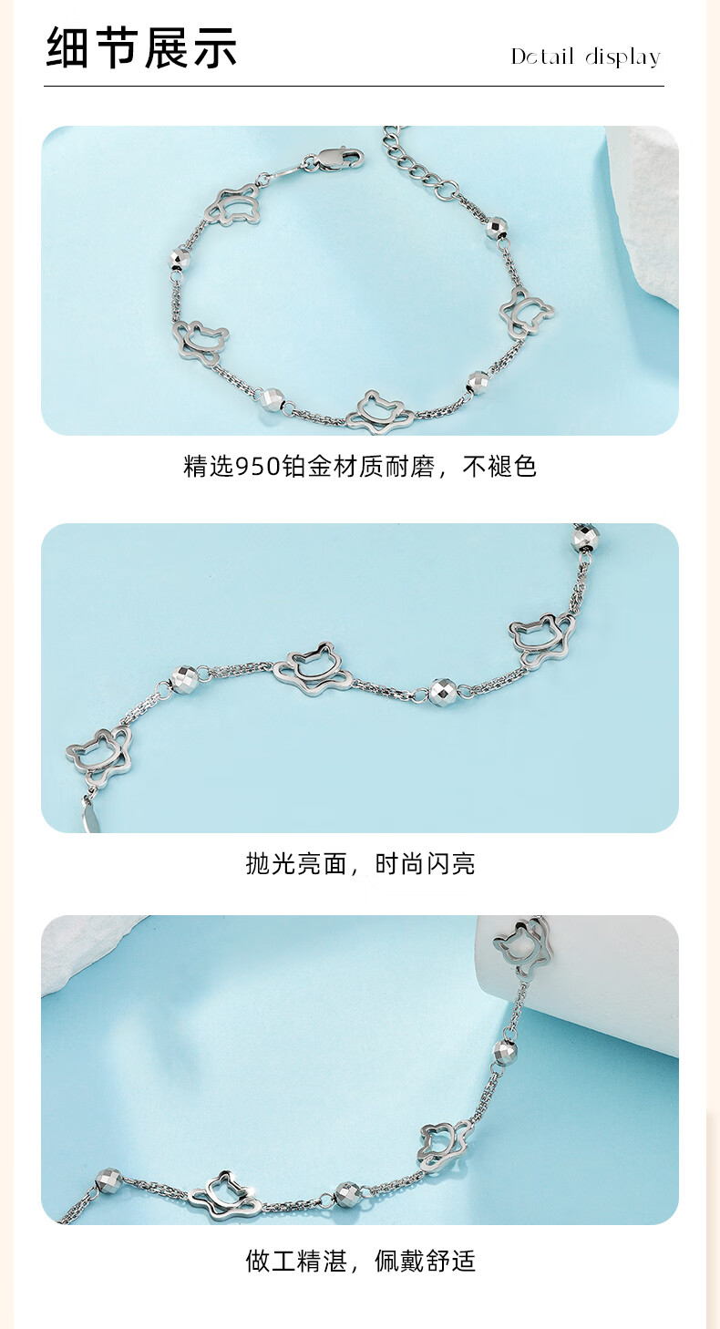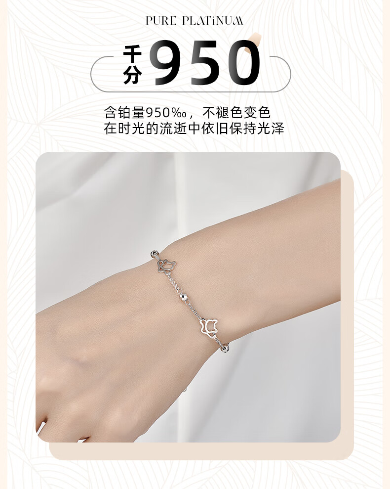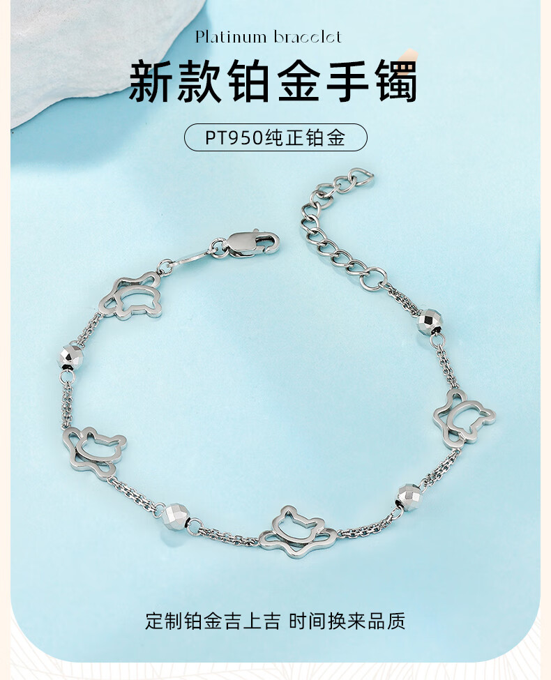 GsunG platinum bracelet for women PT950 kitten bracelet for your girlfriend, fashionable shiny platinum bracelet for women, new beads, priced by gram, contact customer service before bidding for gold price