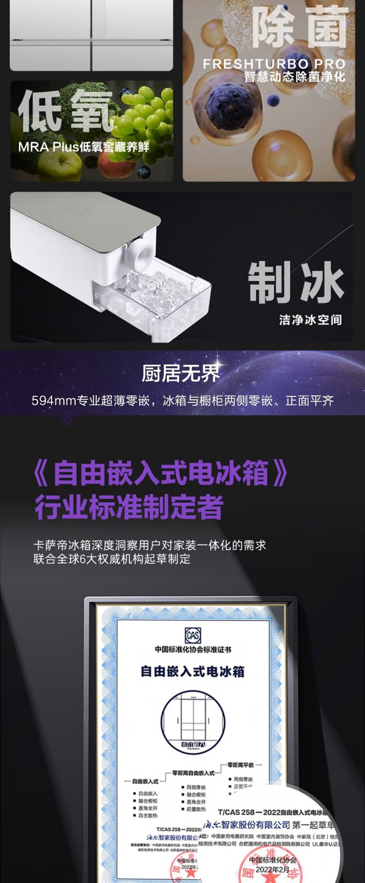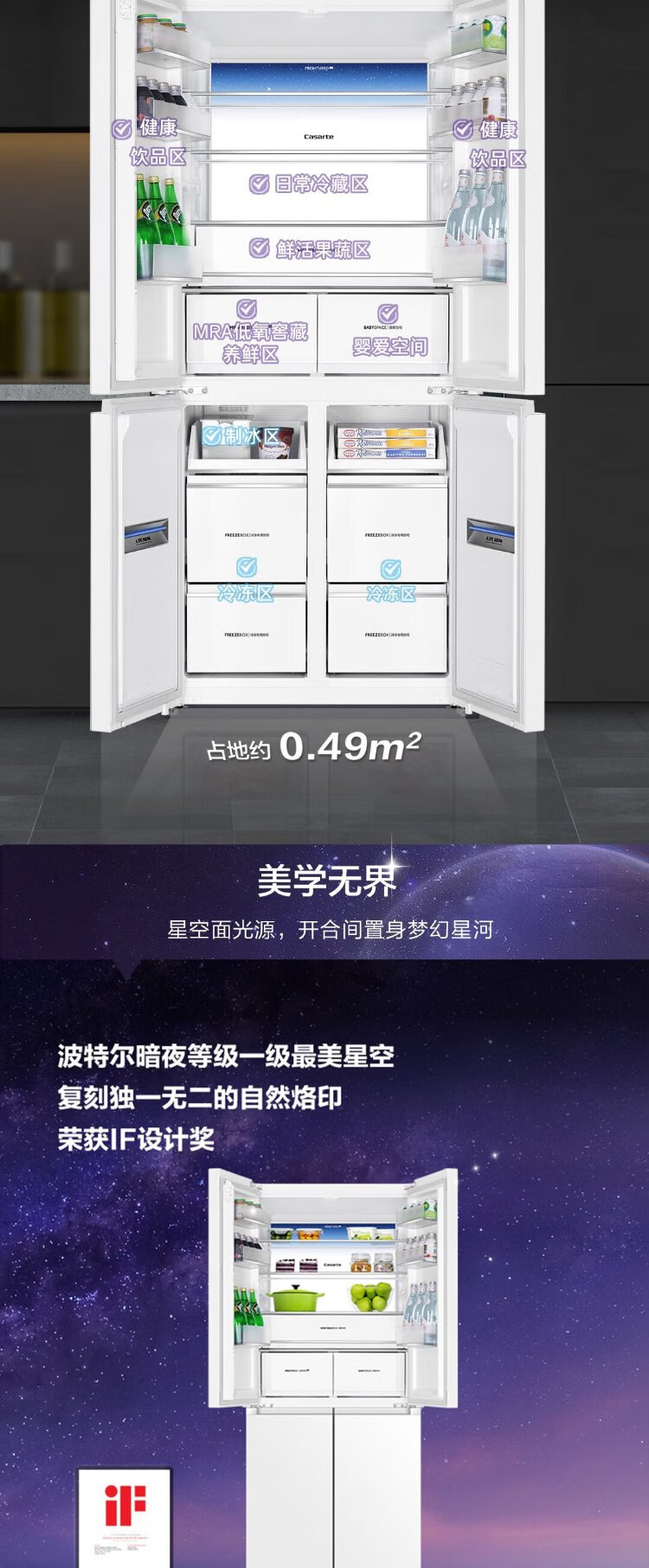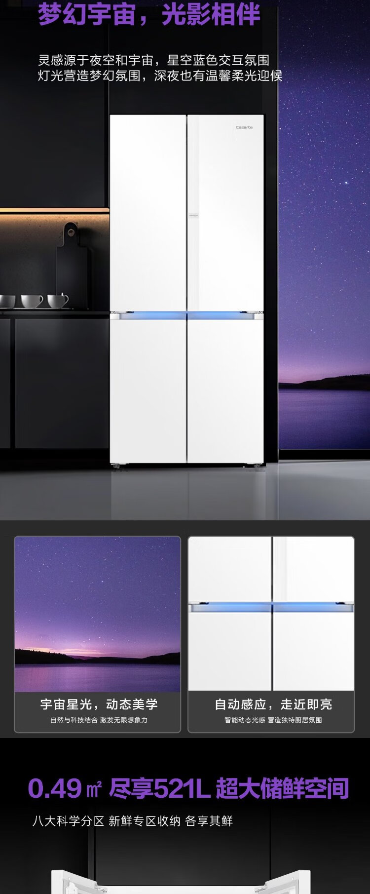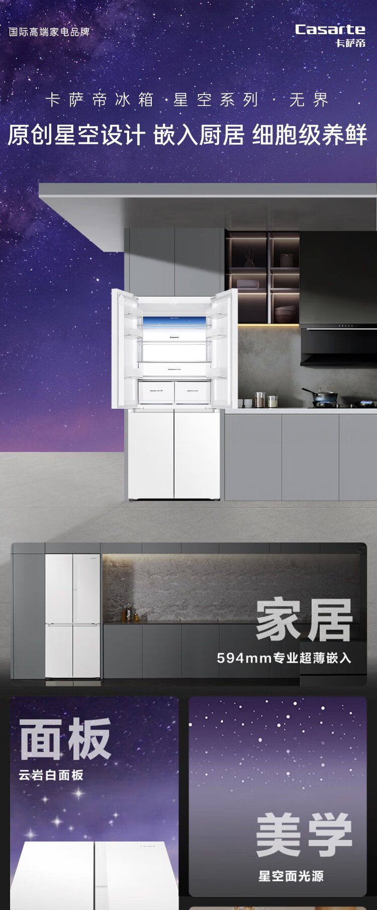 Casarte Languang Refrigerator 521-liter Starry Sky Edition Zero-embedded cross-door household refrigerator 594mm ultra-thin first-class energy-efficiency energy-saving frequency conversion 20% national subsidy