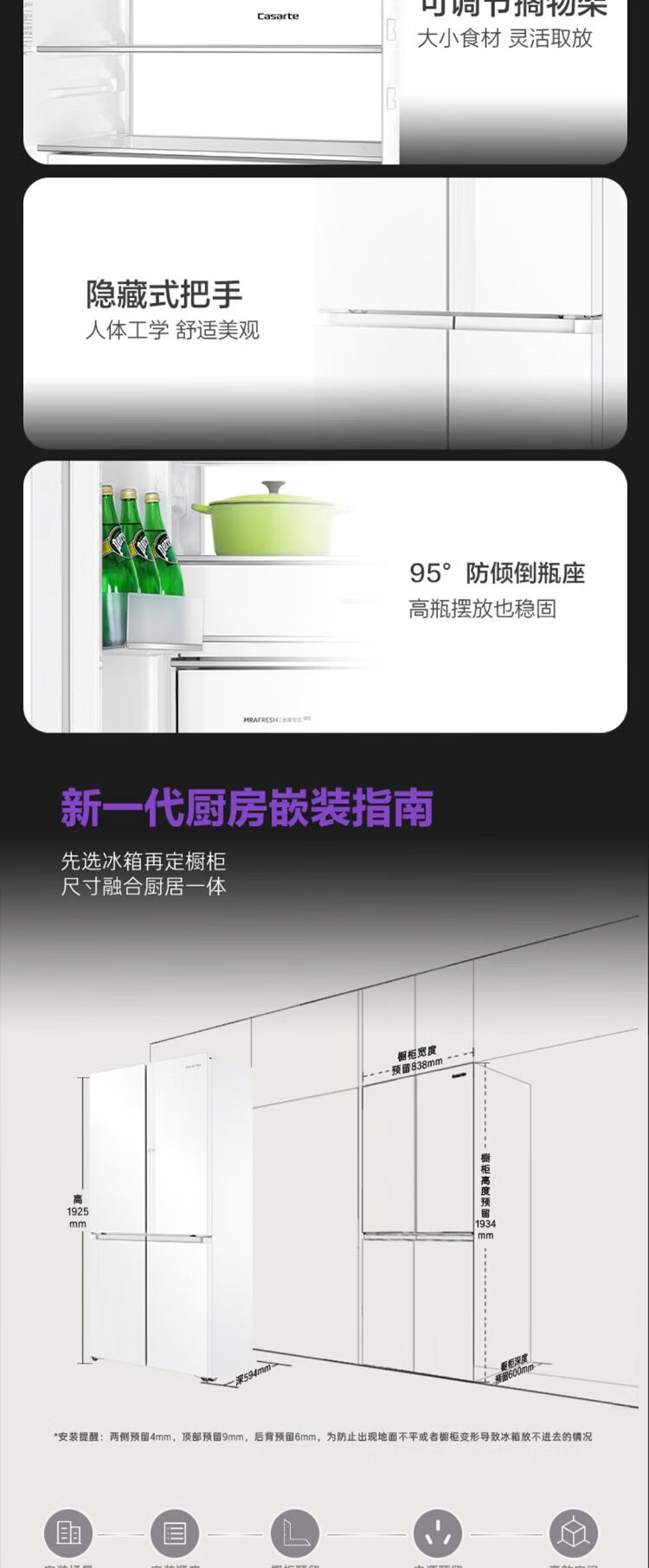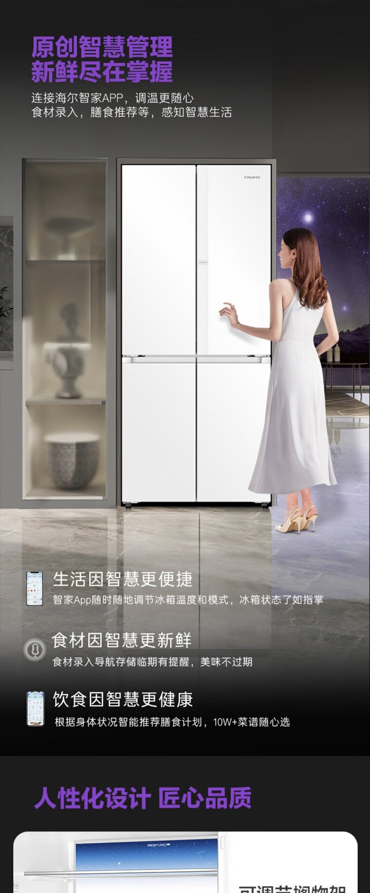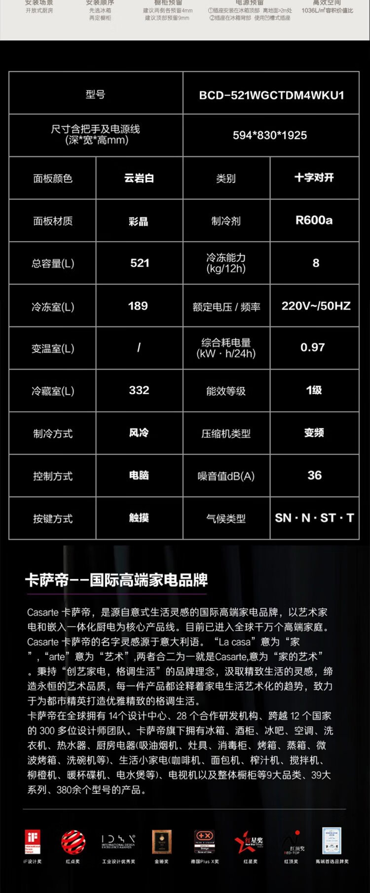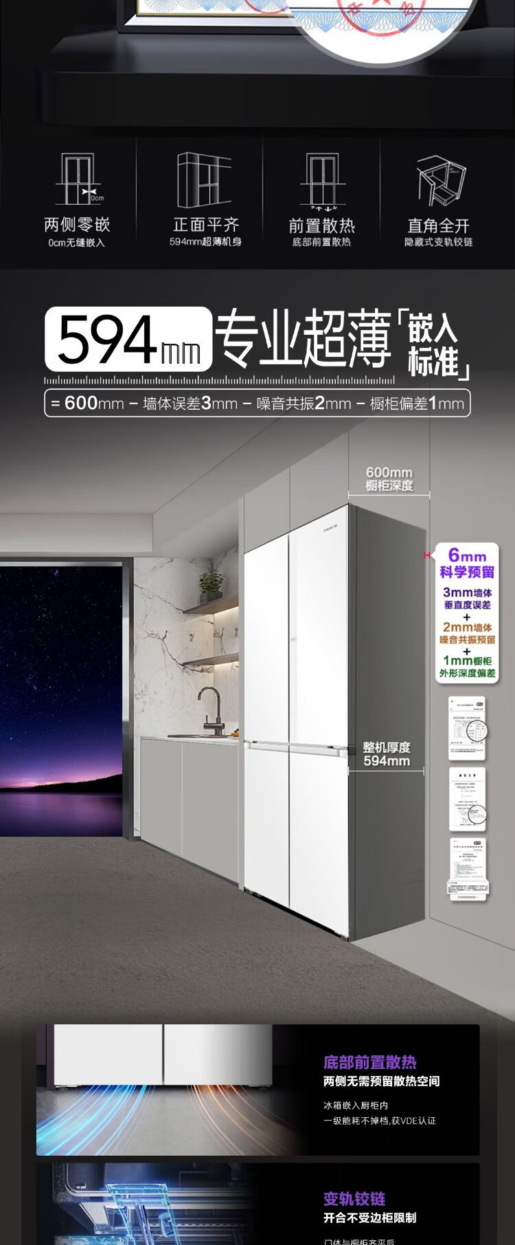 Casarte Languang Refrigerator 521-liter Starry Sky Edition Zero-embedded cross-door household refrigerator 594mm ultra-thin first-class energy-efficiency energy-saving frequency conversion 20% national subsidy