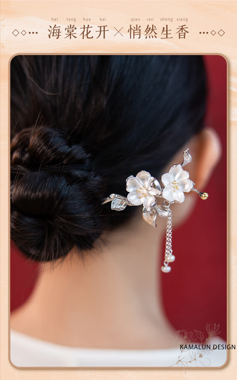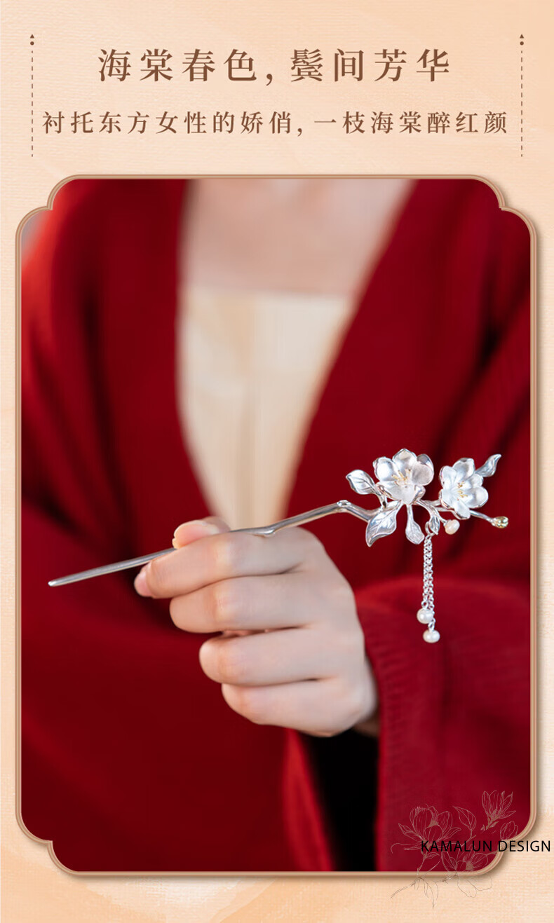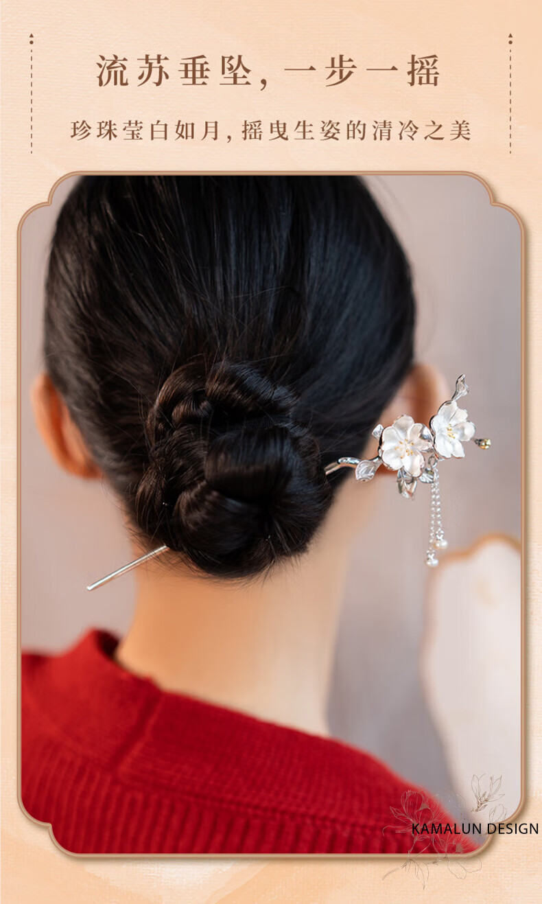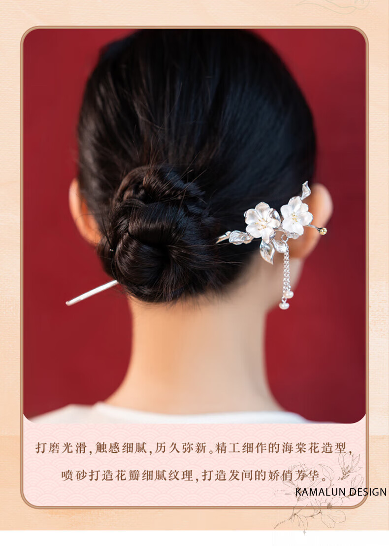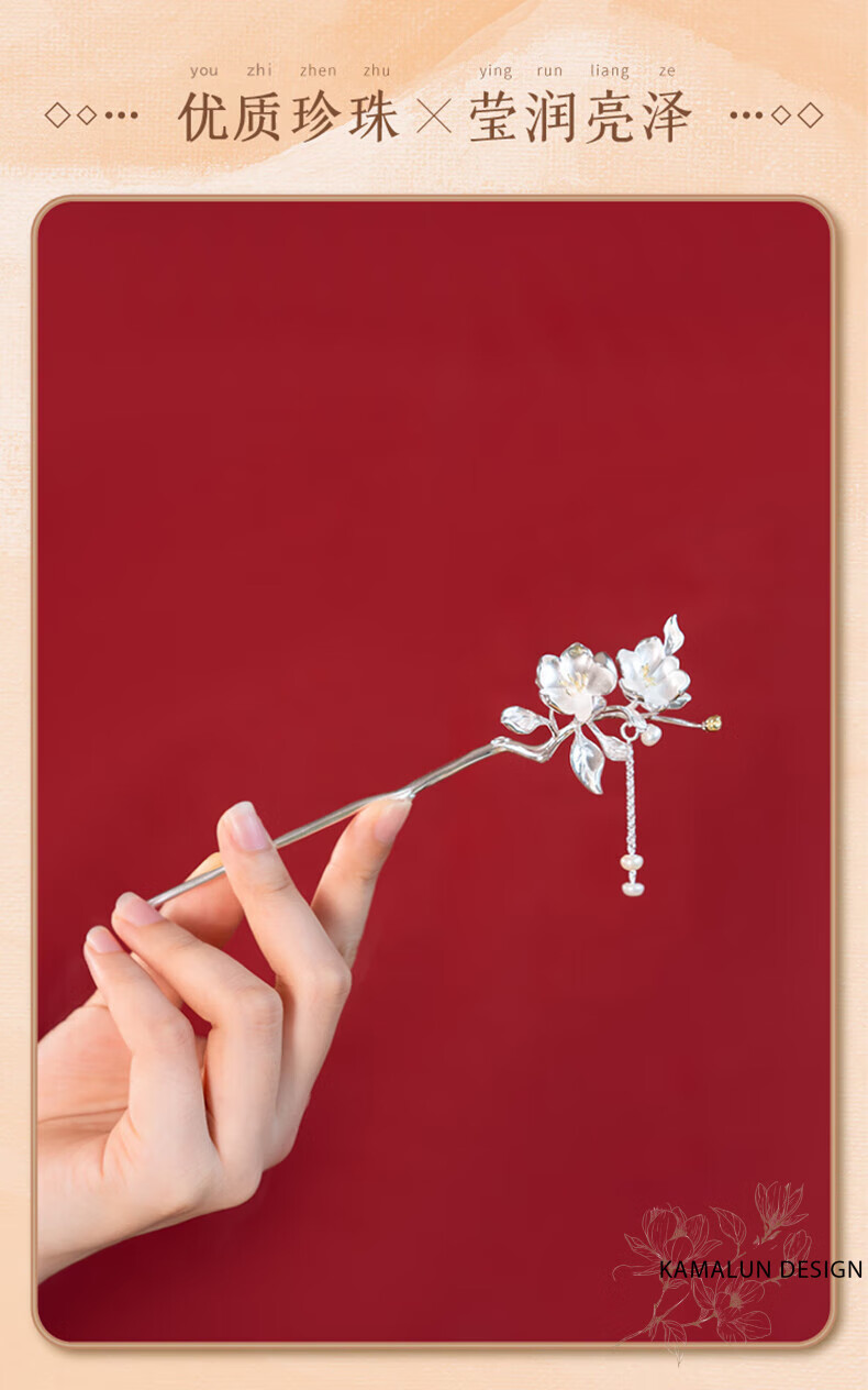Kamalun (KAMALUN) Begonia flower hairpin for women, pearl tassel, rocking hairpin, new Chinese style hairpin, ancient style Hanfu headwear for girlfriend, Begonia hairpin + brand gift box without engraving
