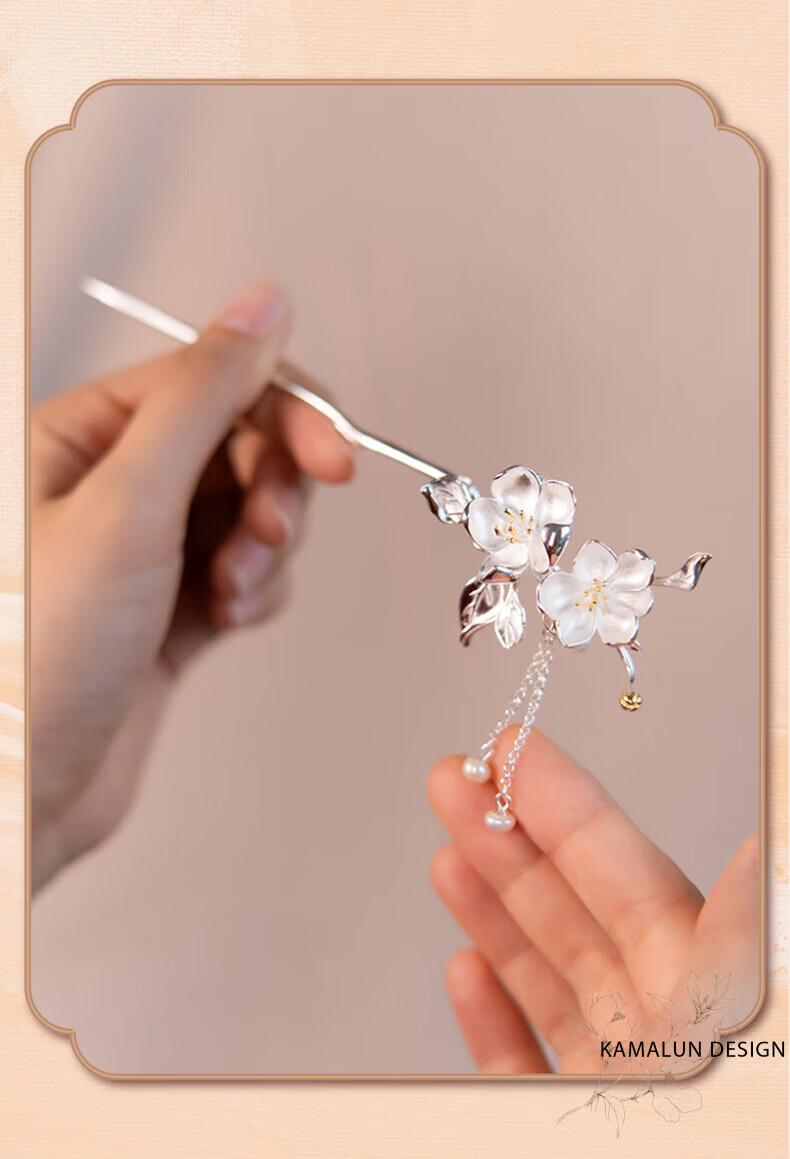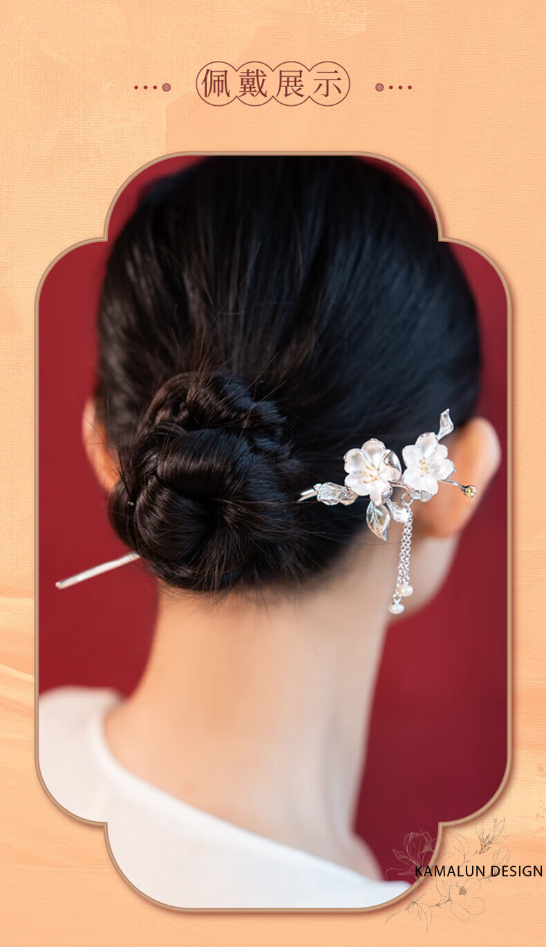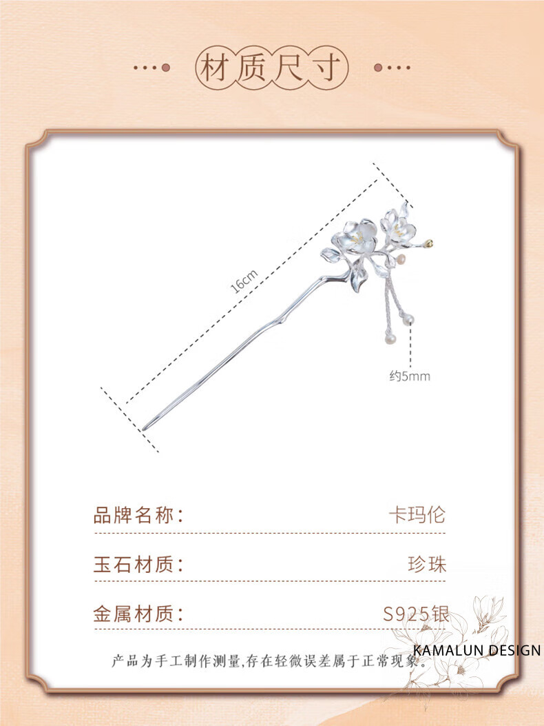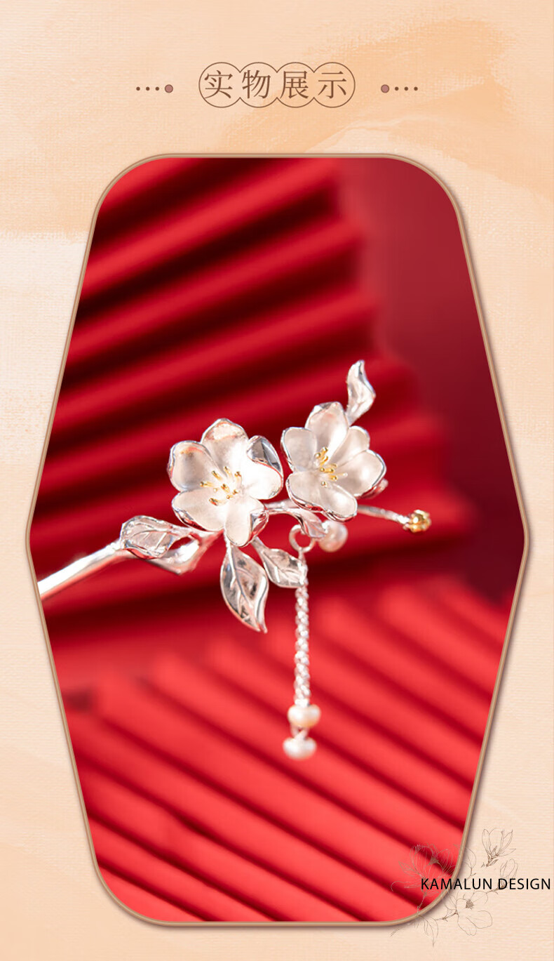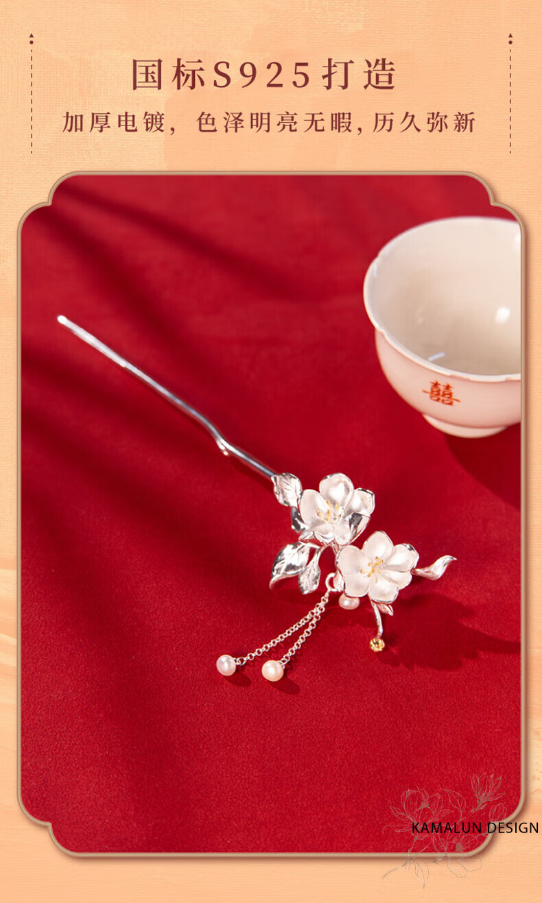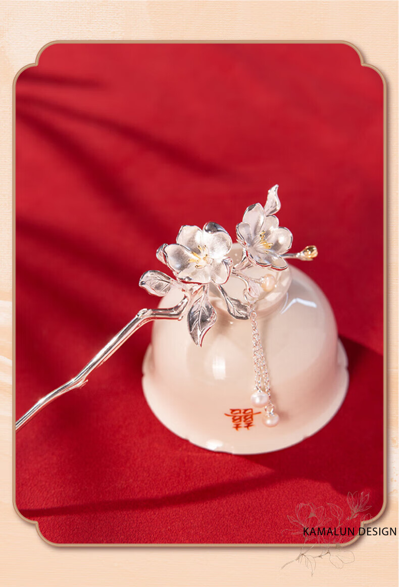 Kamalun (KAMALUN) Begonia flower hairpin for women, pearl tassel, rocking hairpin, new Chinese style hairpin, ancient style Hanfu headwear for girlfriend, Begonia hairpin + brand gift box without engraving