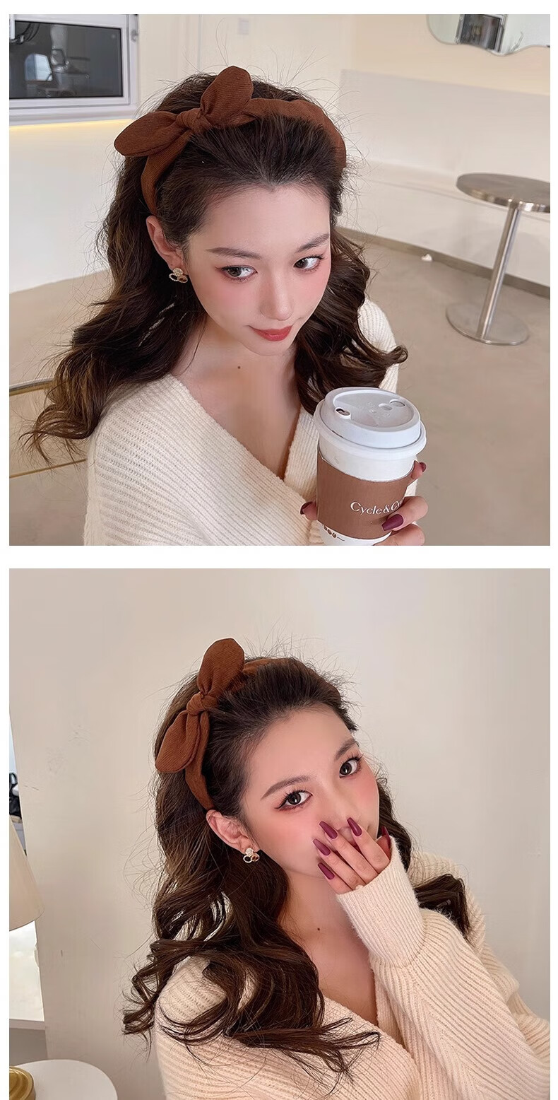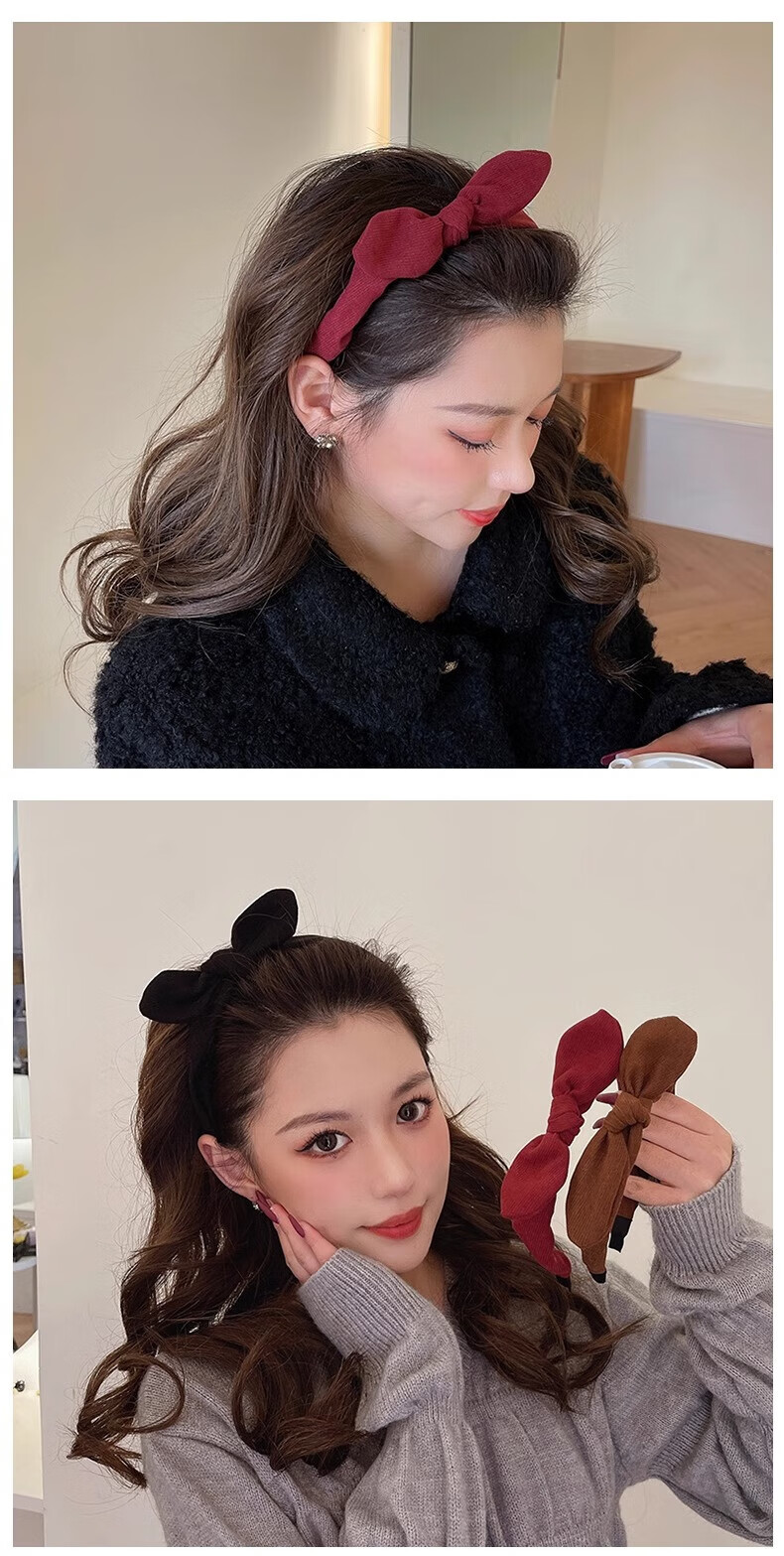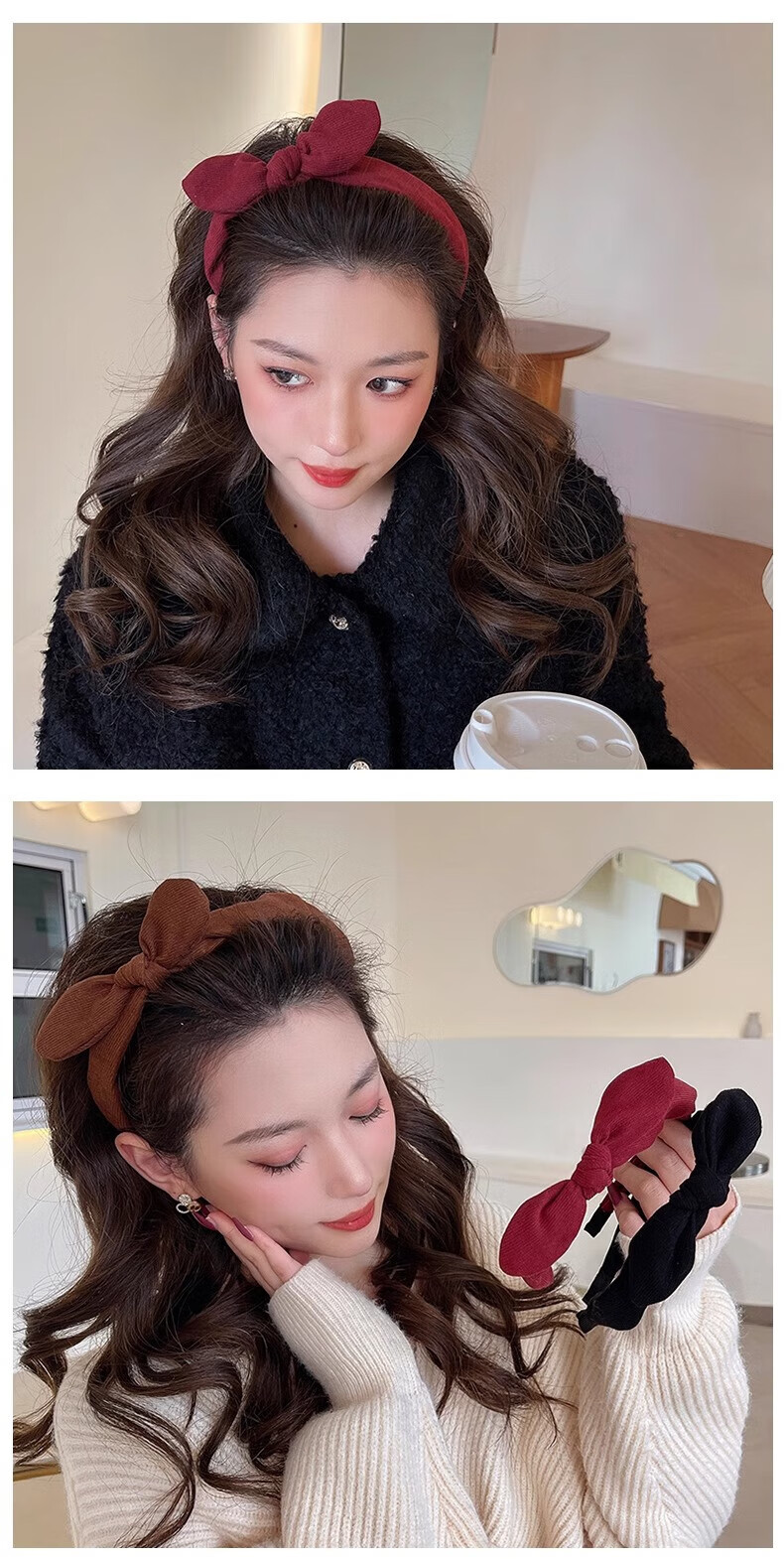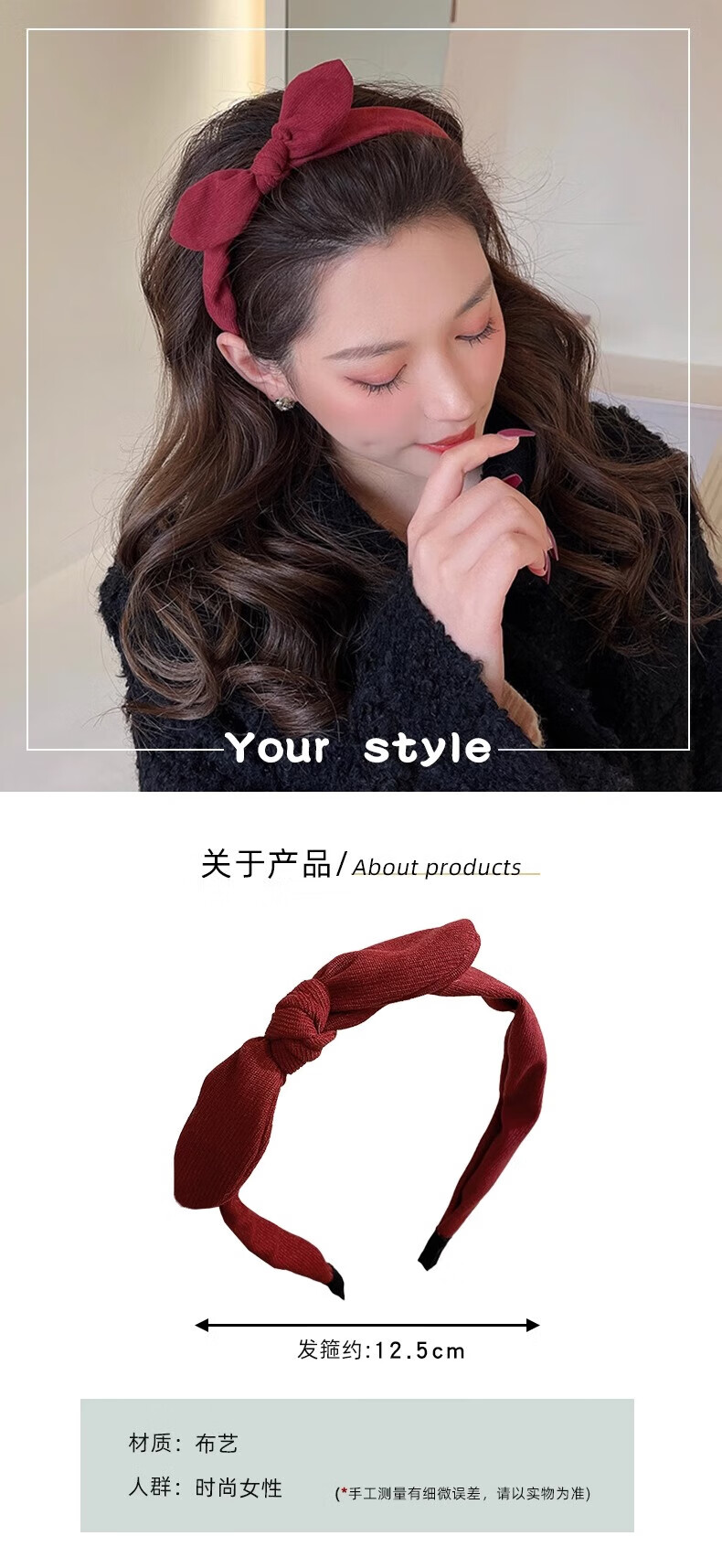 Xiang Wan Cute Elegant Bow Headband Women's Versatile Headwear Outing Crushed Hair Headband Headband Burgundy