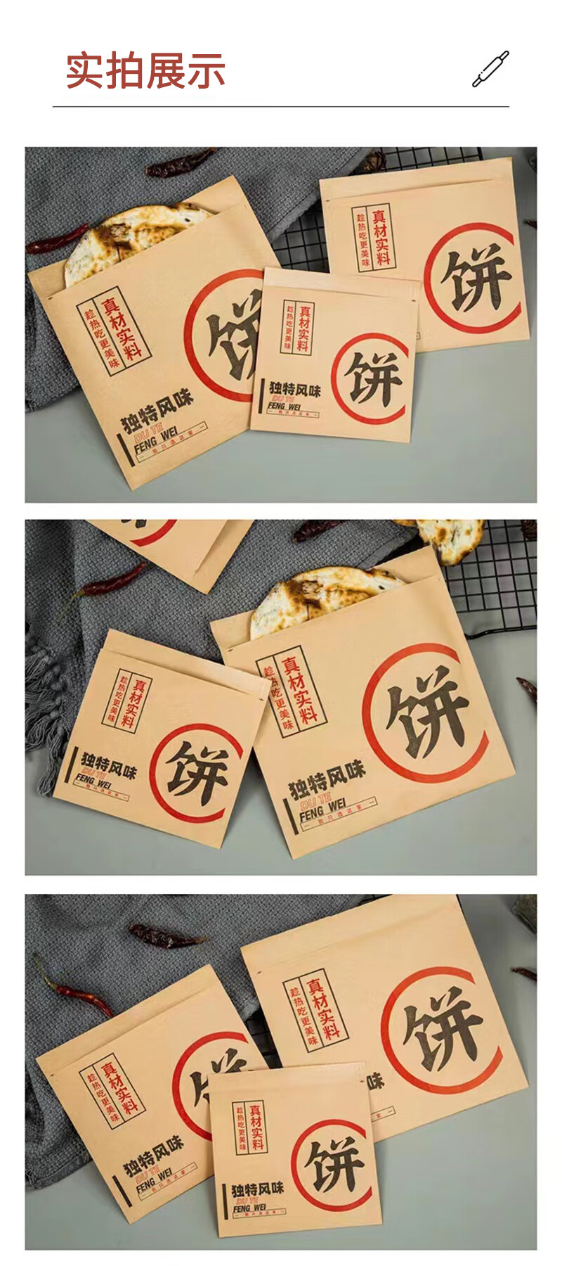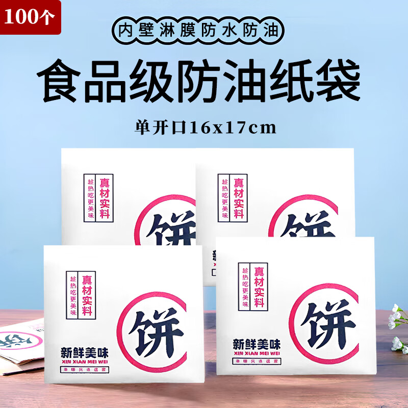 Suican Sauce Pancake Beef Pancake Packaging Bag Pancake Scallion Pancake Packing Bag Meat Pie Kraft Paper Filled Pie Grease-proof Paper Bag Pie Bag Single Opening 16x17cm 100 pieces