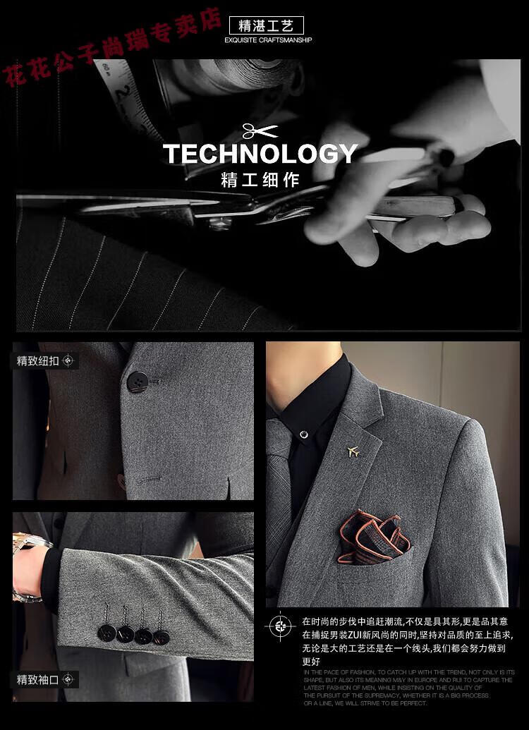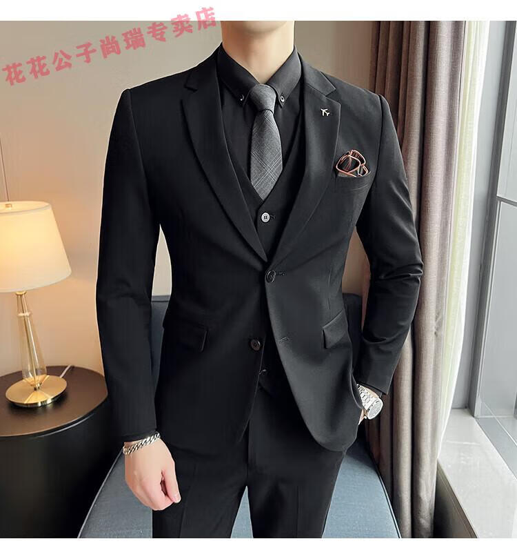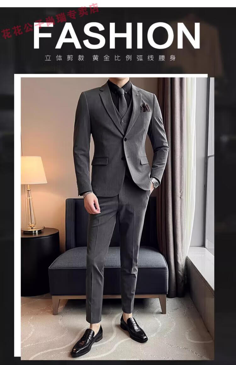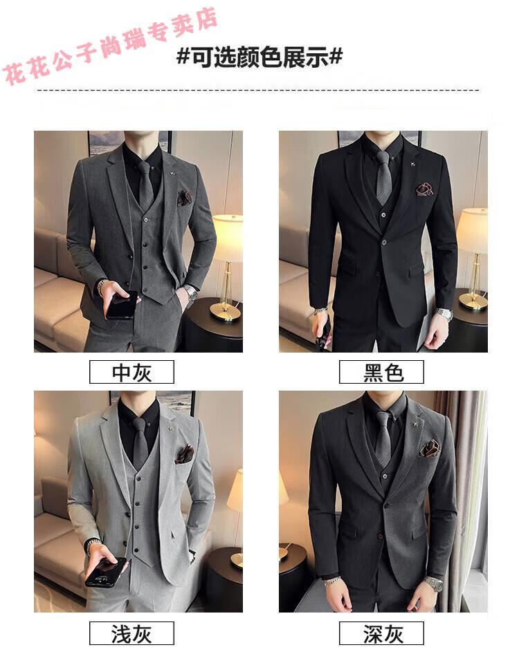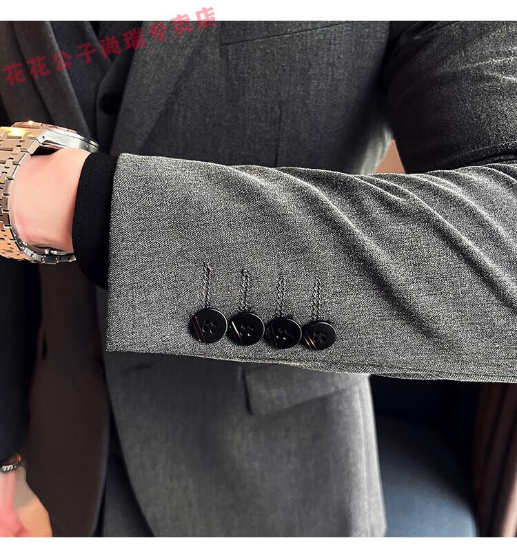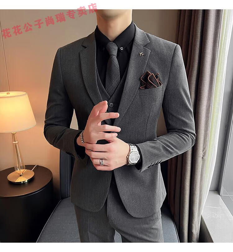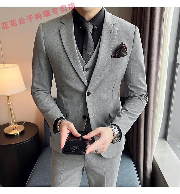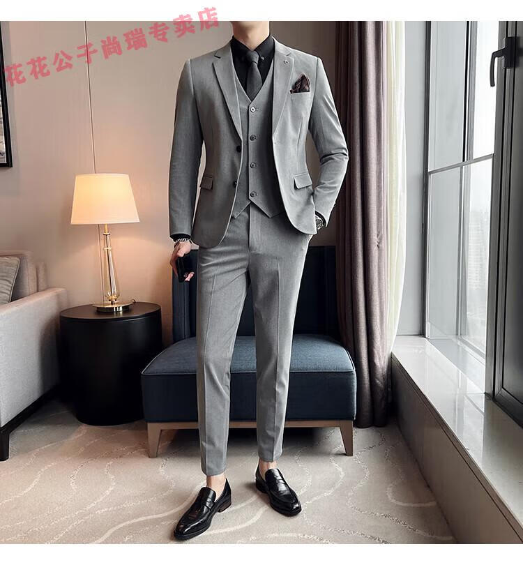 Playboy Suit Men's Business Professional Formal Wear Groom Wedding Dress Casual European and American British Style Slim Suit Men's Two-piece Set - Medium Gray Suit + Trousers L Size (Suitable for 110-120 Jin Jin equals 0.5 kg)