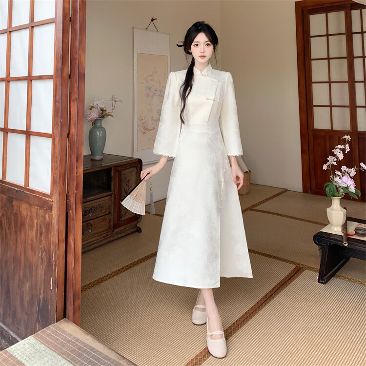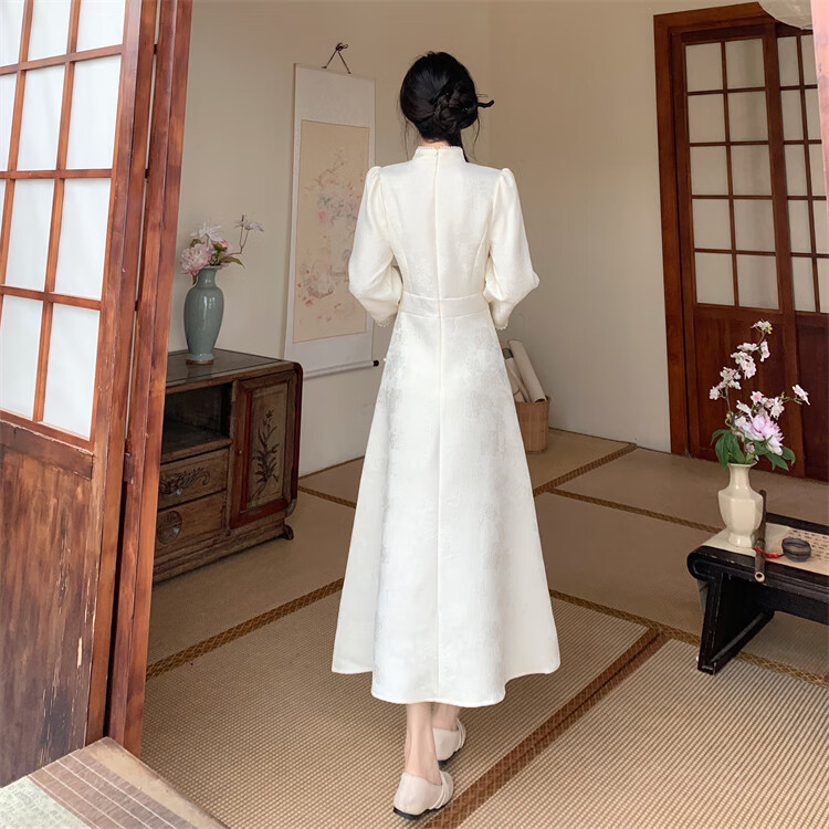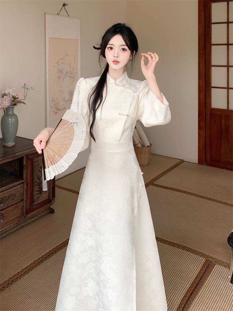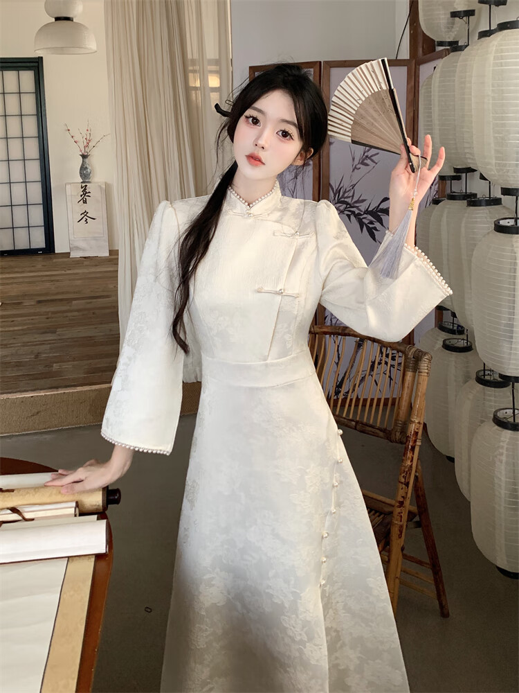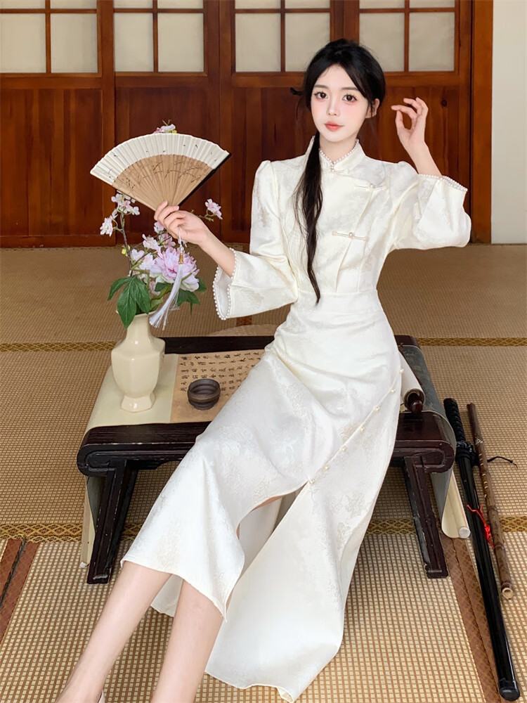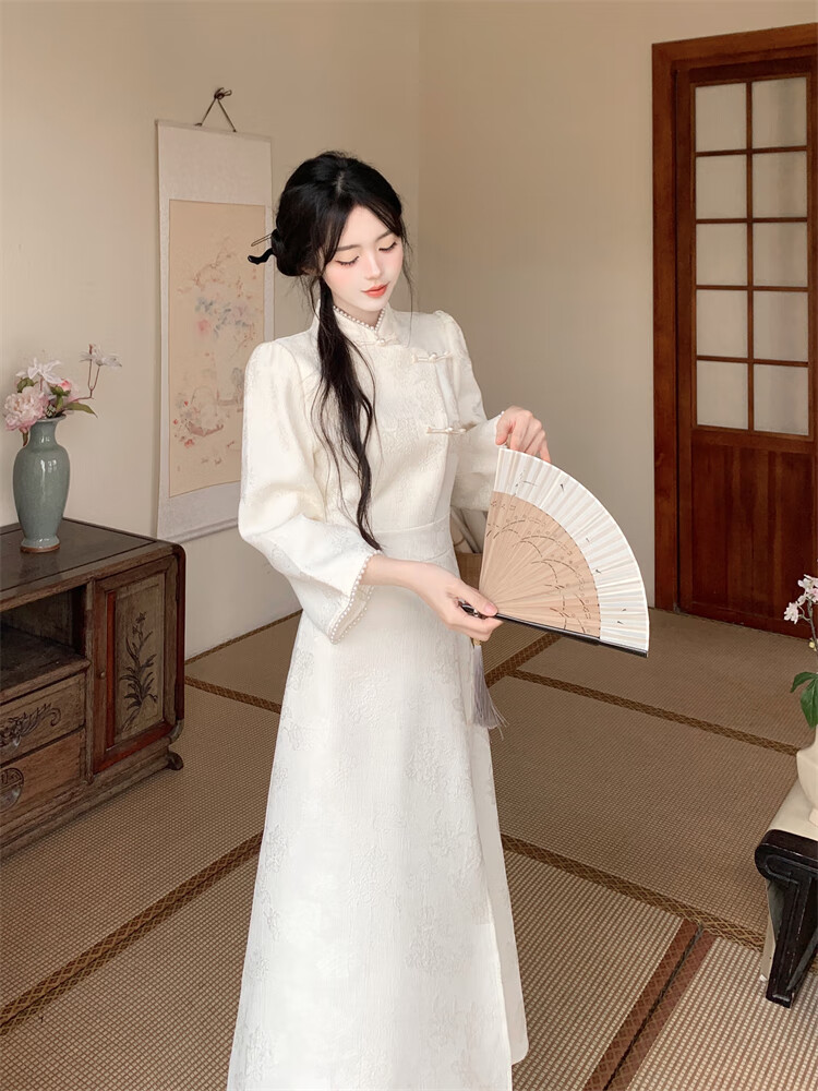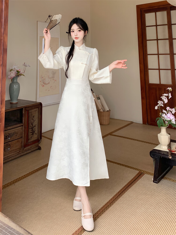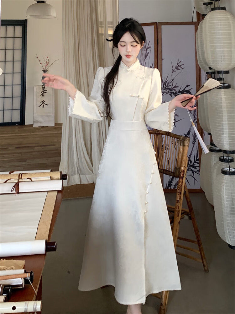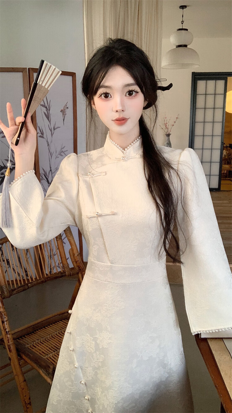Zhi Li Guan Improved Flag New Chinese Style Light National Style Long Sleeve Dress Women's 2024 Autumn and Winter New Young Temperament Robe Daily Wear Pink Large Size XL