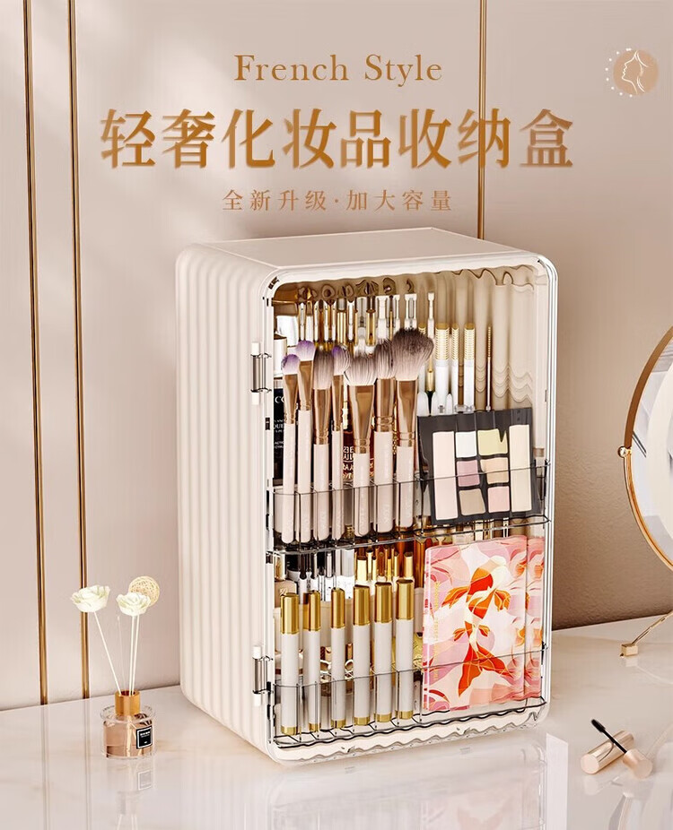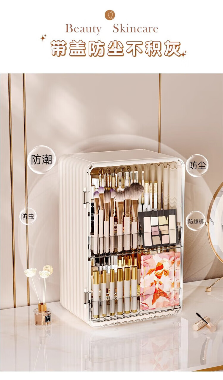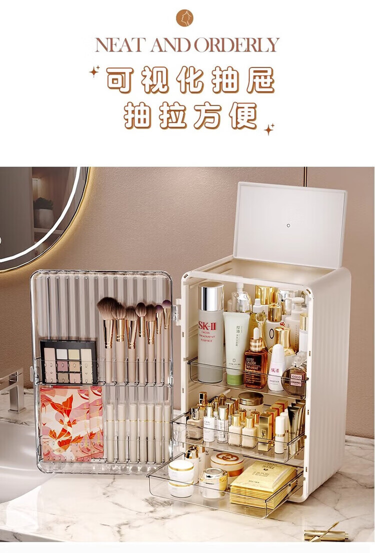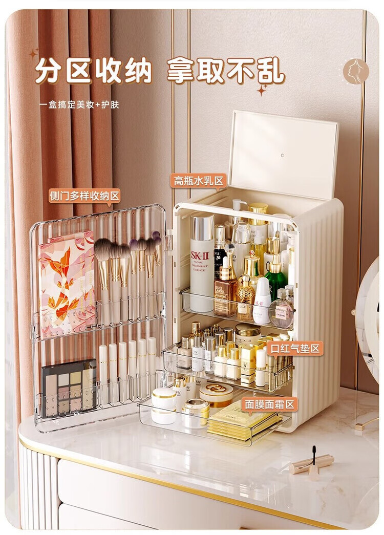 Yunya cosmetics storage box dustproof dressing table skin care products transparent storage box desktop storage rack large capacity cosmetic box pearl white - large capacity transparent panel