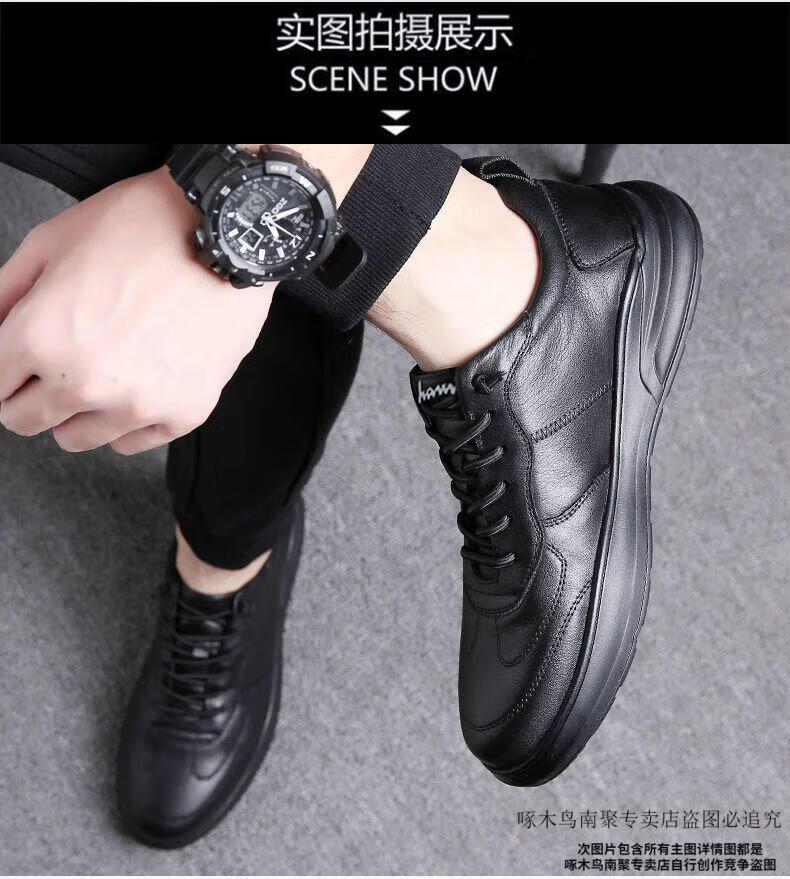 Woodpecker Leather Shoes for Men Spring and Summer 2025 New Breathable Real Soft Leather Sports and Casual Shoes Trendy Middle-aged and Elderly Dad Work Shoes Black 42 Standard Sports Shoe Size
