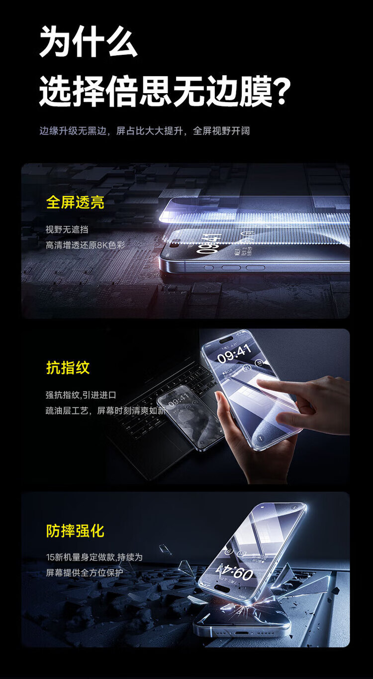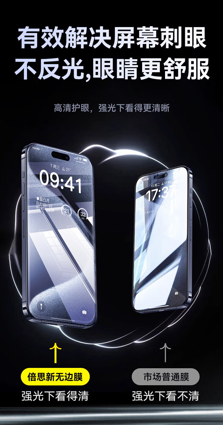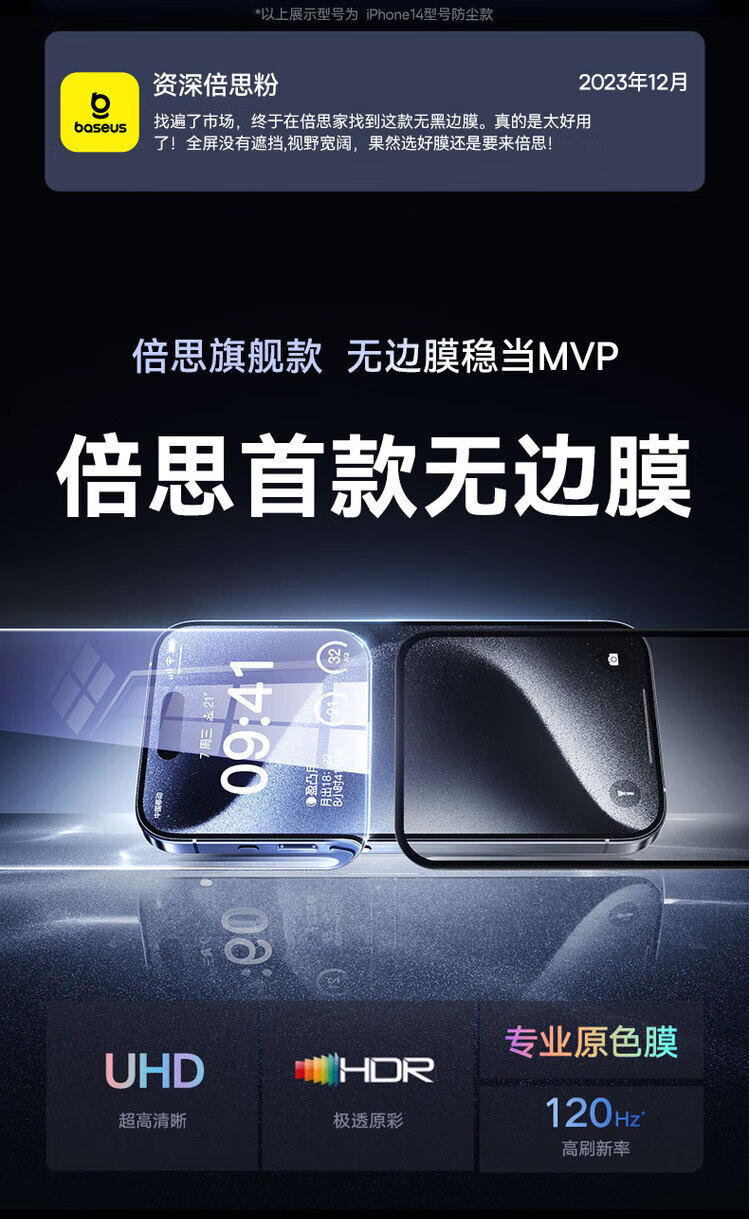BASEUS suitable for promax tempered film Apple 14pro mobile phone film new 1312 protective film p ultra-clear dust-proof earpiece dust-proof net original screen HD丨 iPhone15
