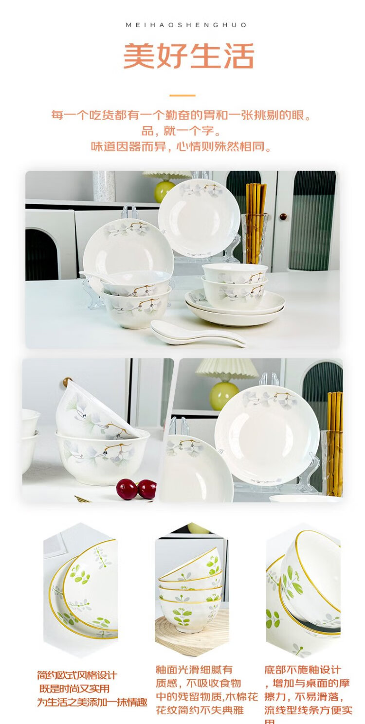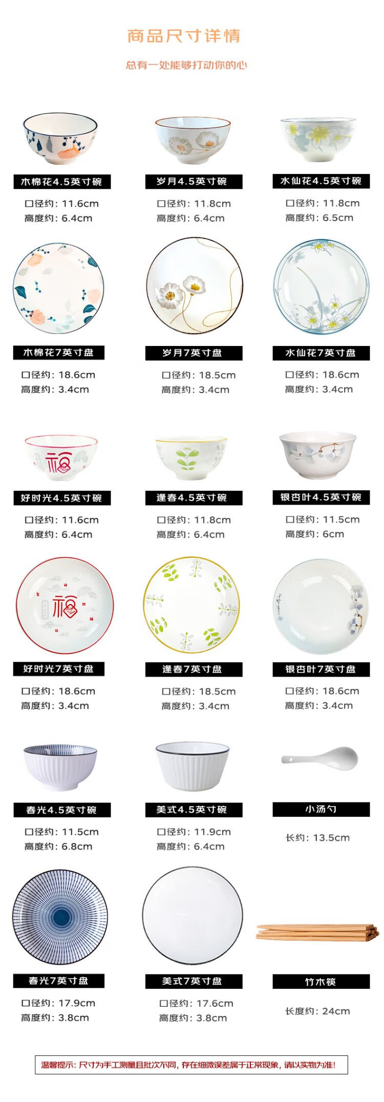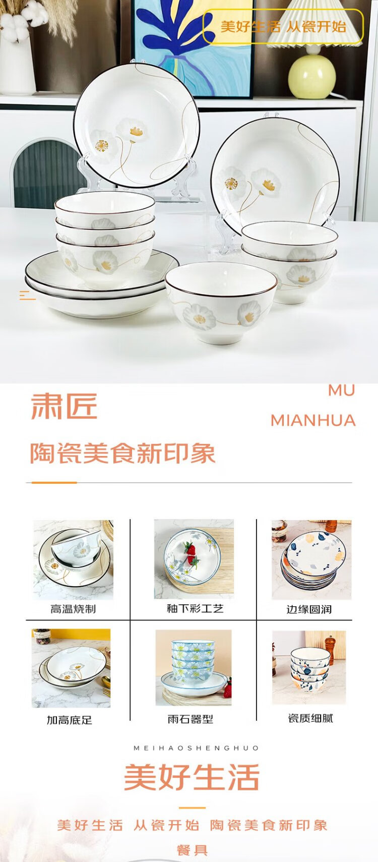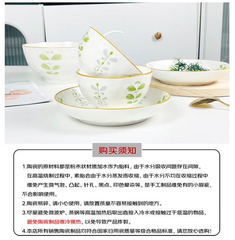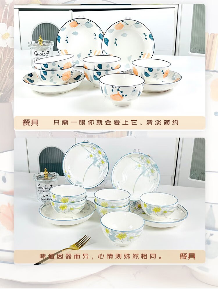 Sujiang tableware set household bowls and plates underglaze color plates and bowls internet celebrity plates microwave suitable tableware set Suijinghao (6 bowls and 4 plates) 10-piece set