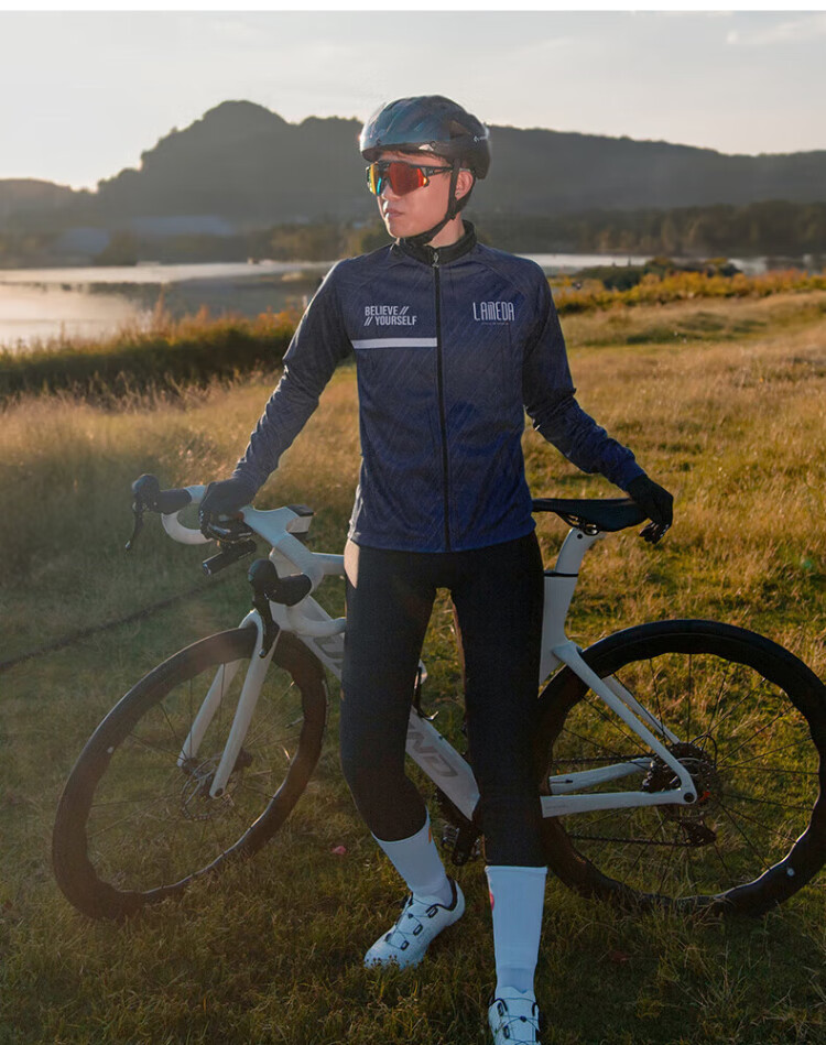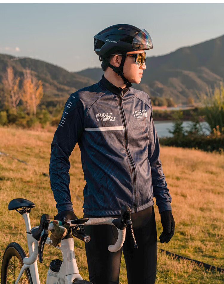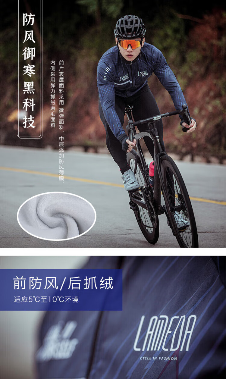 LAMEDA 5~10 Autumn and Winter Cycling Clothes Men's Windproof Fleece Long-Sleeved Suit Road Cycling Jacket Men's Jacket Quiet Quiet XL
