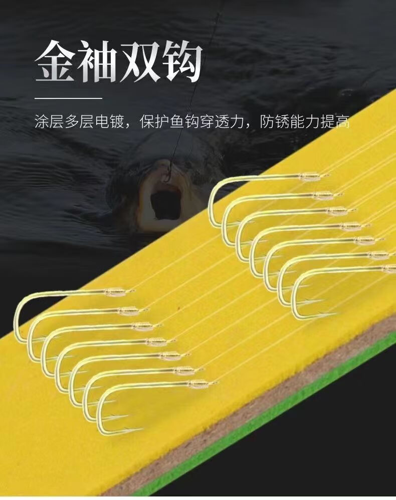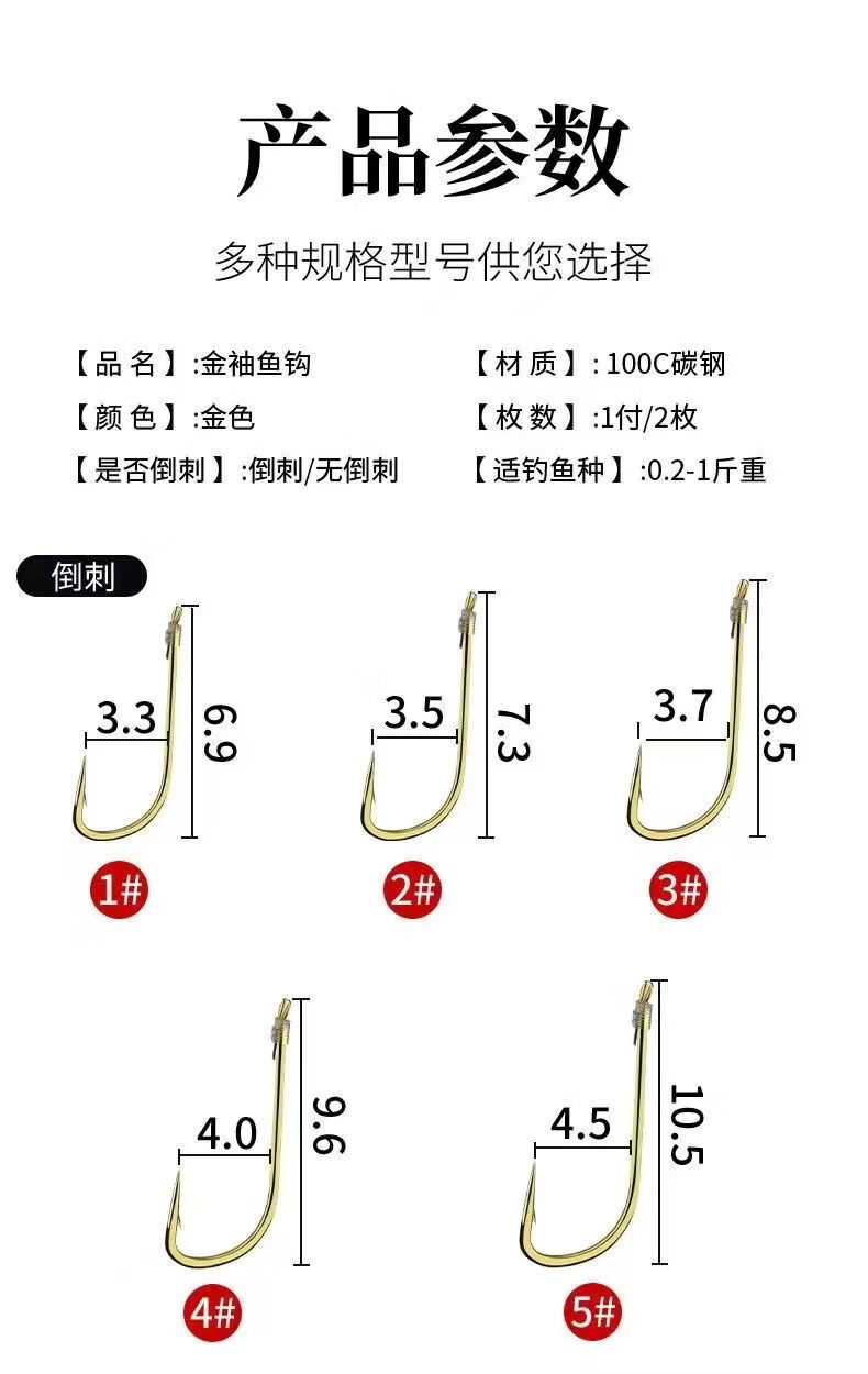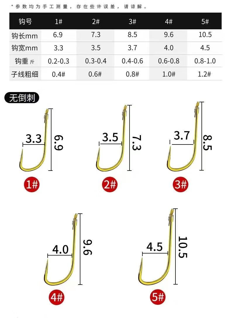 Fish hooks are tied with sub-threads and double hooks. Finished set of fishing sleeve hooks, complete set of Iseni Izu gold sleeve fishing gear, crucian carp hook, gold sleeves with barbs, 1 plate, 10 pieces, No. 4