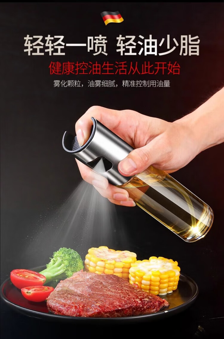 WCZ German high-end atomized oil spray bottle air fryer oil spray bottle kitchen household edible oil glass pressurized spray straight oil spray bottle with small funnel 100ml