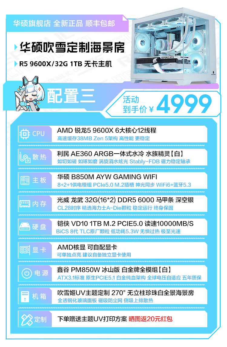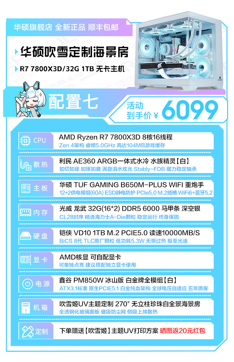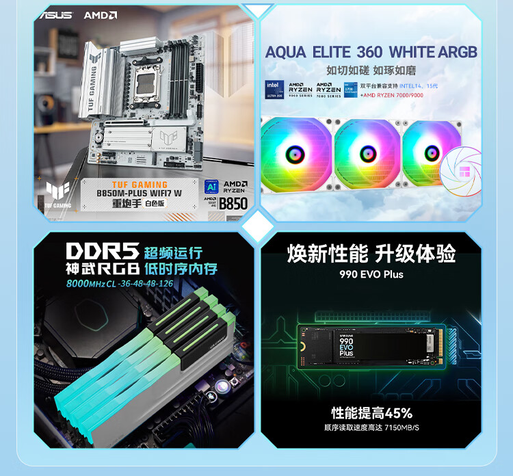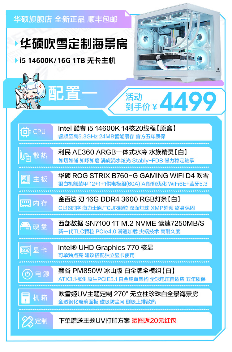 ASUS i5 14600K/U7 265K/AMD Ryzen 7800X3D/9800X3D cardless barebone system over-machine assembly computer DIY white desktop complete machine AI game console i5 14600K+ card-less over-machine configuration one