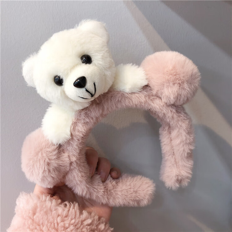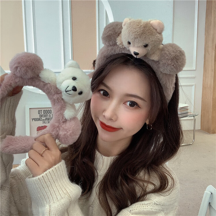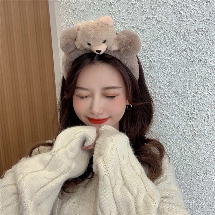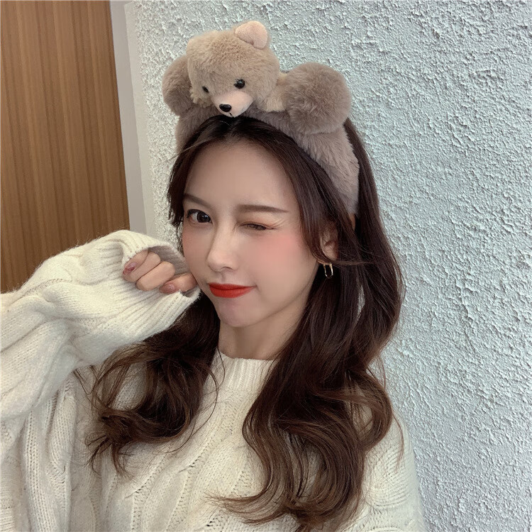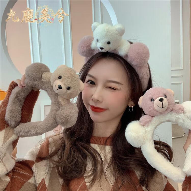 Jiulu Meixi Korean internet celebrity cute hair accessories plush bear face wash headband female hair press headband hair clip simple hair bundle headband white bear