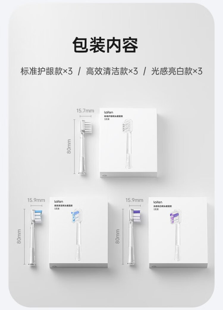Laifen sweeping vibration electric toothbrush brush head new cushioning brush head (ABS+TPU material) 6 pieces cushioning cleaning (available for 18 months)