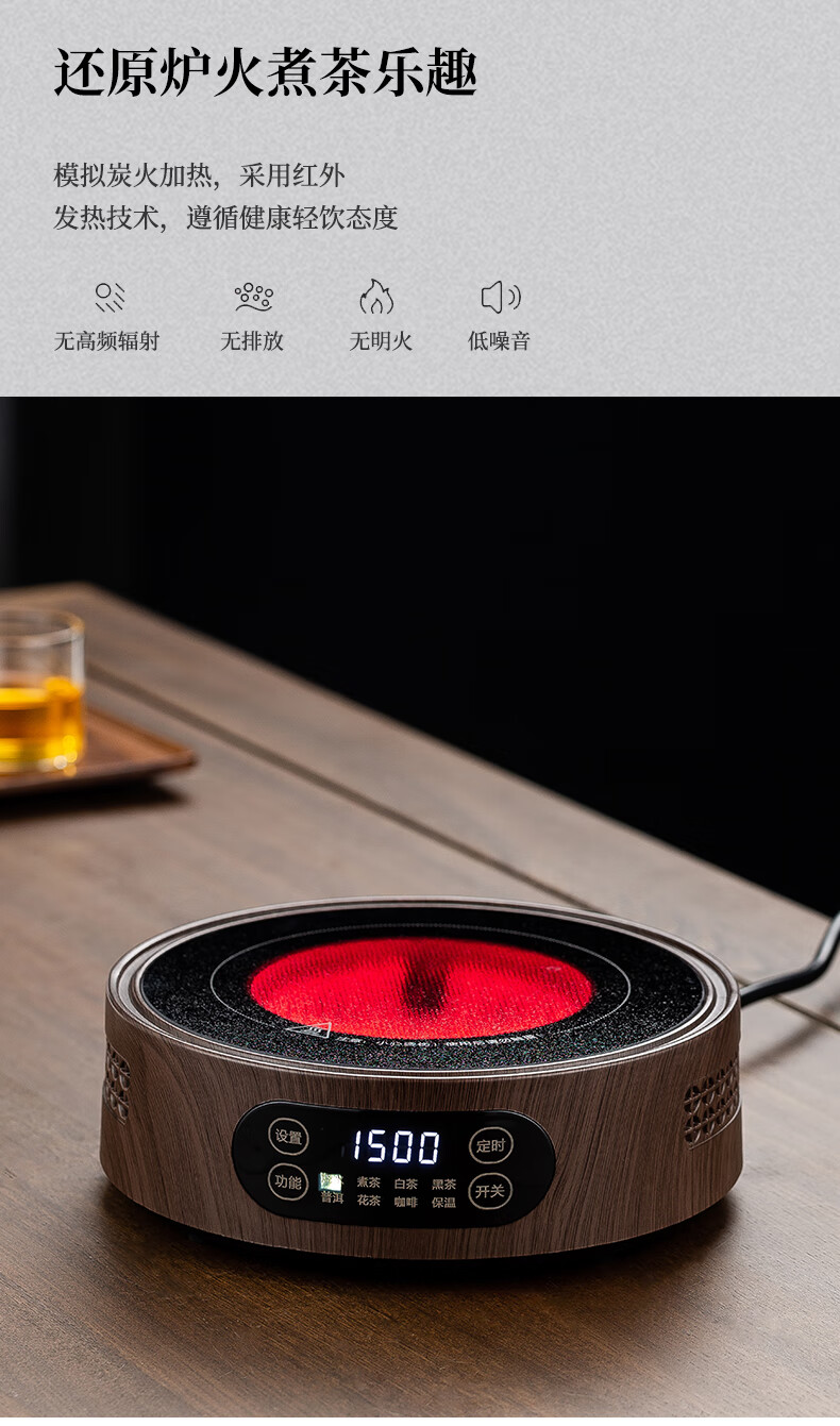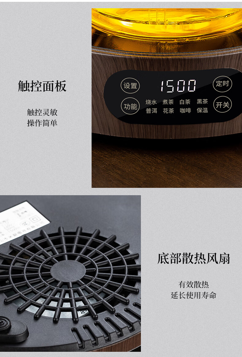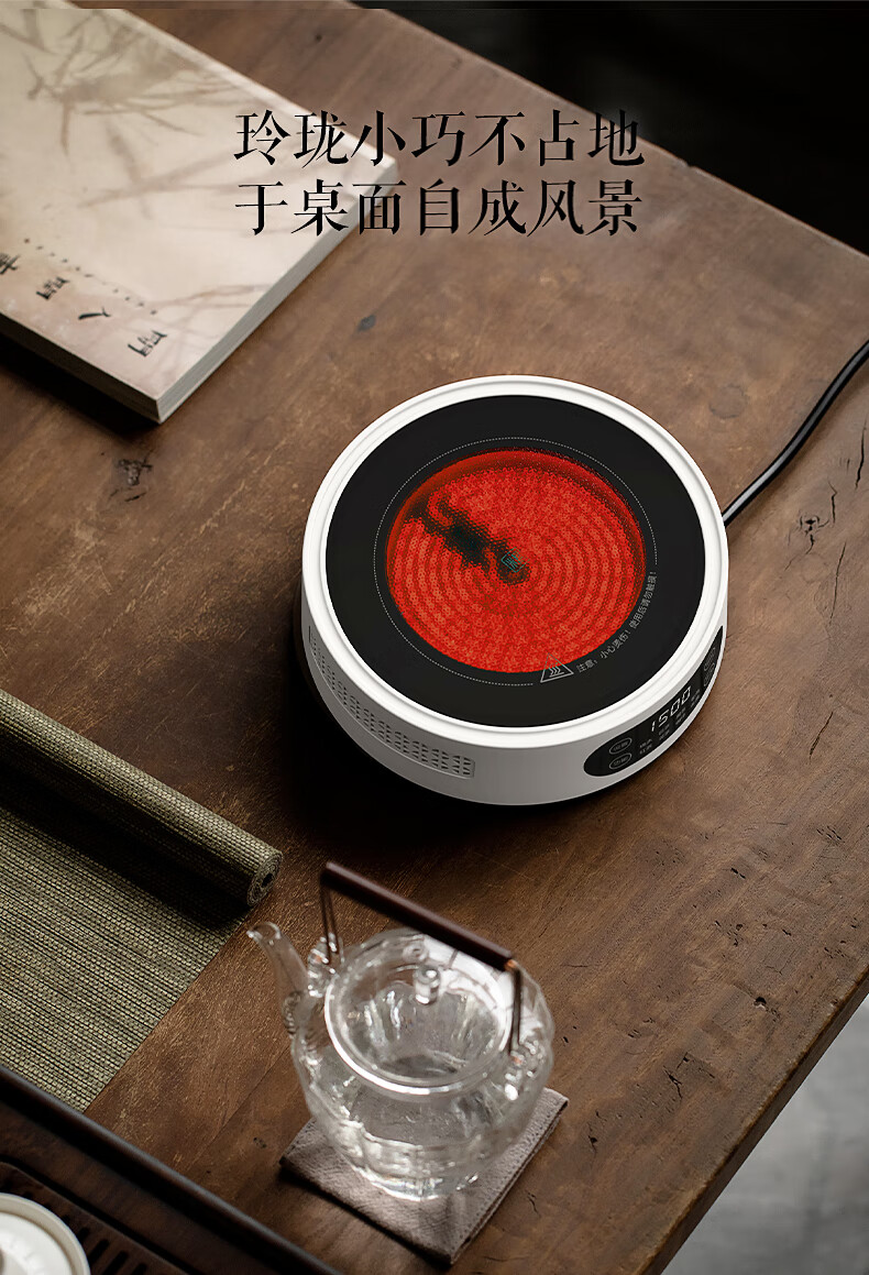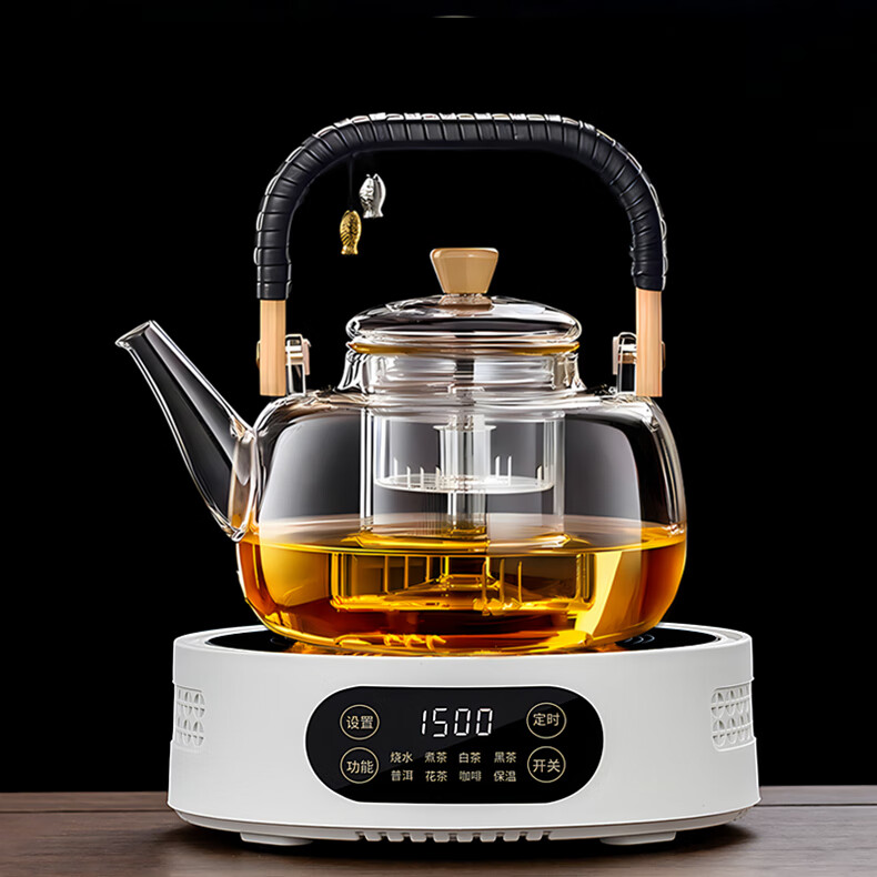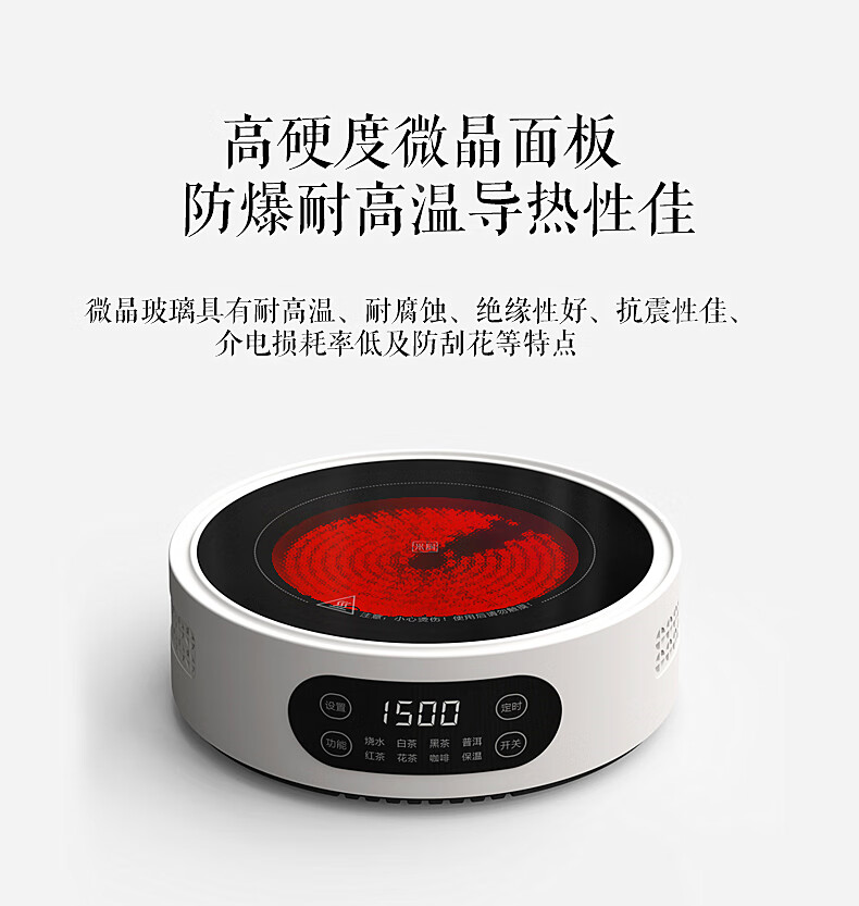 Yajies new electric ceramic stove tea stove household small multi-functional tea boiler glass boiling water teapot tea set 1500W V15 digital display white electric ceramic stove