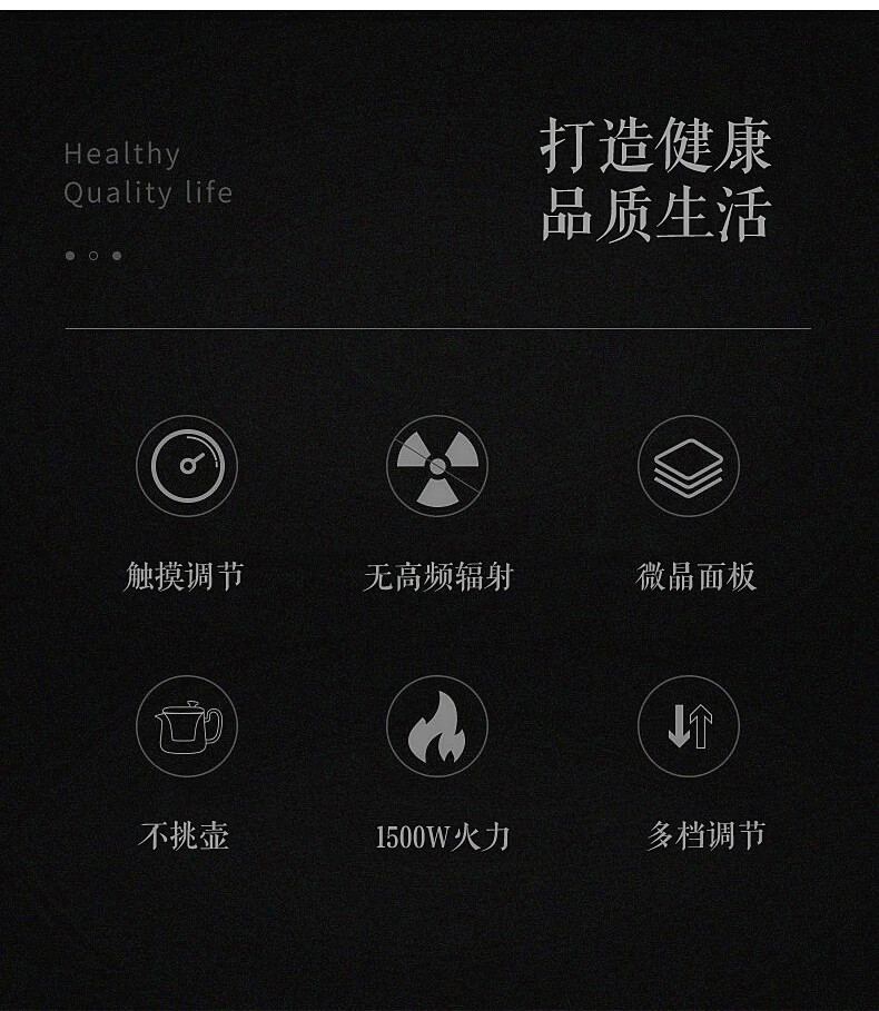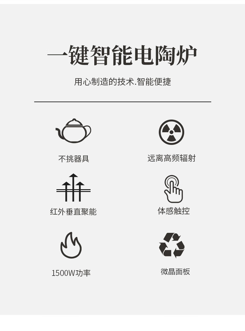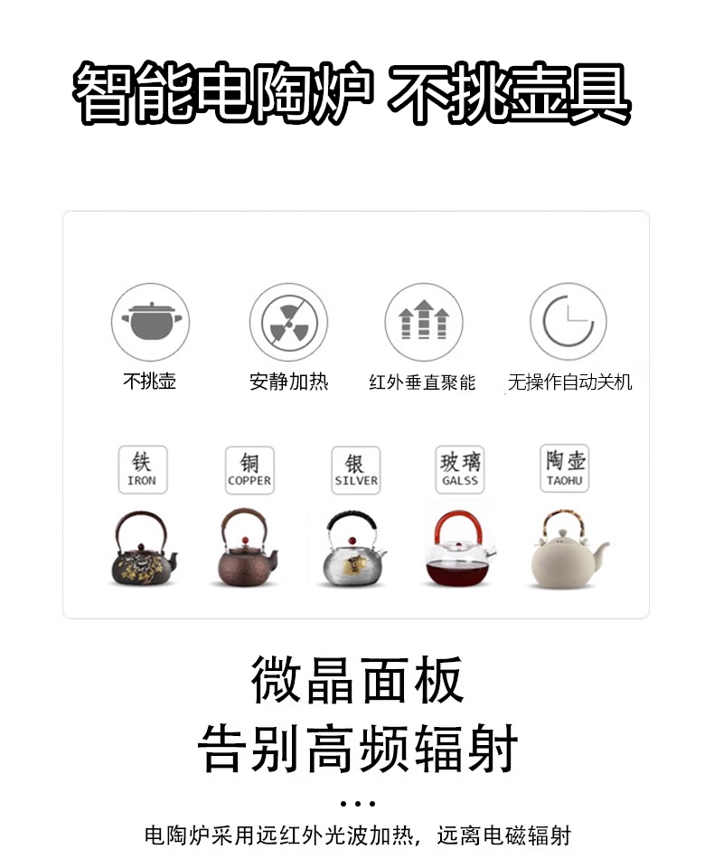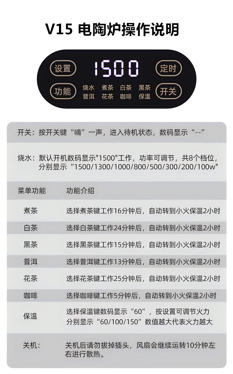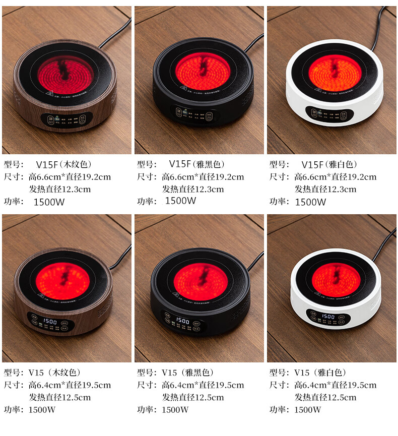 Yajies new electric ceramic stove tea stove household small multi-functional tea boiler glass boiling water teapot tea set 1500W V15 digital display white electric ceramic stove