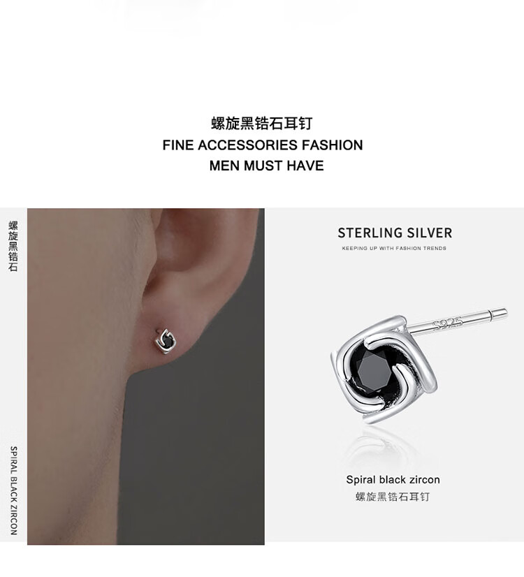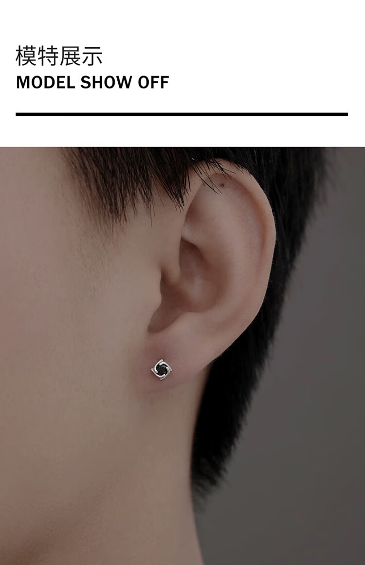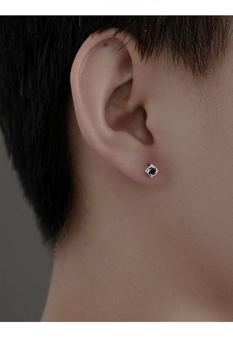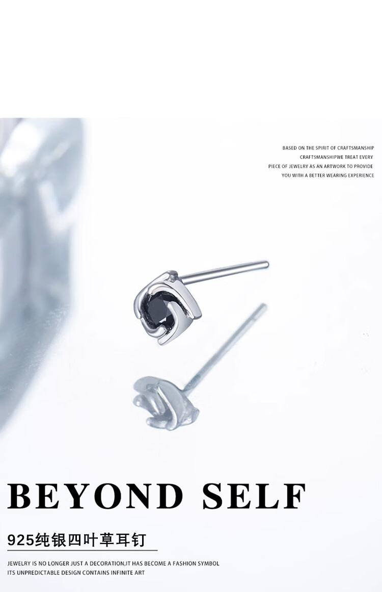 Love Under the Moon S925 silver men's earrings personalized four-leaf clover earrings men's niche simple high-end birthday gift for boyfriend 925 silver four-leaf clover earrings single