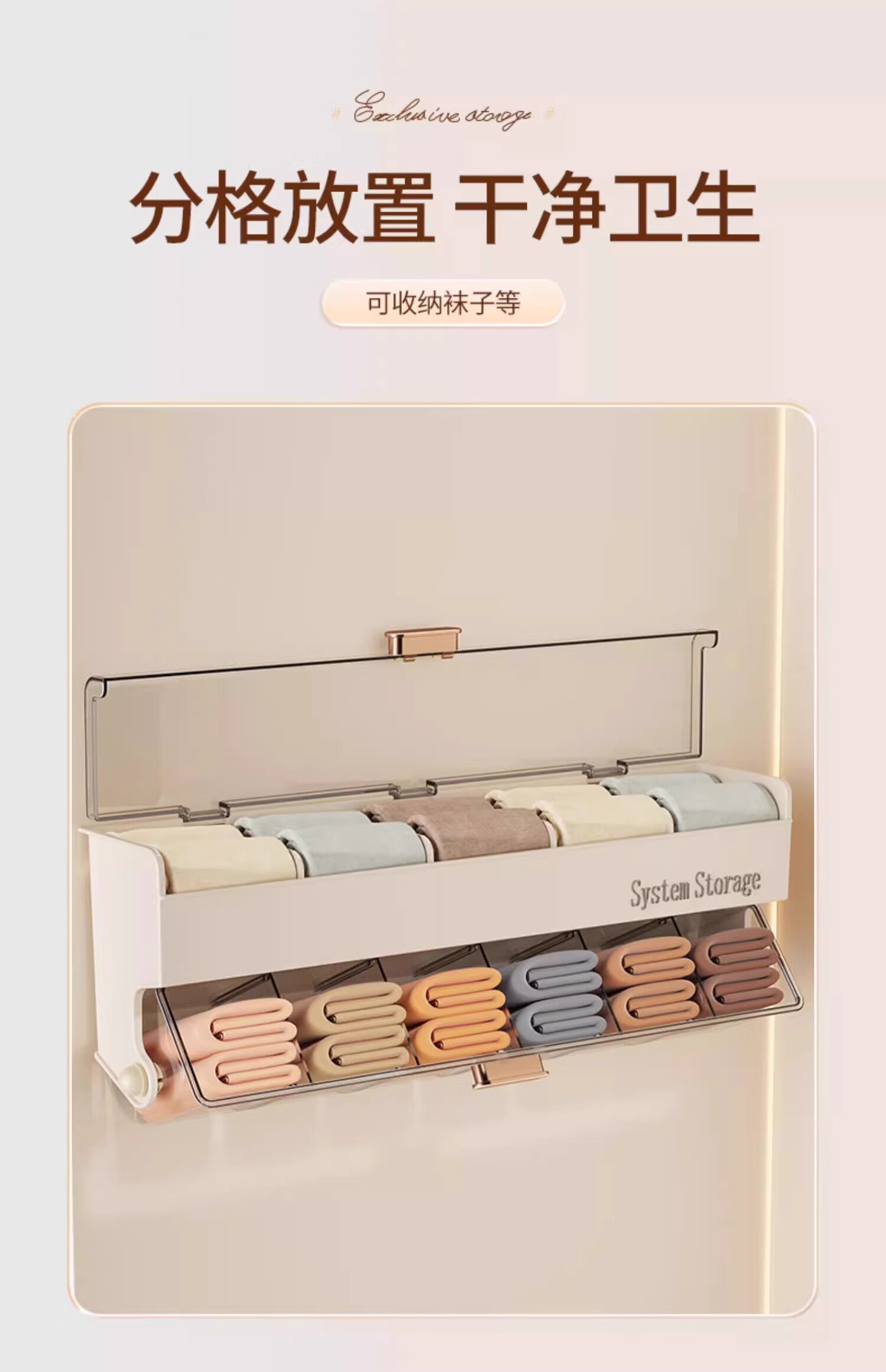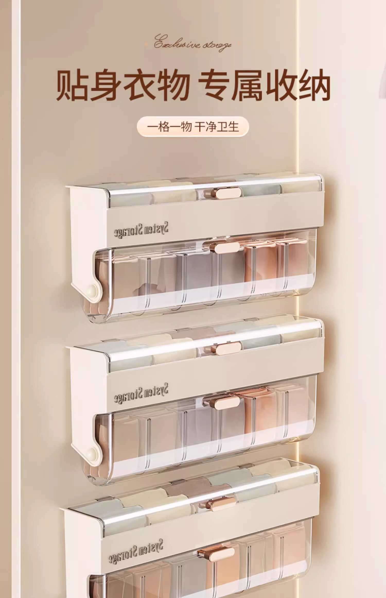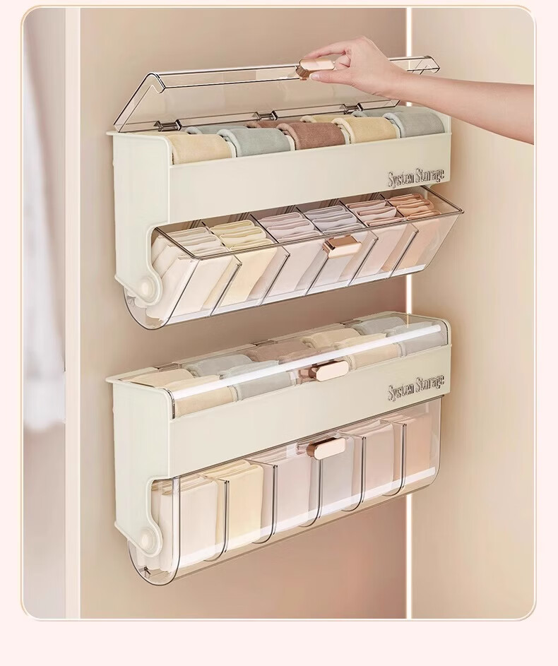 Bonnie Meijia wall-mounted underwear storage box, transparent lidded sock partition organizer, dormitory three-in-one storage artifact, 1 pack - cream color, covered and placed in compartments, buy with confidence (free reissue if damaged)