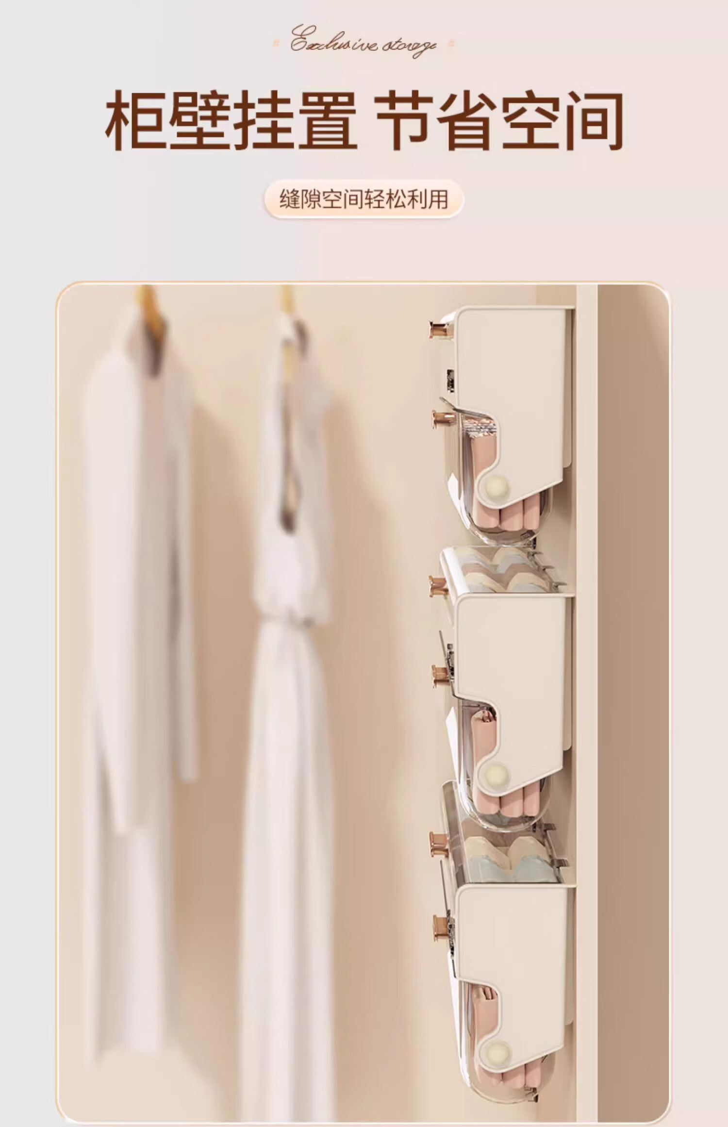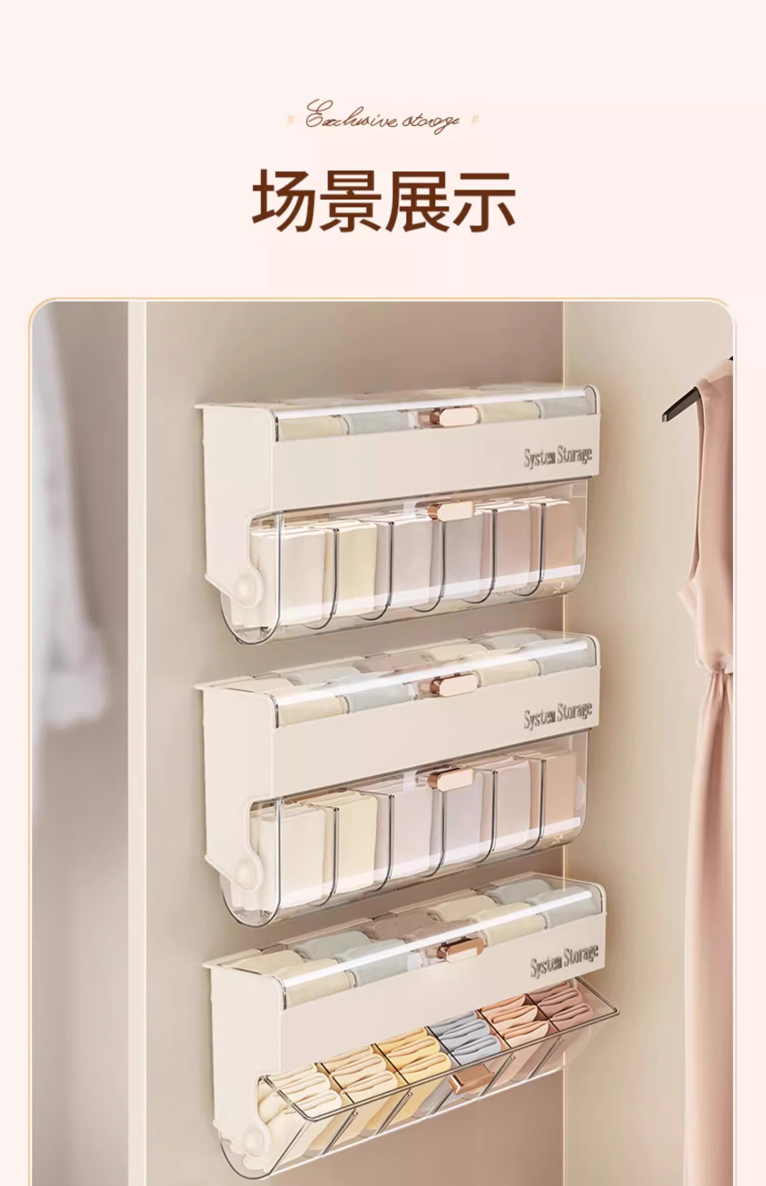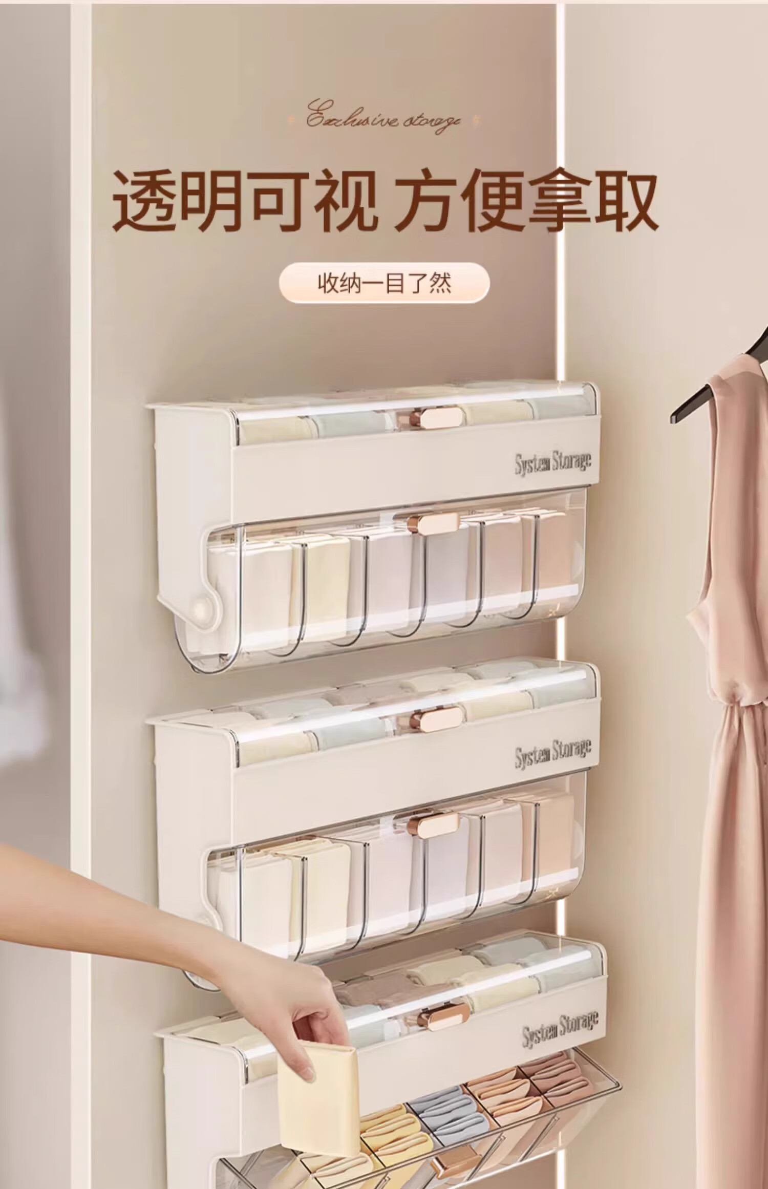 Bonnie Meijia wall-mounted underwear storage box, transparent lidded sock partition organizer, dormitory three-in-one storage artifact, 1 pack - cream color, covered and placed in compartments, buy with confidence (free reissue if damaged)