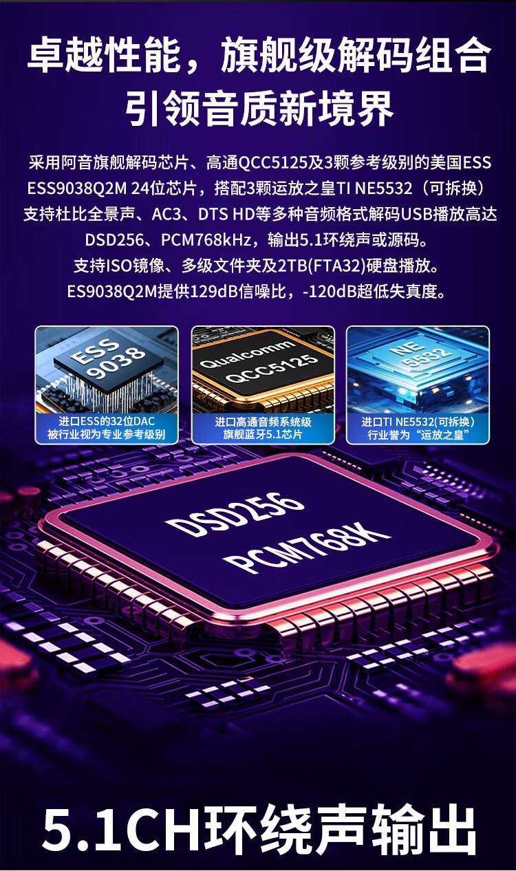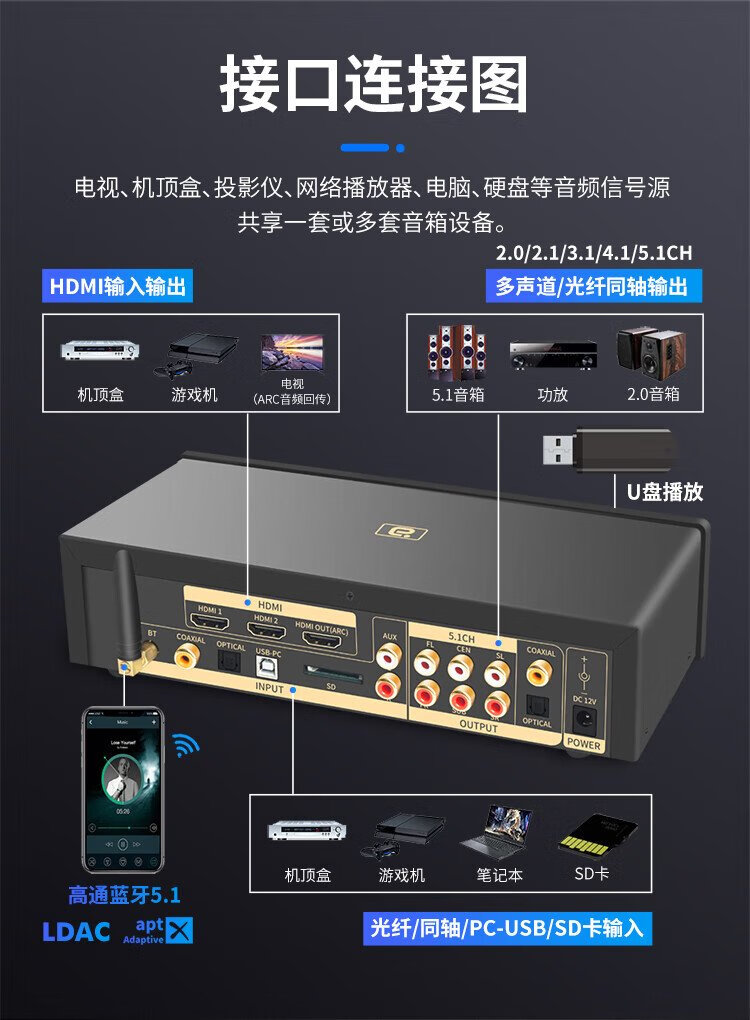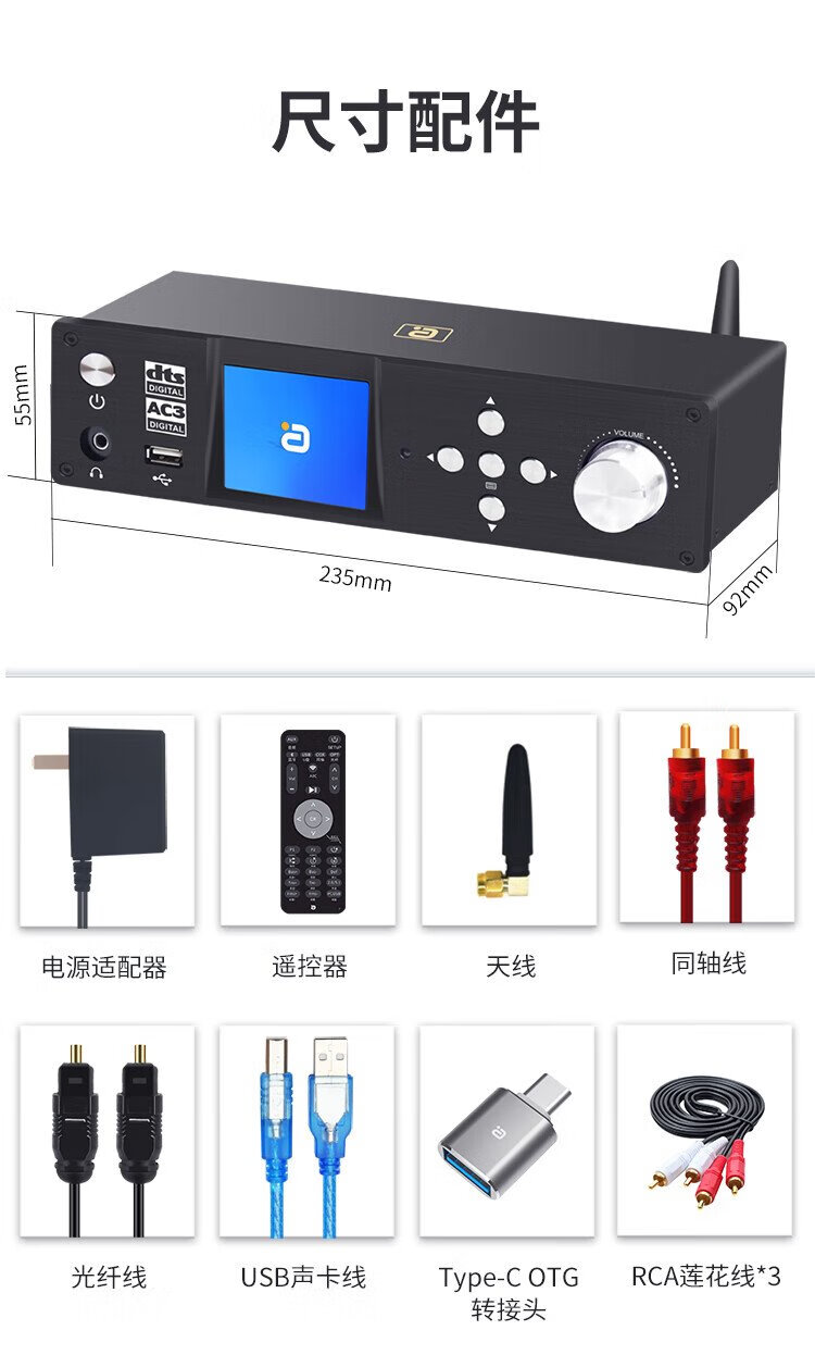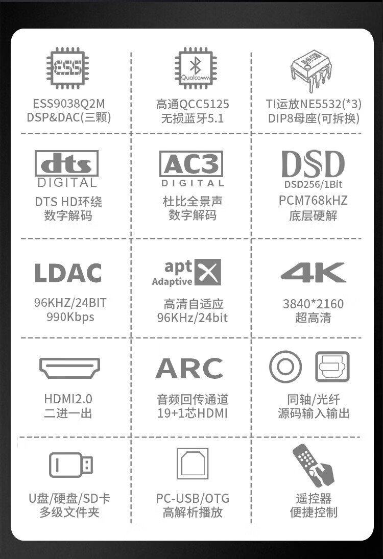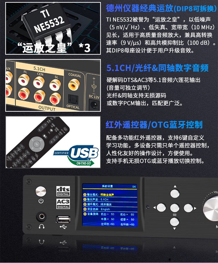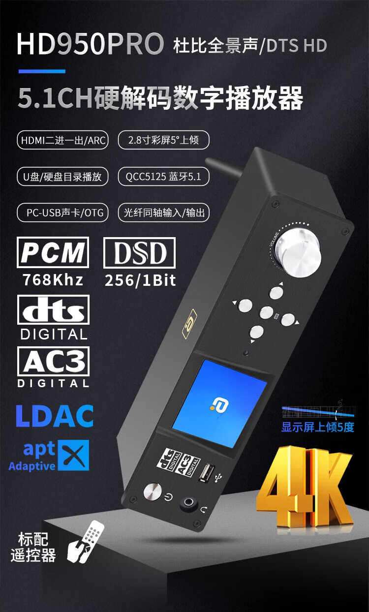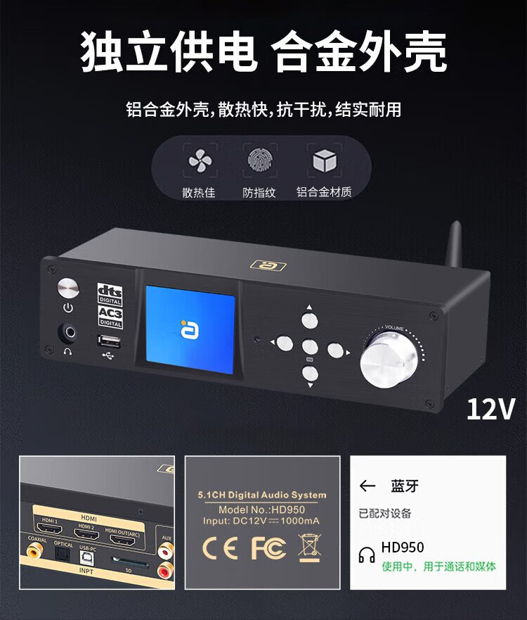 Ayin hifi fever 5.1 audio decoder digital player Bluetooth receiving desktop amp DTS Dolby Atmos DAC external sound card audio amplifier gray HD950PRO official standard