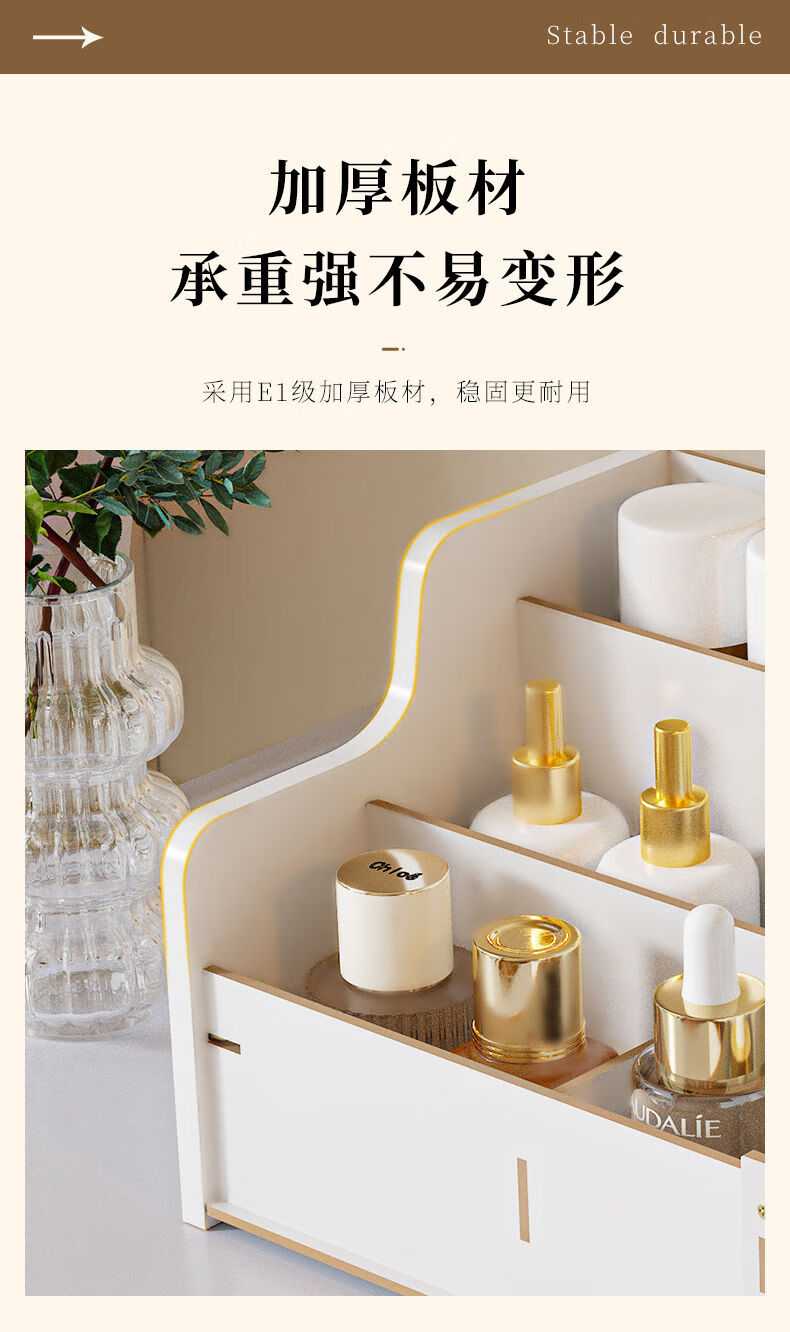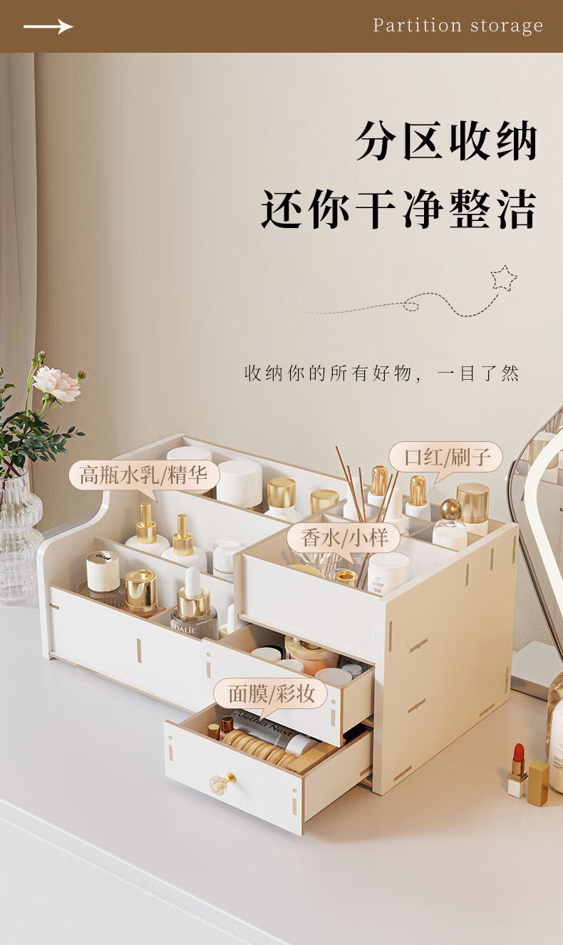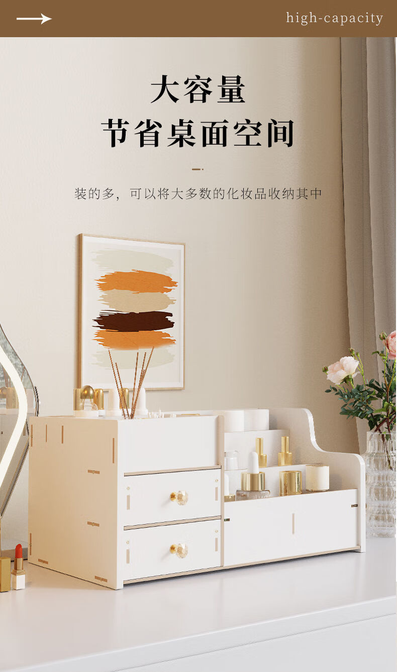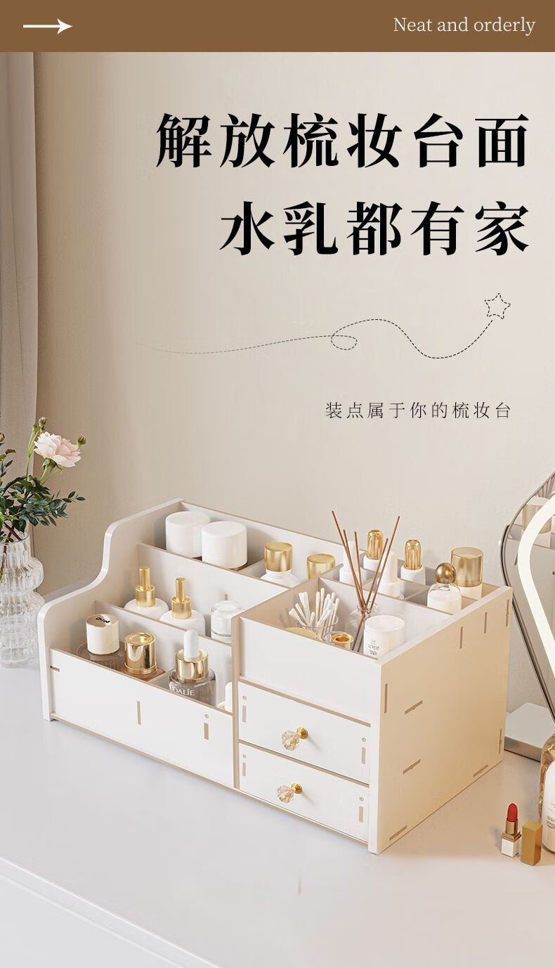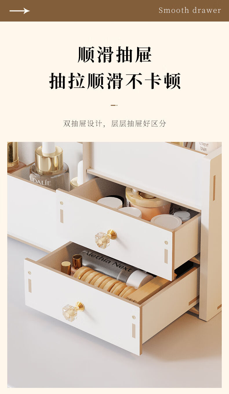 Positive Youth Desktop Cosmetic Storage Box Shelf Drawer-type Lipstick Large Capacity Organizing Skin Care Products Desktop Dressing Table Walnut Color 2 Drawers Multi-Gate Multi-layer Large Capacity - With Drawer