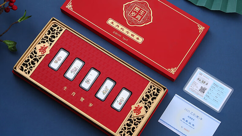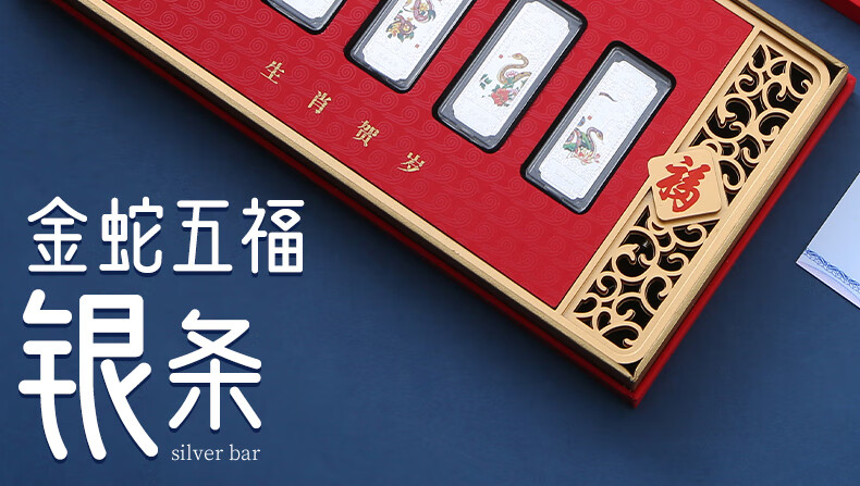Maolin Silver Building 2025 Year of the Snake silver bars pure silver 999 set ornaments pure silver zodiac pure silver silver bar tail tooth gift Year of the Snake silver bars 5g*5 pieces