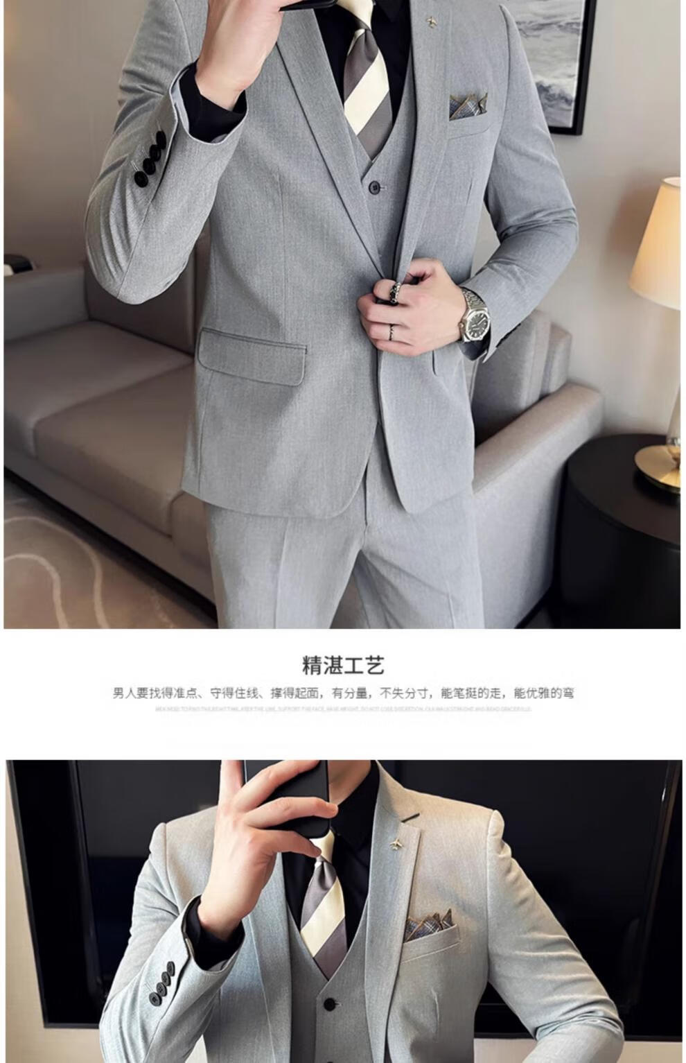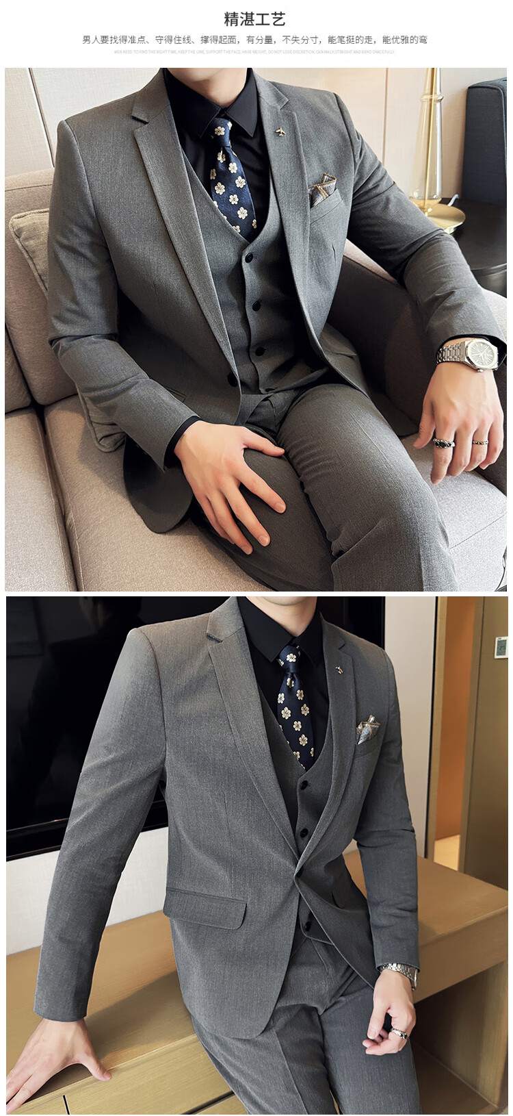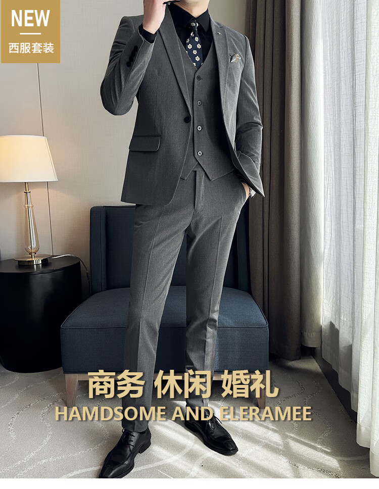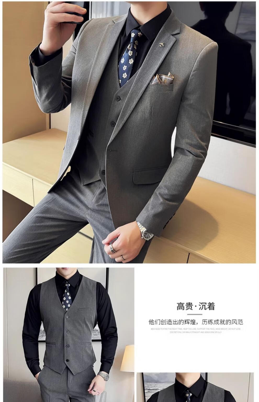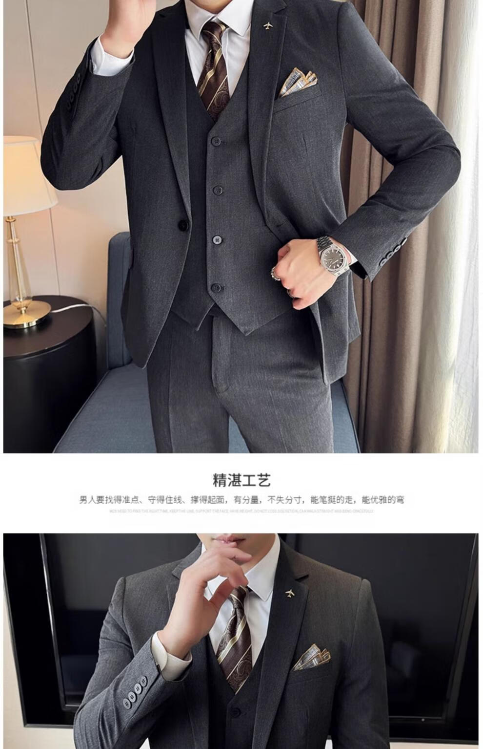 ROMON Custom Suit Men's Business Formal Wedding Dress Casual Slim 2024 Autumn New Suit Jacket Dark Gray Single Suit XL (Suitable for 125-140 Jin Jin equals 0.5 kg)