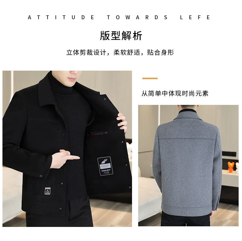 Playboy (PLAYBOY) Double-sided Woolen Coat Men's Autumn and Winter Short Lapel Top Casual Wool Woolen Jacket Coat Men 20936/ 2308 Khaki XL Recommended 126-140Jin Jin equals 0.5 kg