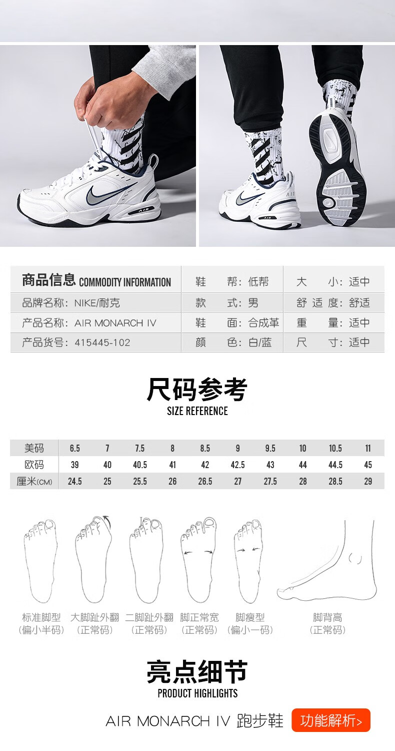 耐克(NIKE)跑步鞋男鞋女鞋2025秋冬季新款AirMonarch M2K老爹鞋运动鞋休闲鞋 415445-102经典银白 42.5