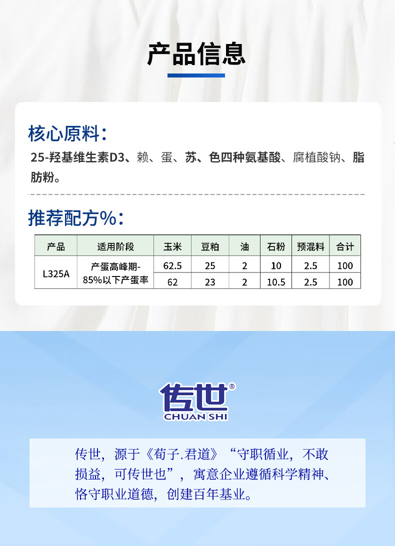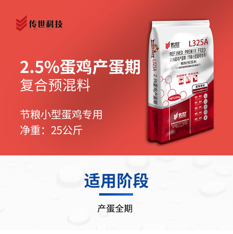 Chuanshi L325A 2.5% grain-saving premix for small laying hens during laying period, poultry feed, laying hen period, net weight 25kg 25kg