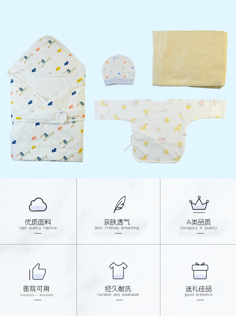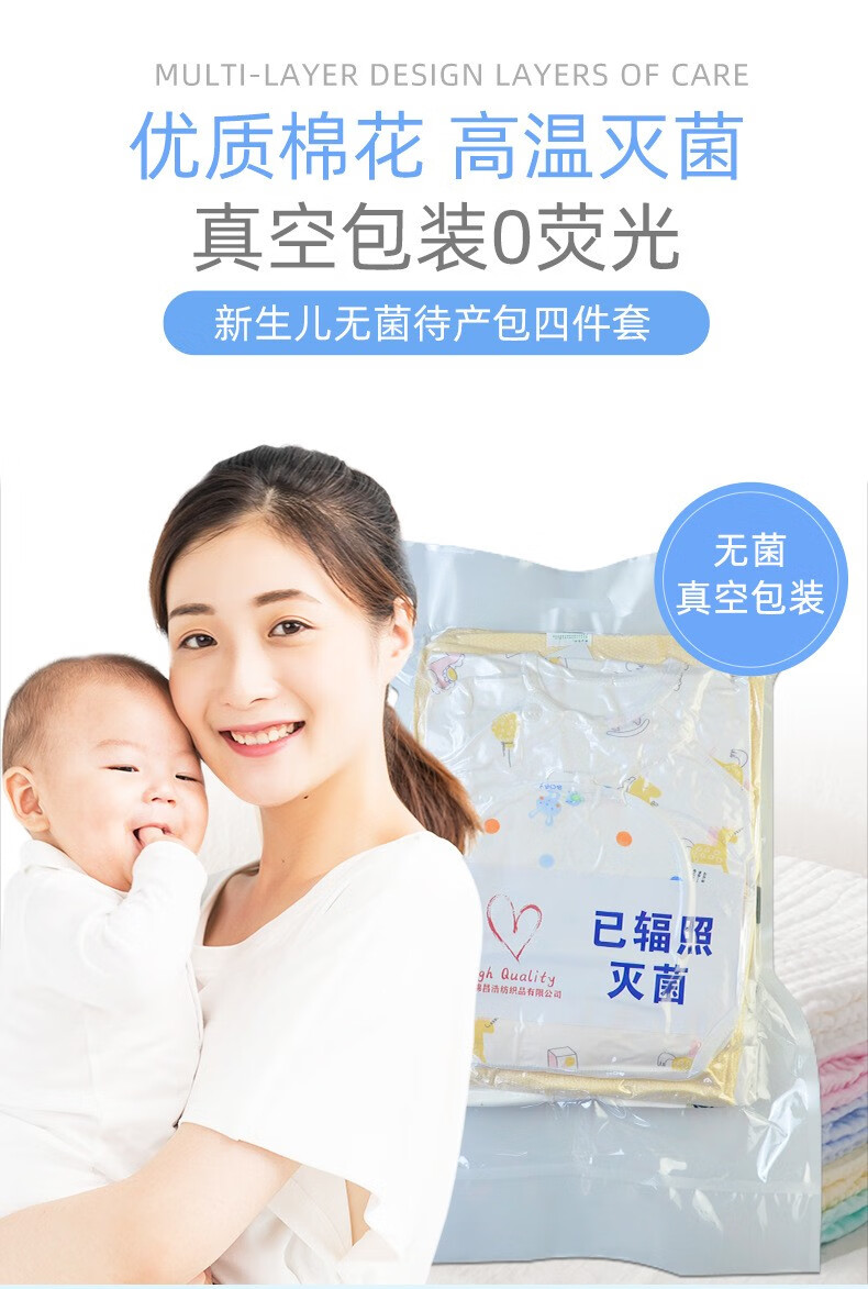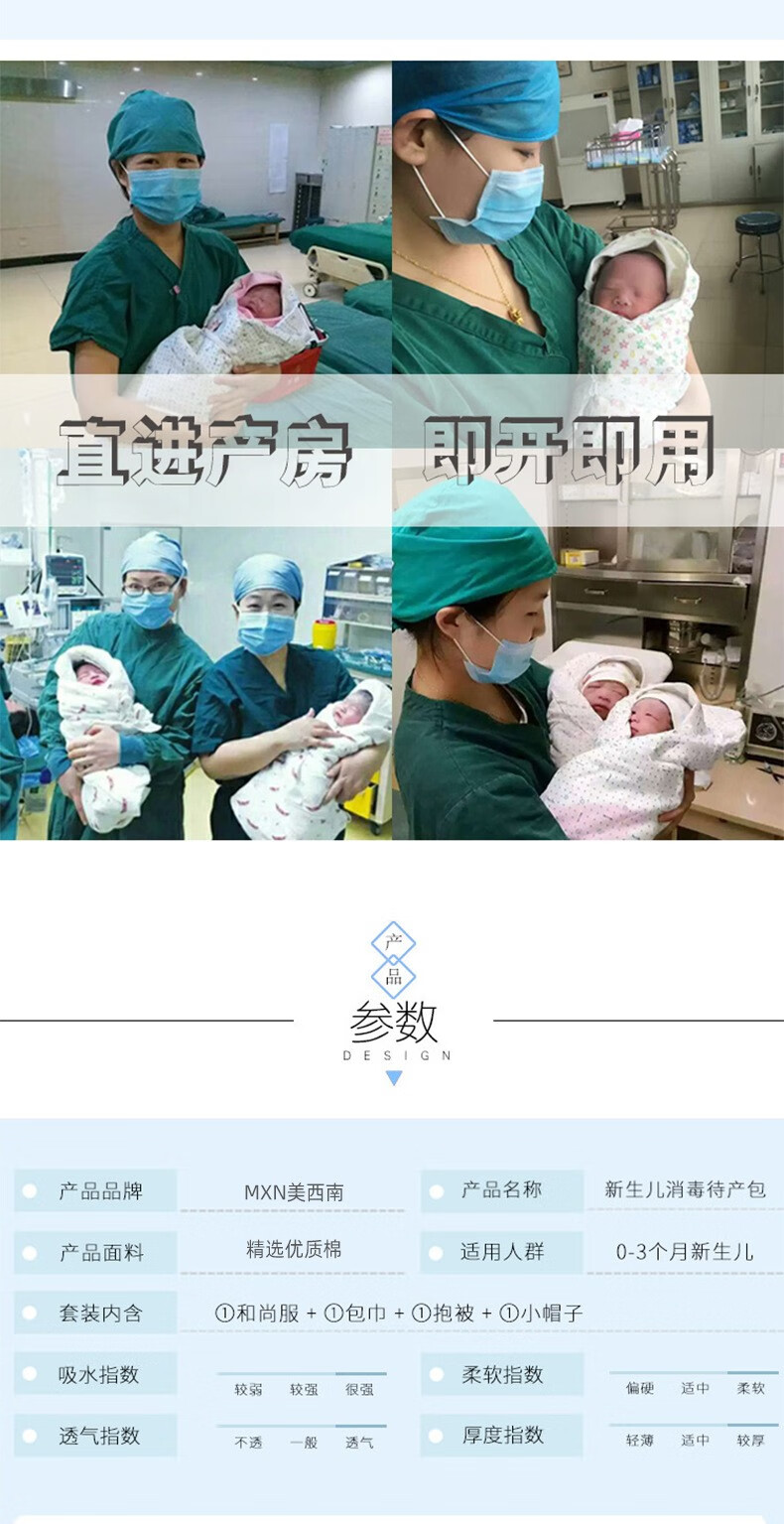 MXN newborn sterile delivery bag, newborn baby sterile clothing obstetrical admission bag, baby baby quilt four-piece set, random colors