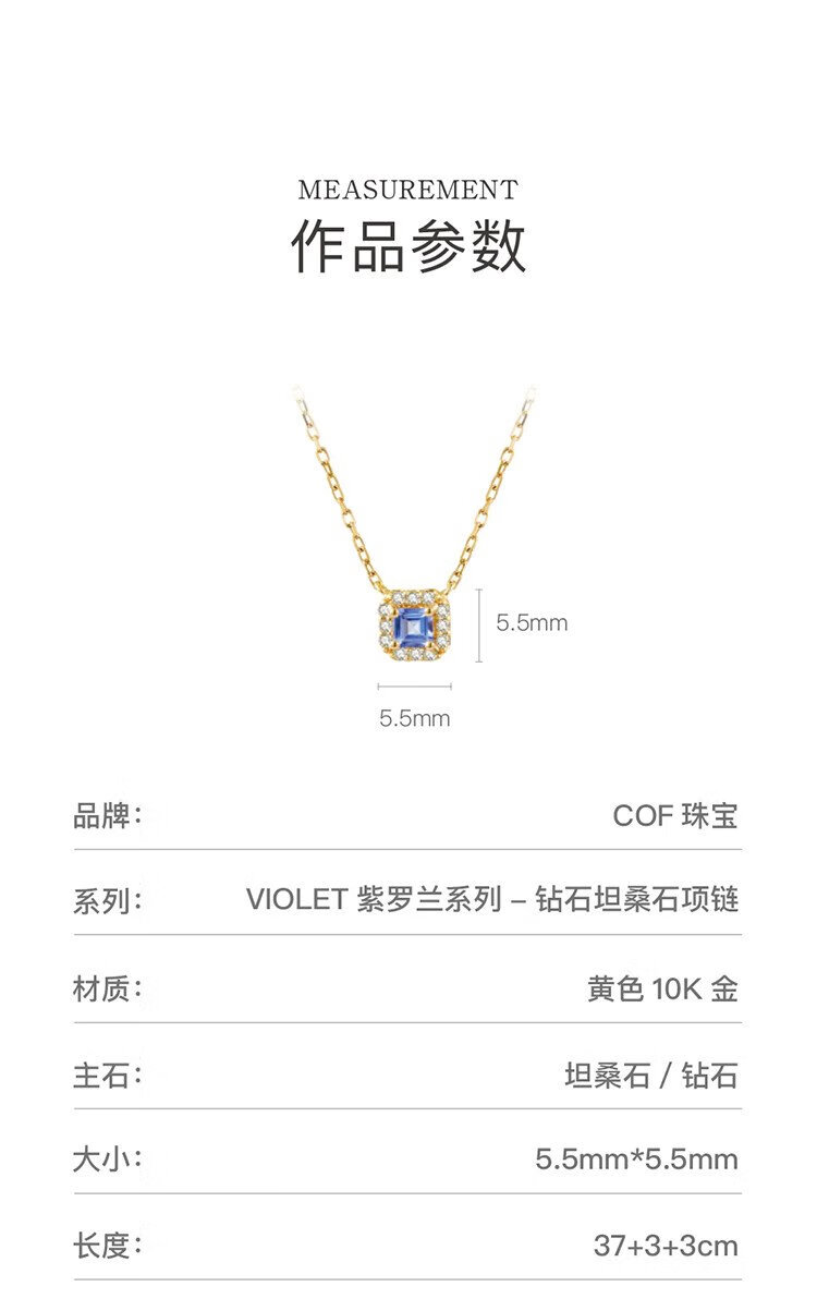 COF Jewelry Tanzanite Necklace K Gold Diamond Pendant Heart of the Ocean Blue Gem Valentine's Day Gift for Girlfriend