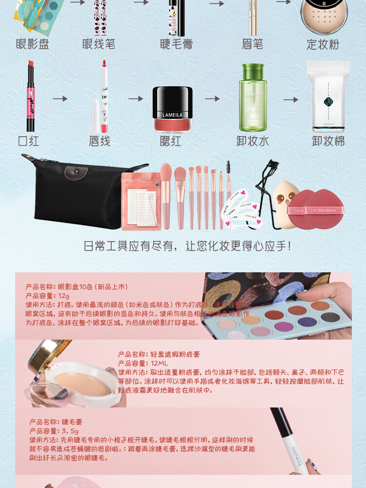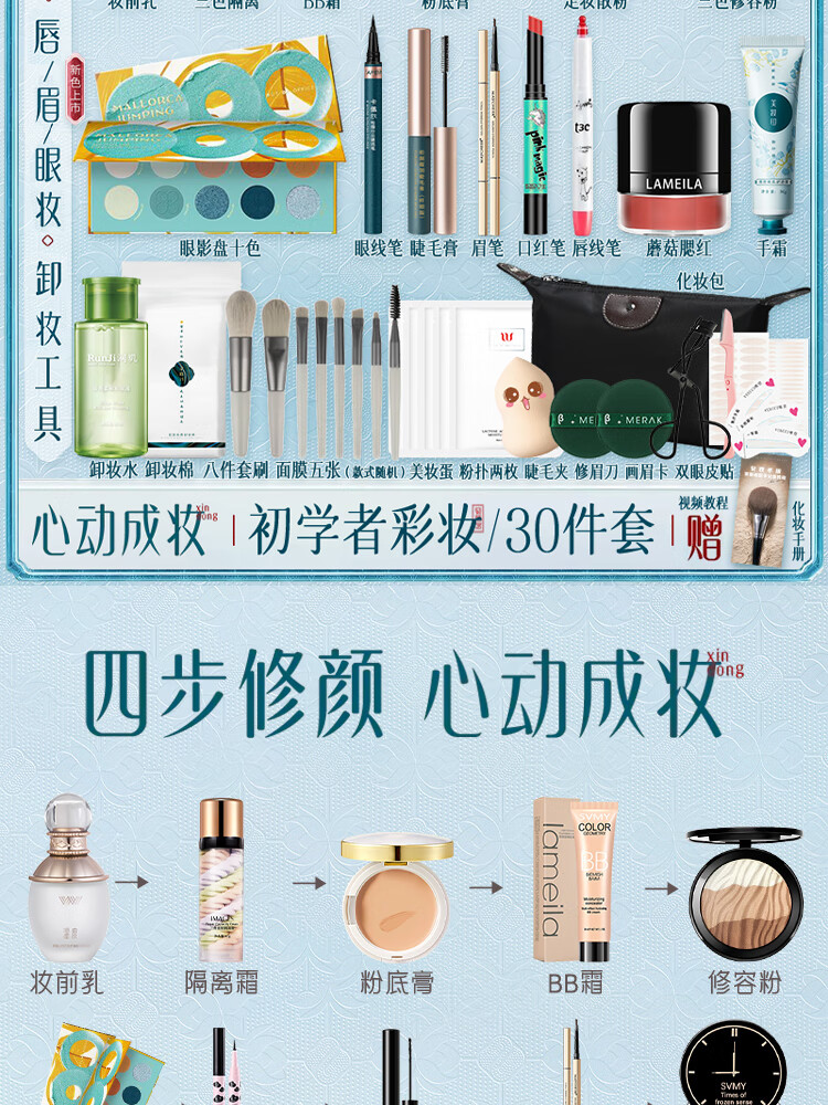 Lamela complete set of cosmetics set for beginners, genuine complete set of combination makeup set, light makeup for beginners, natural makeup students, beauty selection, 30-piece makeup set