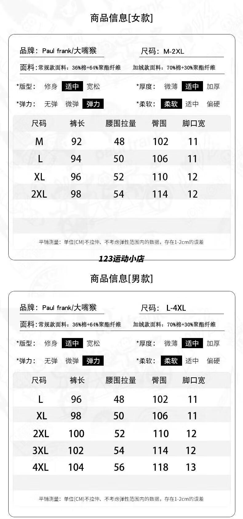 Big Mouth Monkey Autumn and Winter sweatpants for men and women, loose leggings, trendy velvet comfortable sweatpants, black, no velvet, women's L 100-120Jin Jin is equal to 0.5 kg