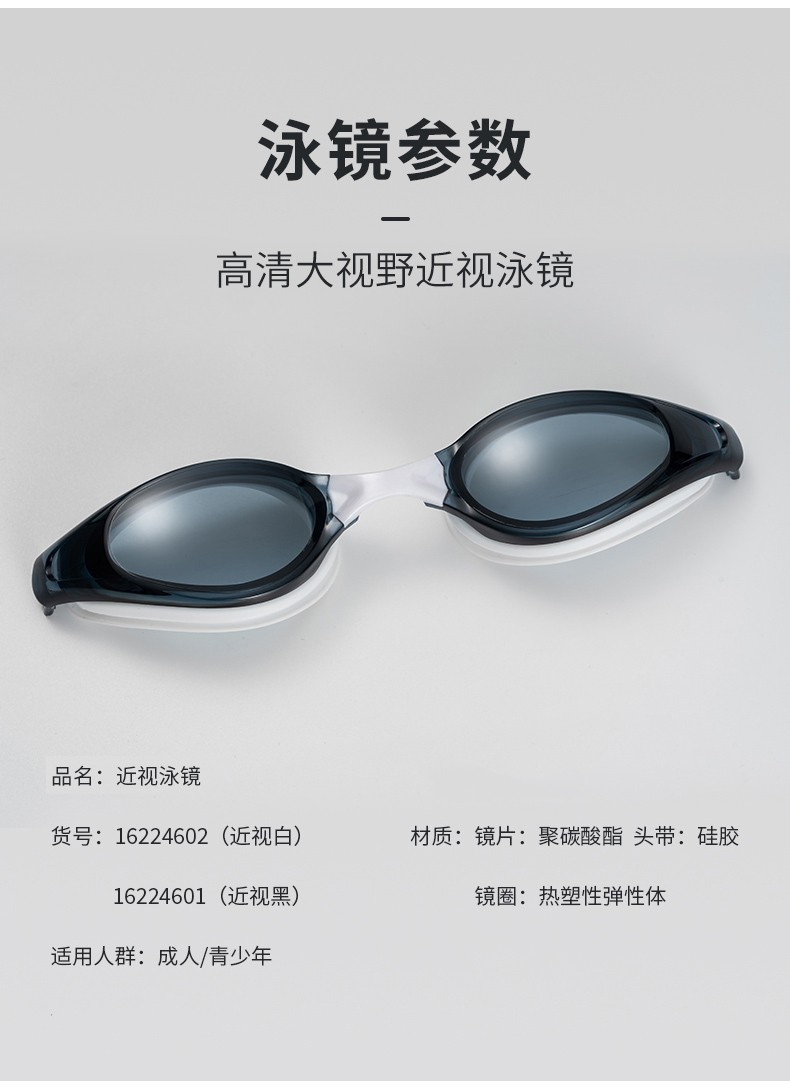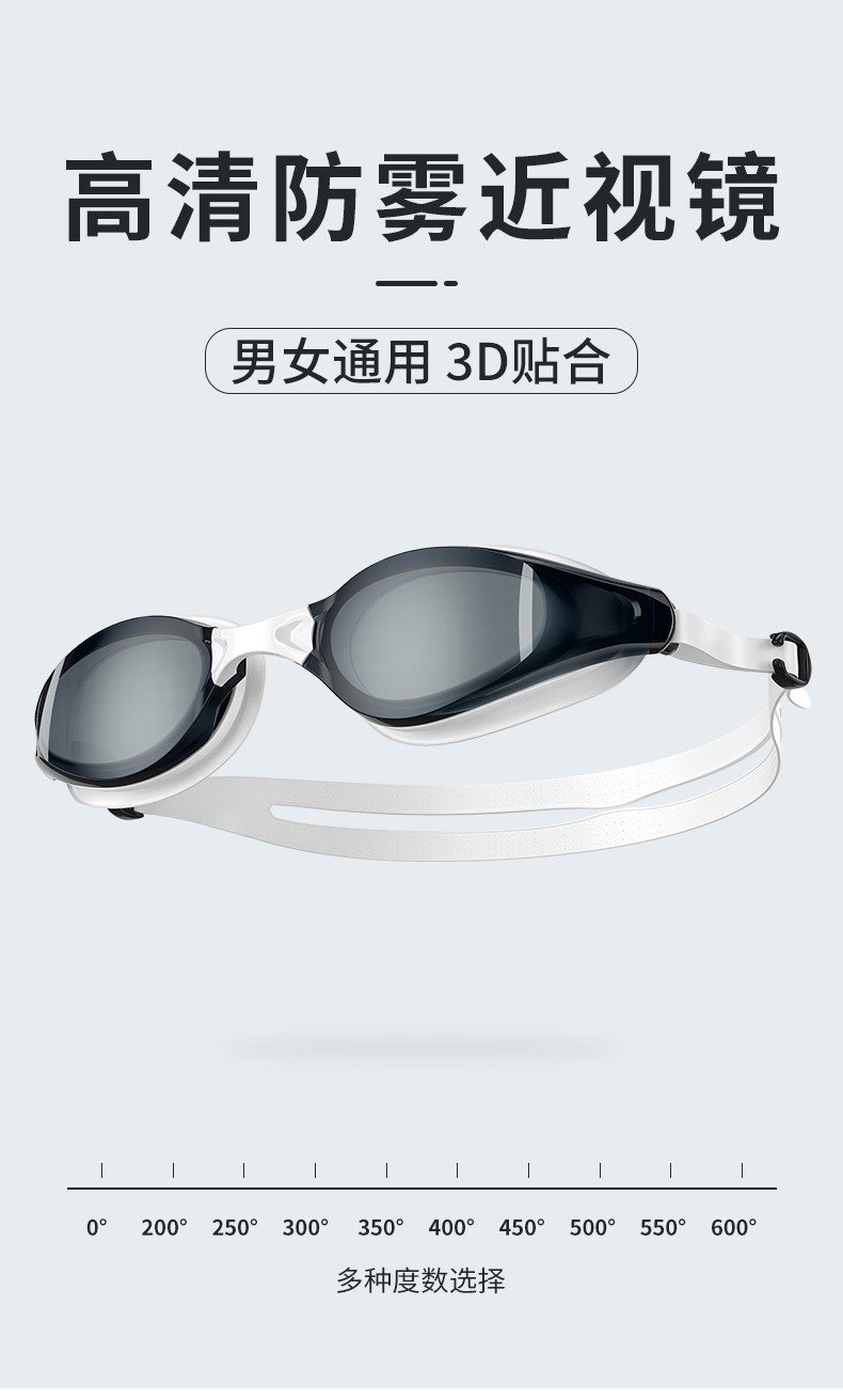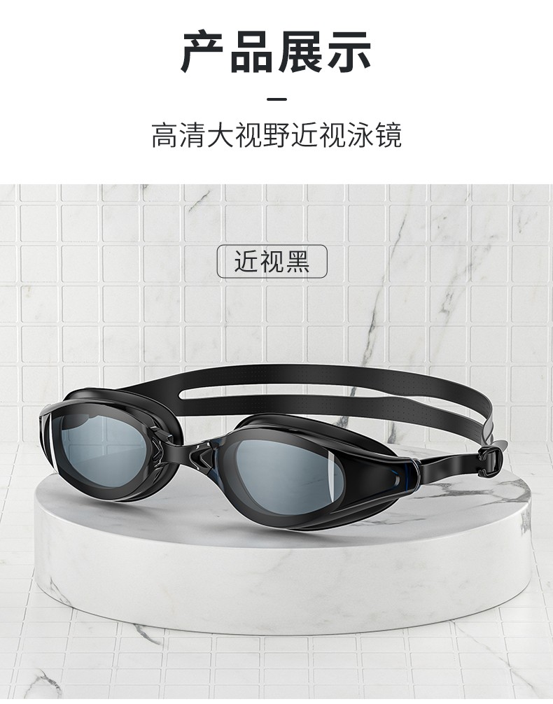 Grimar Jonsson swimming goggles myopia swimming goggles waterproof anti-fog high-definition large frame with degree black myopia style professional male black flat light
